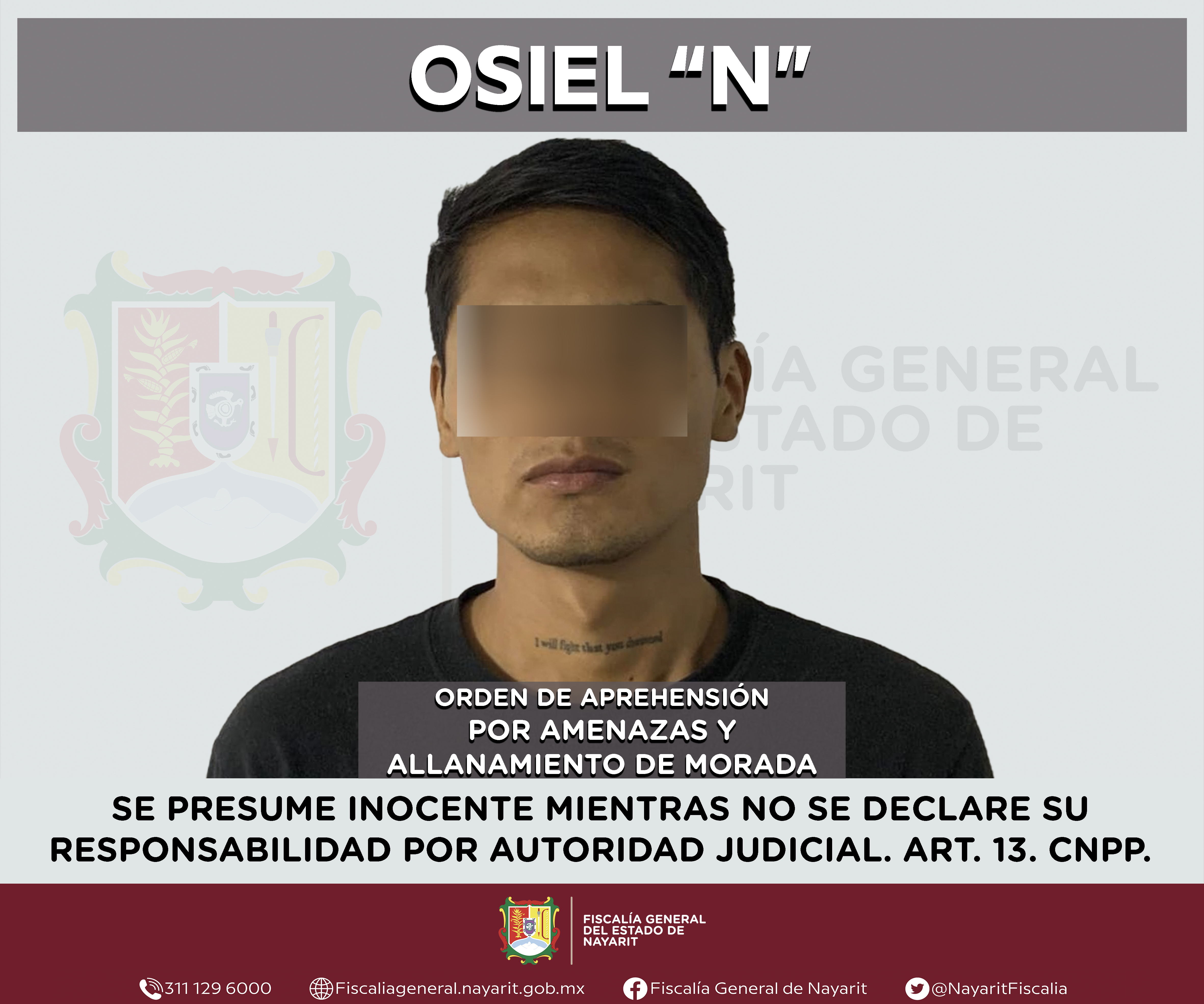La Fiscalía General de Nayarit a través de la Agencia de Investigación Criminal ejecutó una orden de aprehensión en la capital nayarita contra Osiel “N”, por su presunta participación en hechos que según apreciación de la ley encuadran los de...