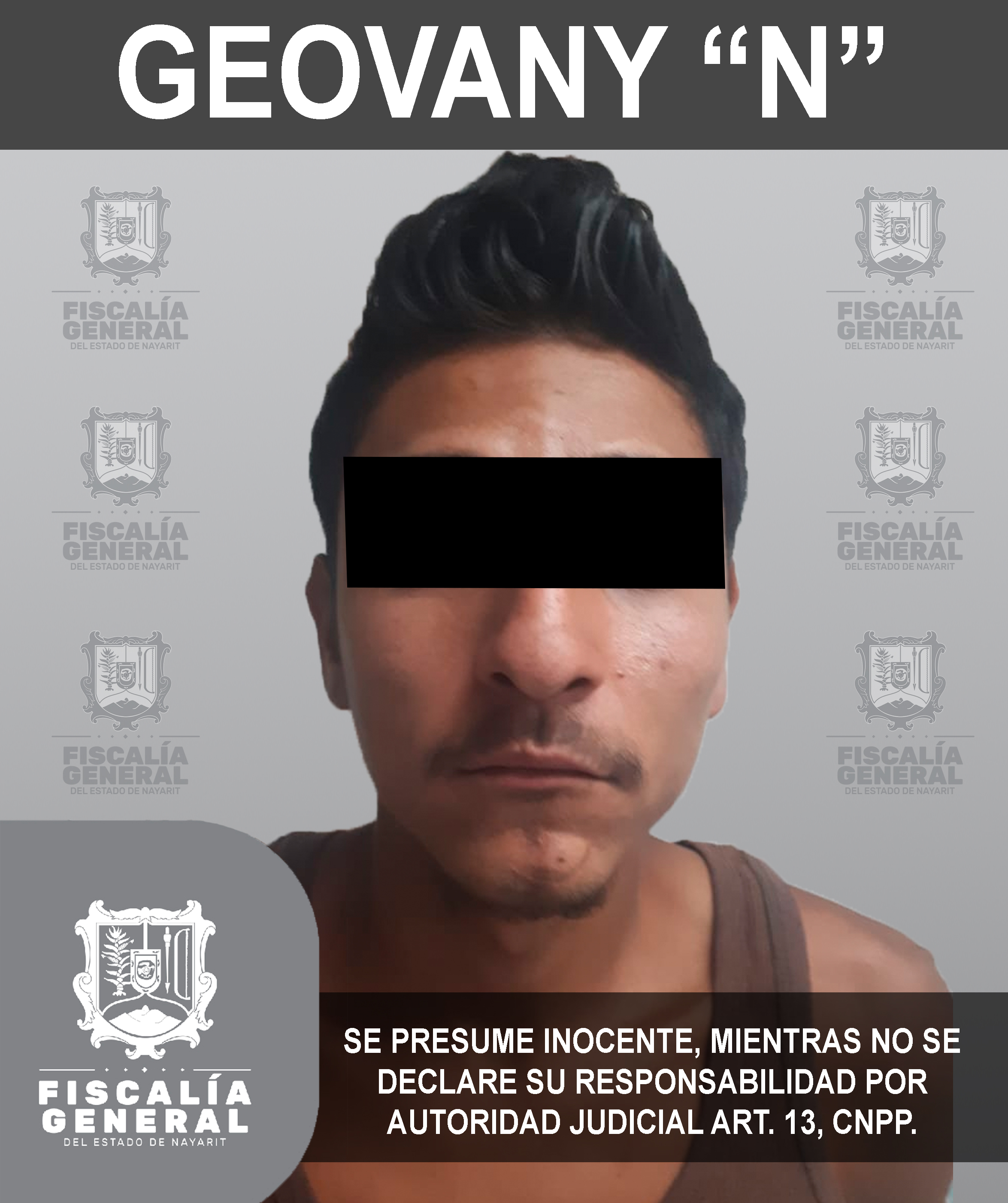 Por existir una orden de aprehensión girada en su contra por su probable participación en el delito de lesiones intencionales en agravio de una persona de sexo femenino, fue detenido en la ciudad de Tepic Geovany “N”, quien fue puesto a disposició...