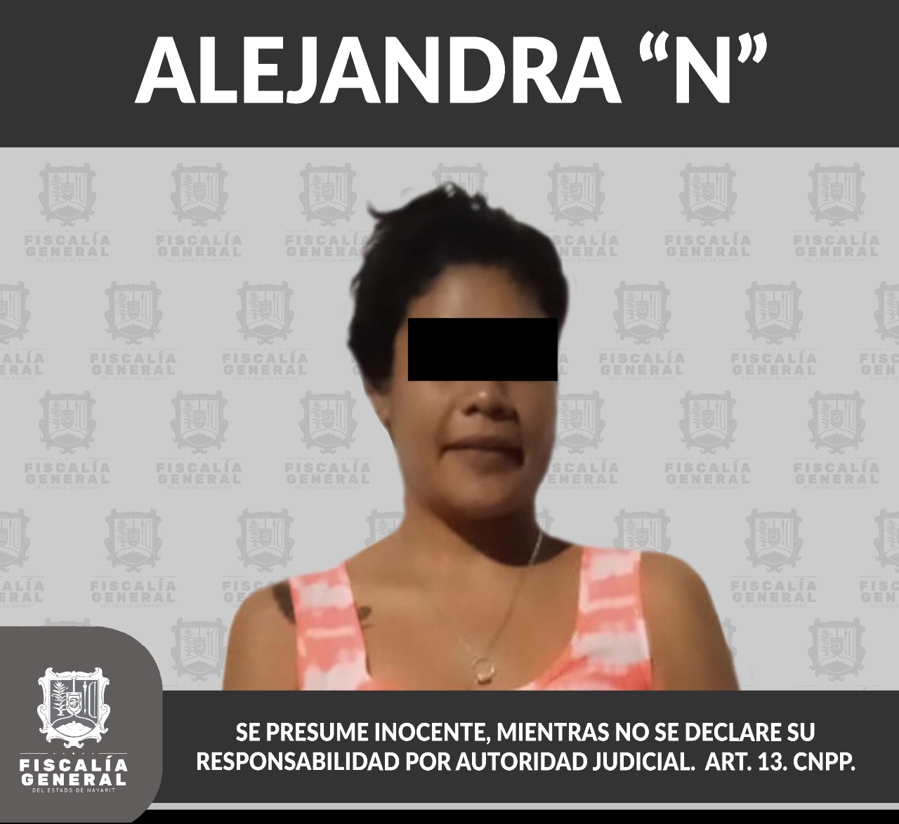 En poblado de San Vicente del municipio de Bahía de Banderas, personal de la Agencia de Investigación Criminal cumplimentó una orden de aprehensión, la cual se libró contra Alejandra “N”, por su presuntiva responsabilidad penal en hechos que la ...
