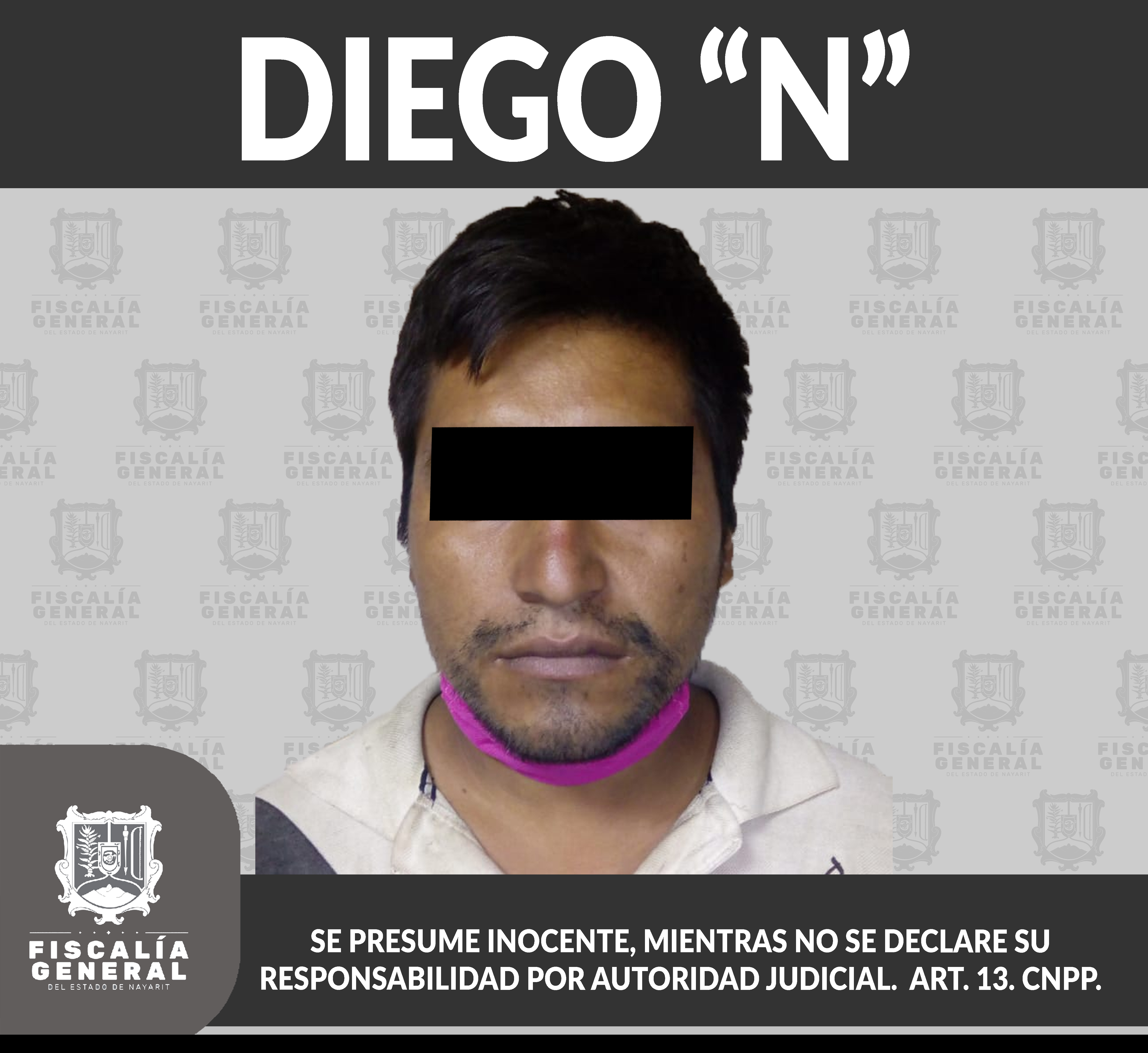 En la ciudad de Tepic fue detenido Diego “N”, tras liberarse la respectiva orden de aprehensión en su contra, porque presumiblemente es responsable de hechos que la ley estima como delito de violencia familiar, ilícito cometido en agravio de una pe...
