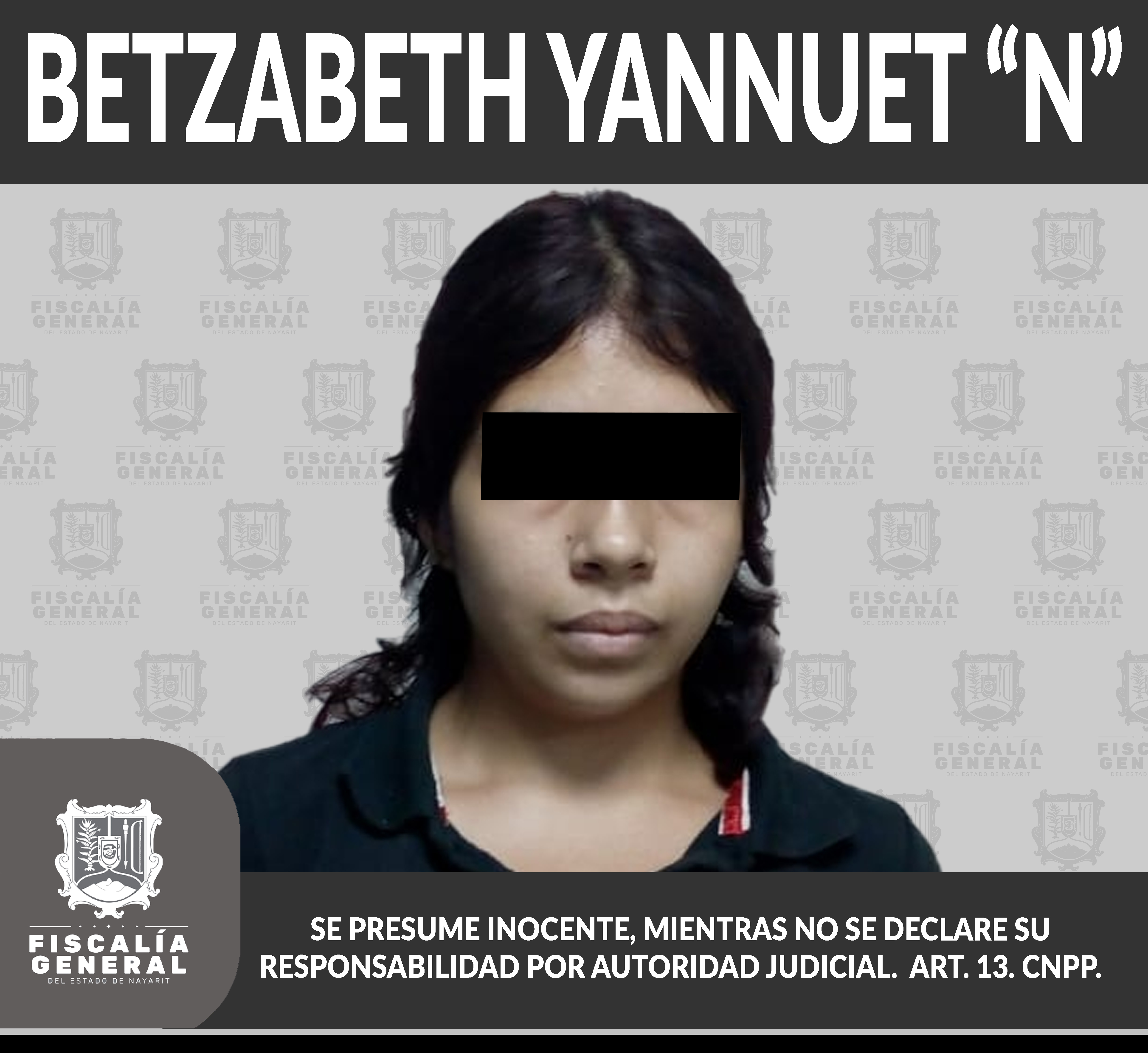 En la ciudad de Tepic fue detenida Betzabeth Yannuet “N”, una vez que se liberó en su contra la correspondiente orden de aprehensión, como presunta autora de hechos que la ley juzga como delito de desaparición cometida por particulares, mismo que ...