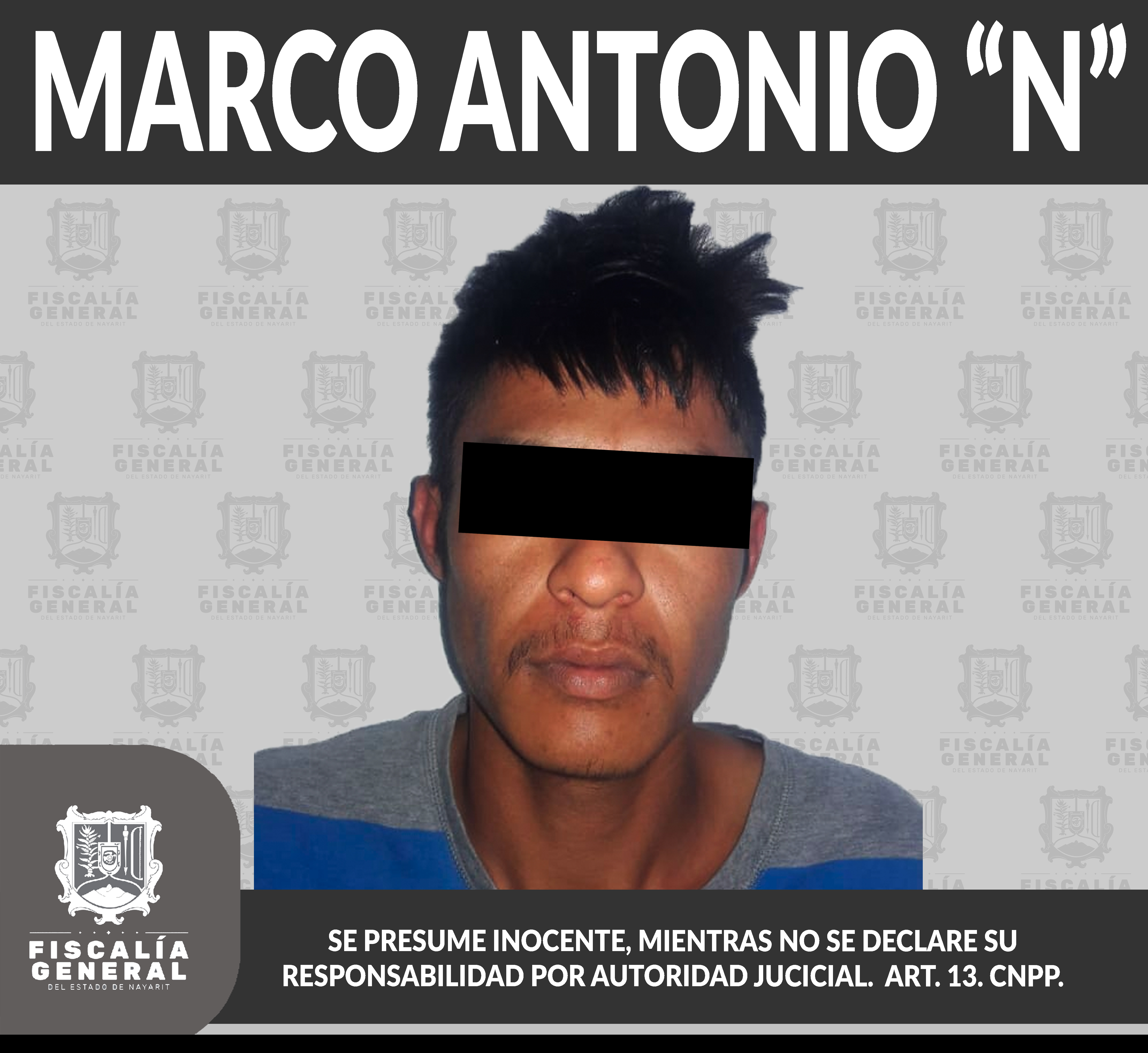 En la ciudad de Tepic fue detenido Marco Antonio “N”, en virtud de haber sido liberada la respectiva orden de aprehensión en su contra, porque presumiblemente es responsable de hechos que la ley señala como delito de robo calificado; ilícito en ag...