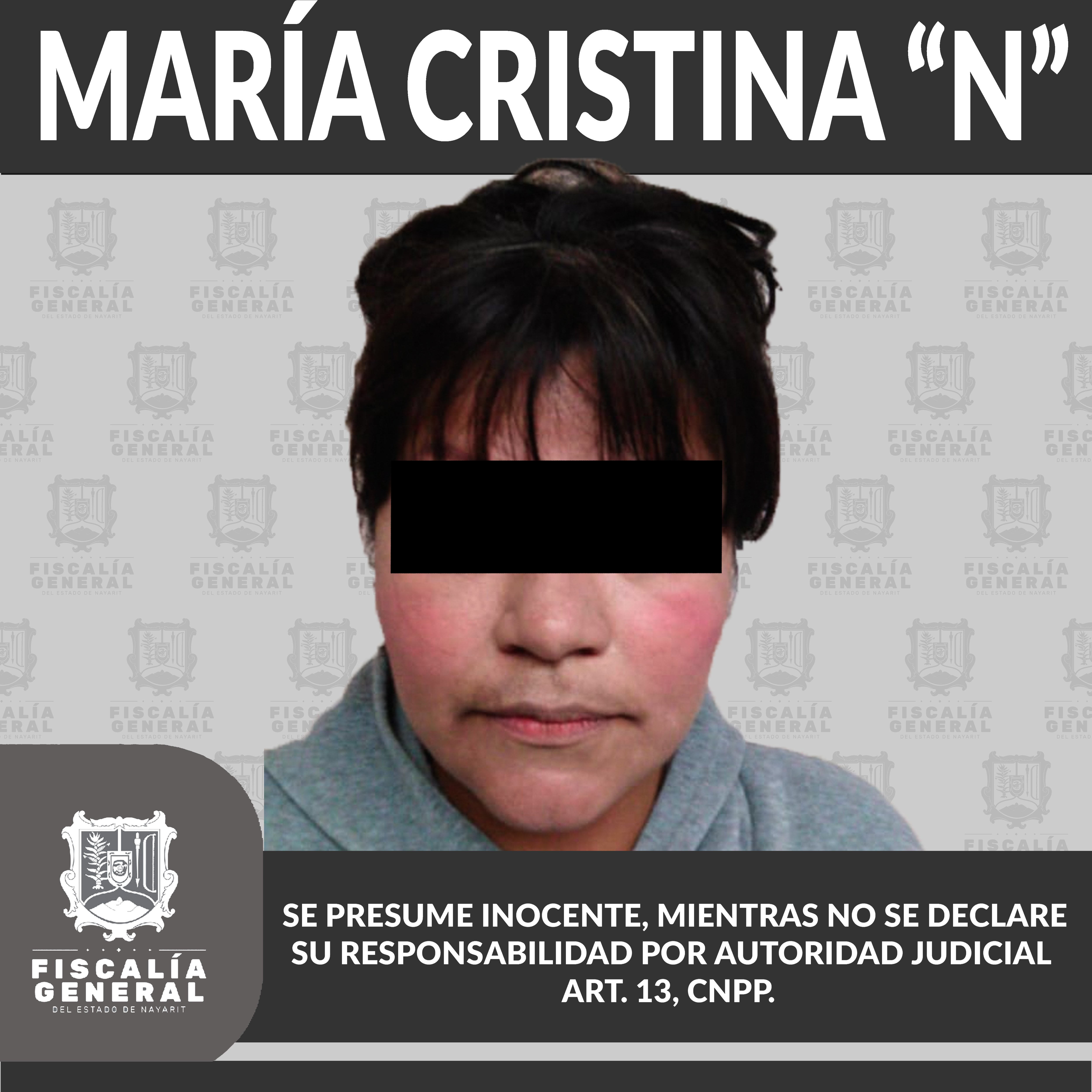 En la ciudad de Tepic fue detenida María Cristina “N”, tras liberarse la correspondiente orden de reaprehensión por su probable participación en el delito de robo calificado en agravio de dos personas, una de sexo masculino y otra de sexo femenino...