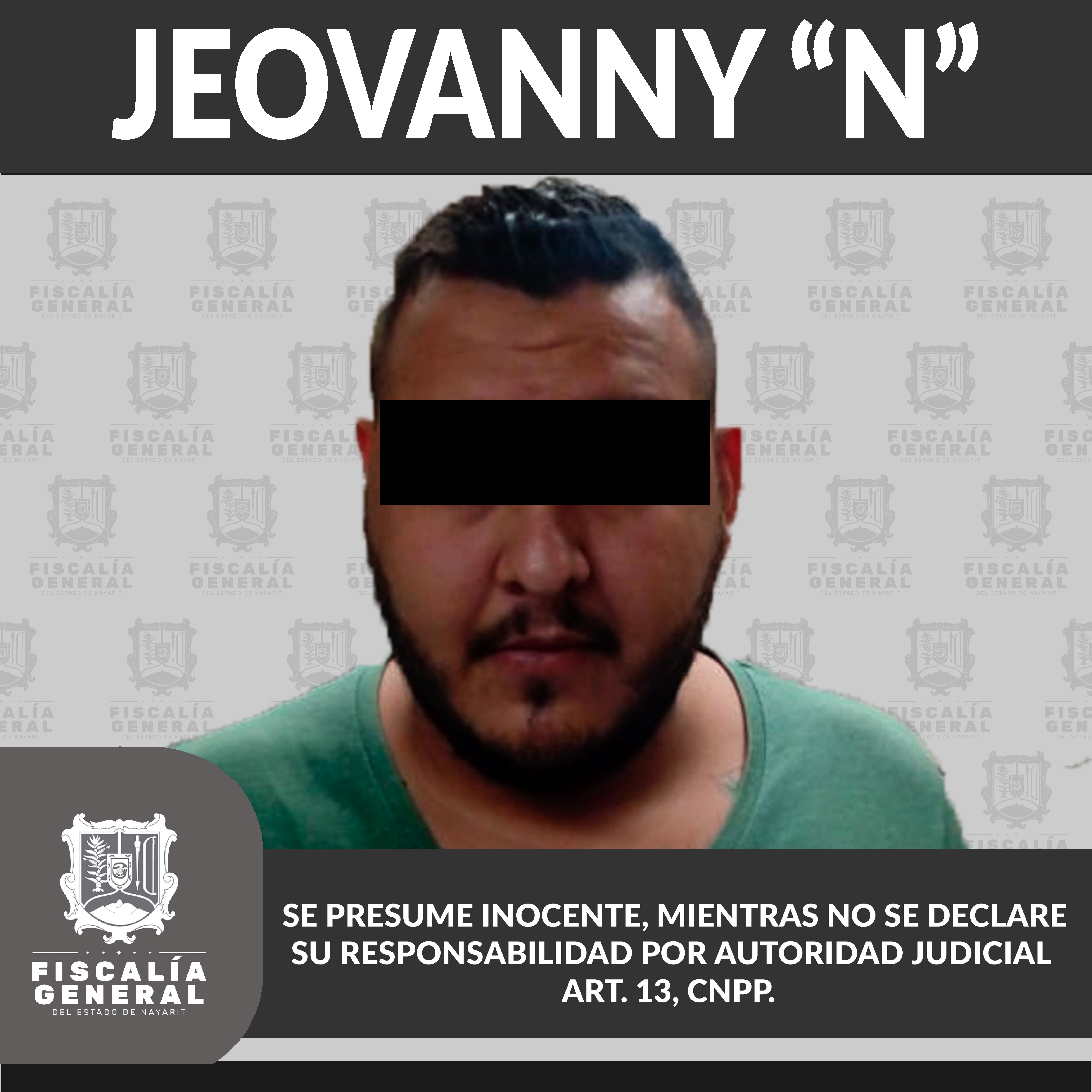En la ciudad de Tepic fue detenido Jeovanny “N”, tras obsequiarse la correspondiente orden de aprehensión en su contra, pues es presunto responsable de los delitos de violencia familiar y lesiones calificadas, el primer delito en agravio de un menor...