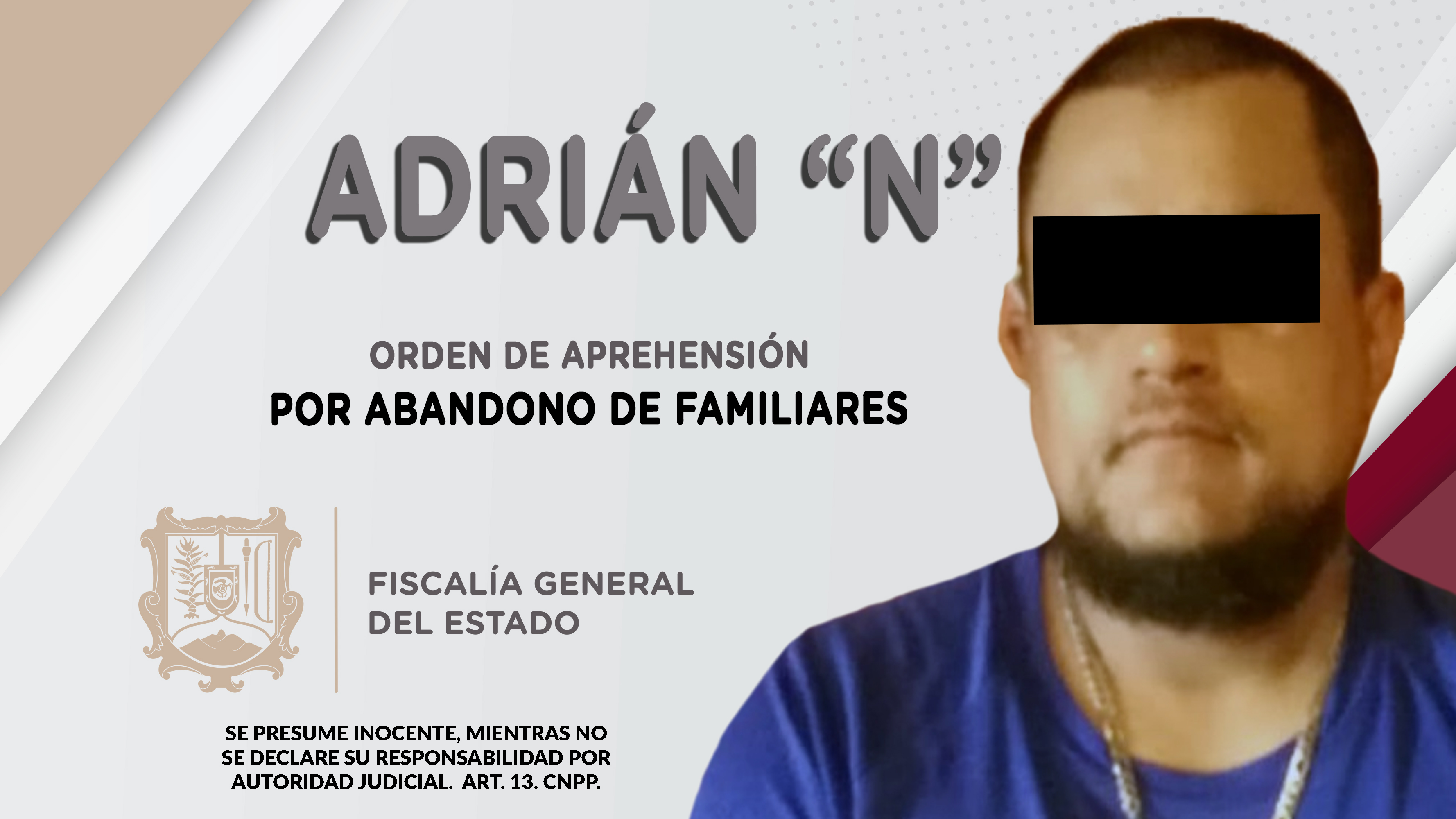 En el municipio de Compostela, personal de la Agencia de Investigación Criminal ejecutó una orden de reaprehensión contra Adrián “N”, por su probable responsabilidad penal en hechos que para la ley constituyen el delito de abandono de familiares,...