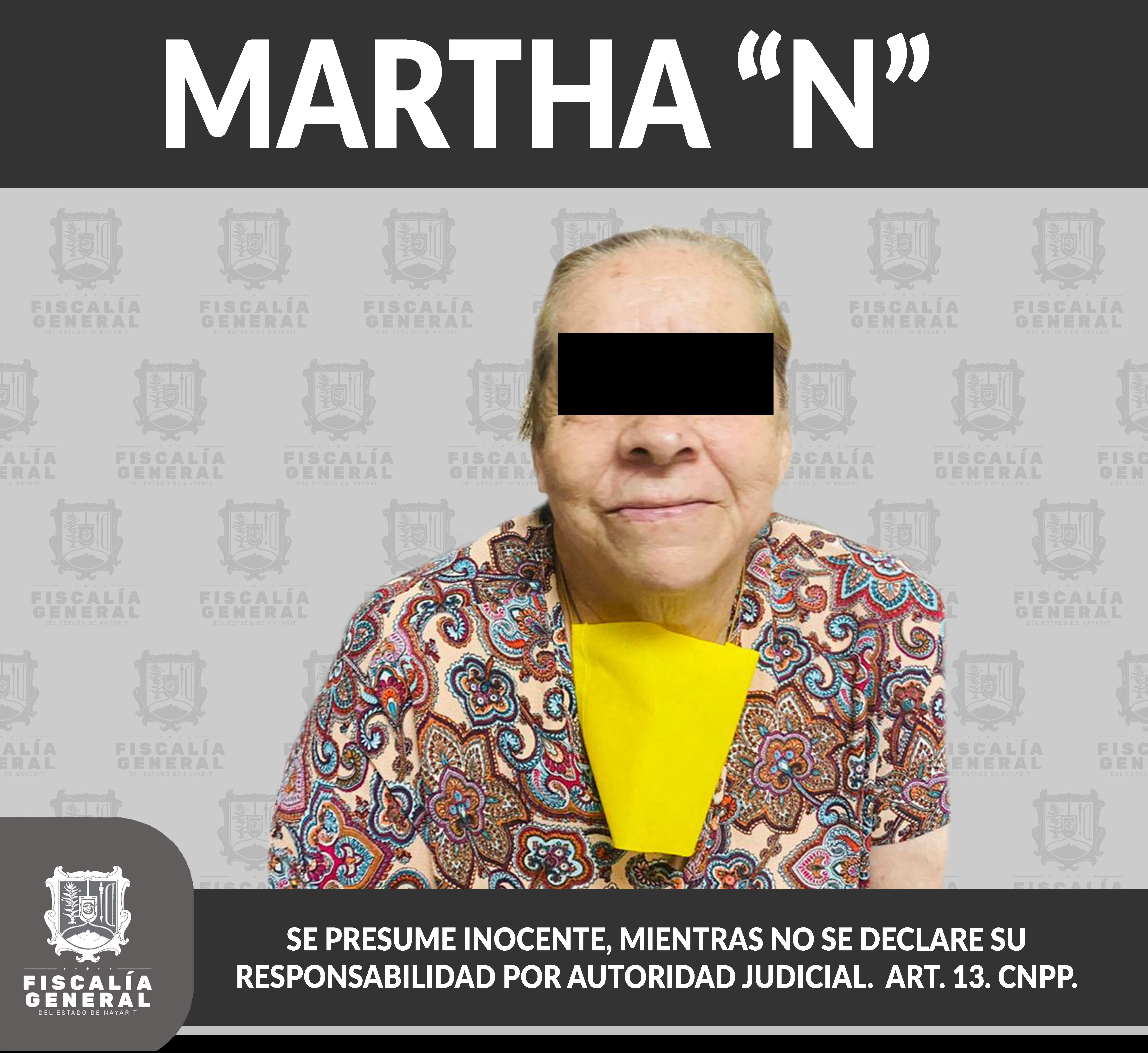 En la ciudad de Tepic fue detenida Martha “N”, en cumplimiento de una orden de aprehensión que la requiere, porque se presume su responsabilidad penal en hechos que para la ley encuadran el delito de fraude específico, cometido en agravio de una pe...