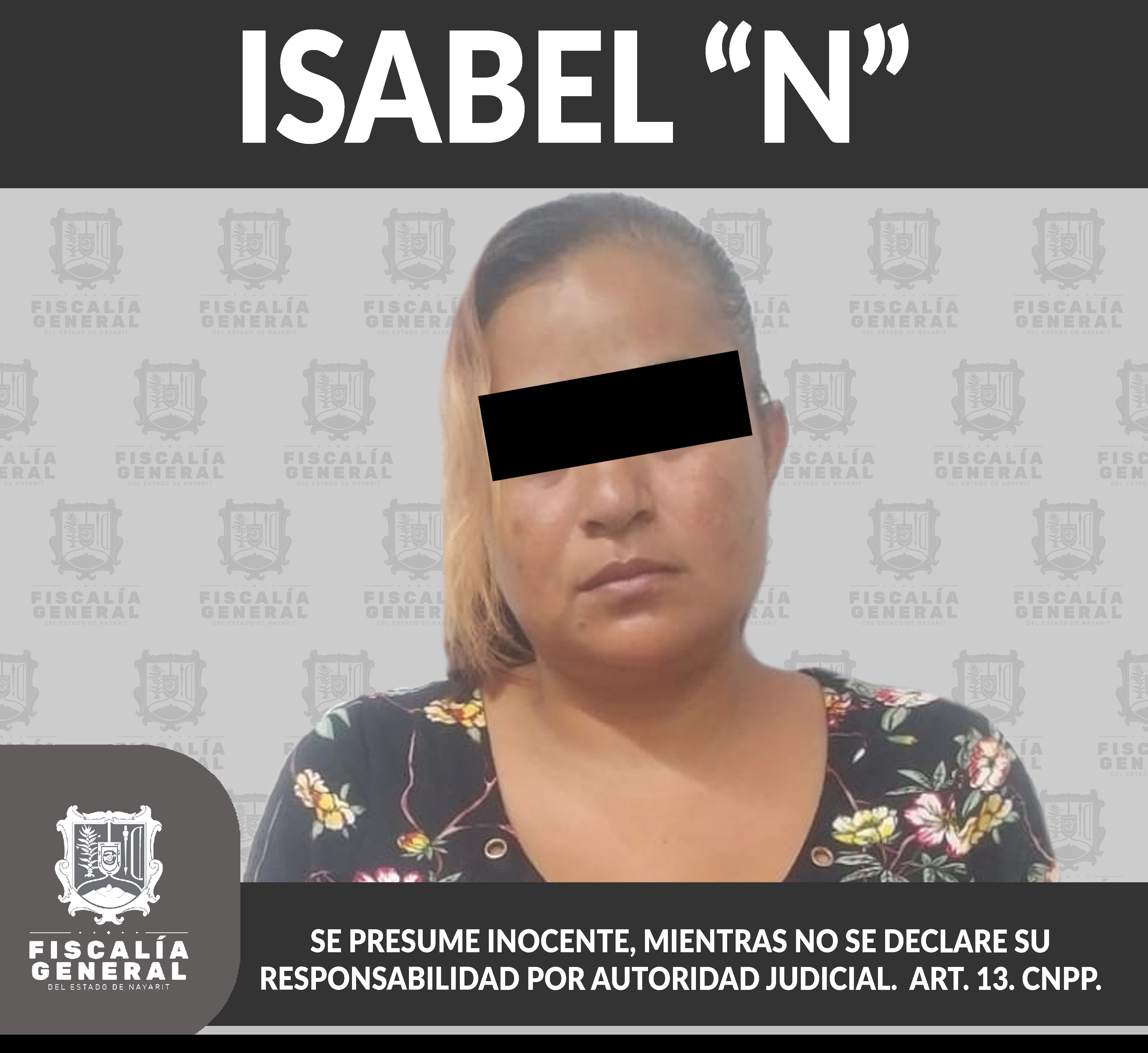 En el municipio de Bahía de Banderas fue detenida Isabel “N”, en virtud de haberse obsequiado la correspondiente orden de aprehensión en su contra, pues presumiblemente es responsable de hechos que según valoración de la ley constituyen el delito...