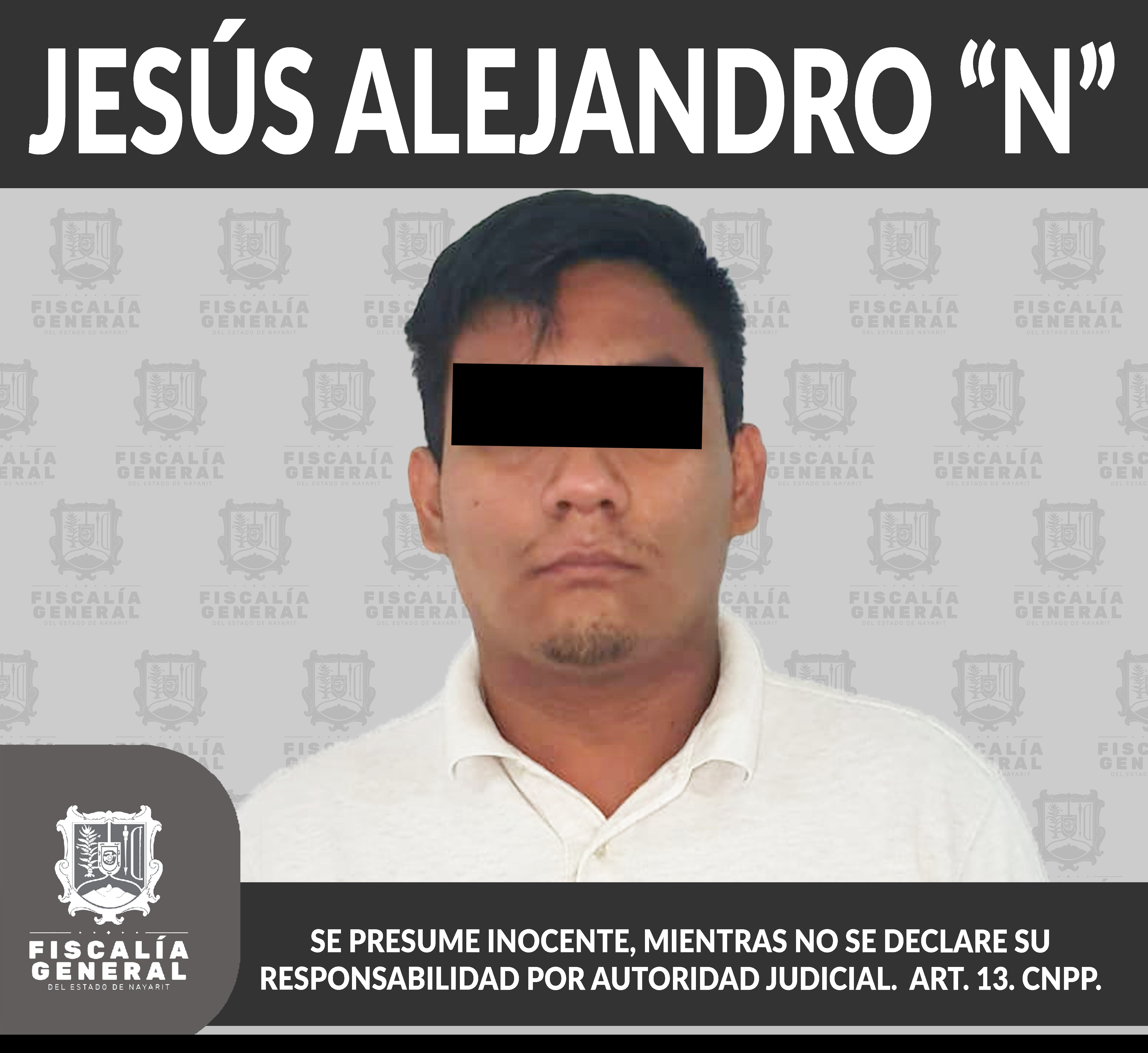 En la ciudad de Tepic fue detenido Jesús Alejandro “N”, en virtud de haberse obsequiado la respectiva orden de aprehensión en su contra, pues se presume su autoría en hechos que para la ley constituyen el delito de violación, ilícito cometido en...