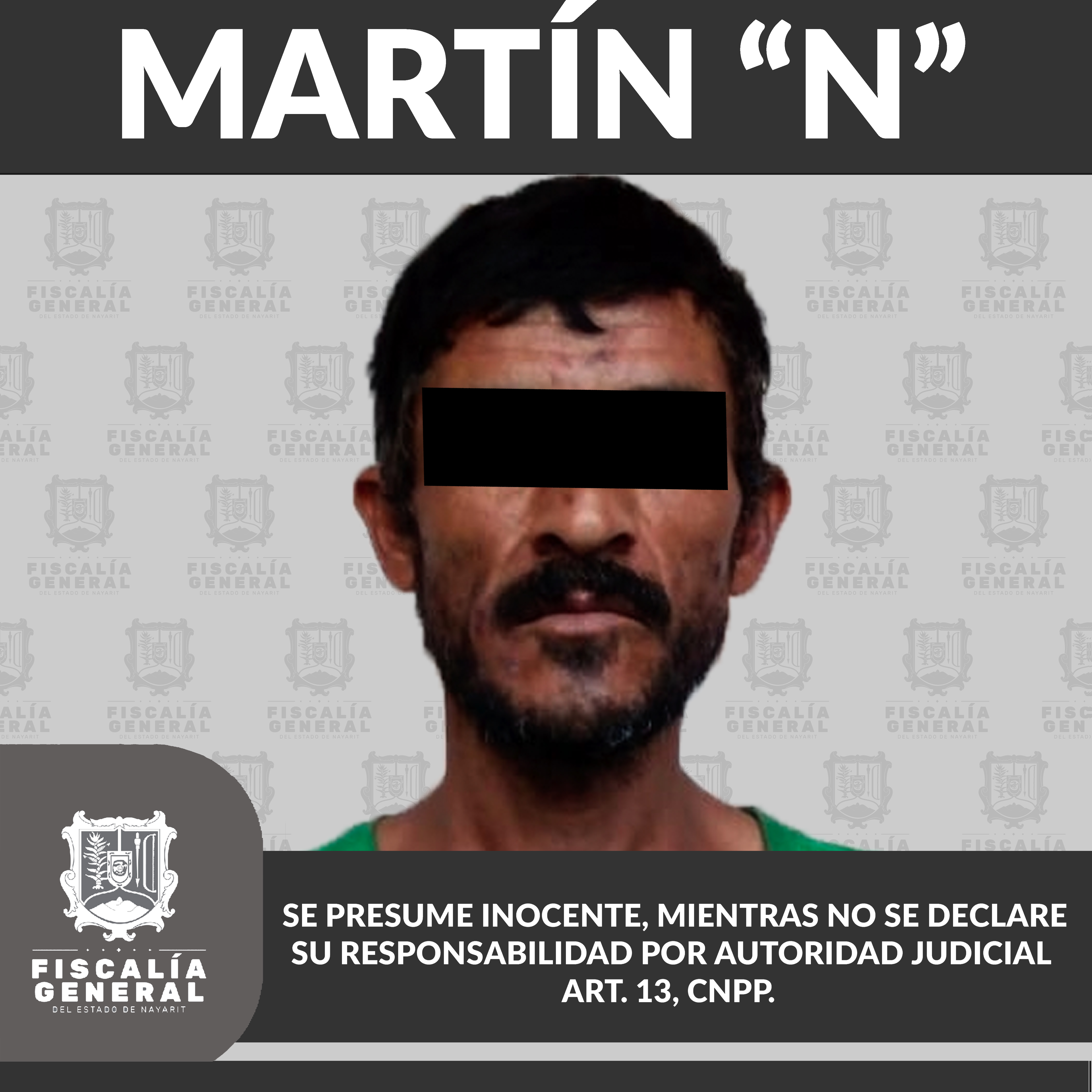 En la ciudad de Tepic fue detenido Martín “N”, tras liberarse la correspondiente orden de aprehensión en su contra, pues se presume su participación en el delito de violencia familiar en agravio de una persona de sexo masculino de identidad reserv...