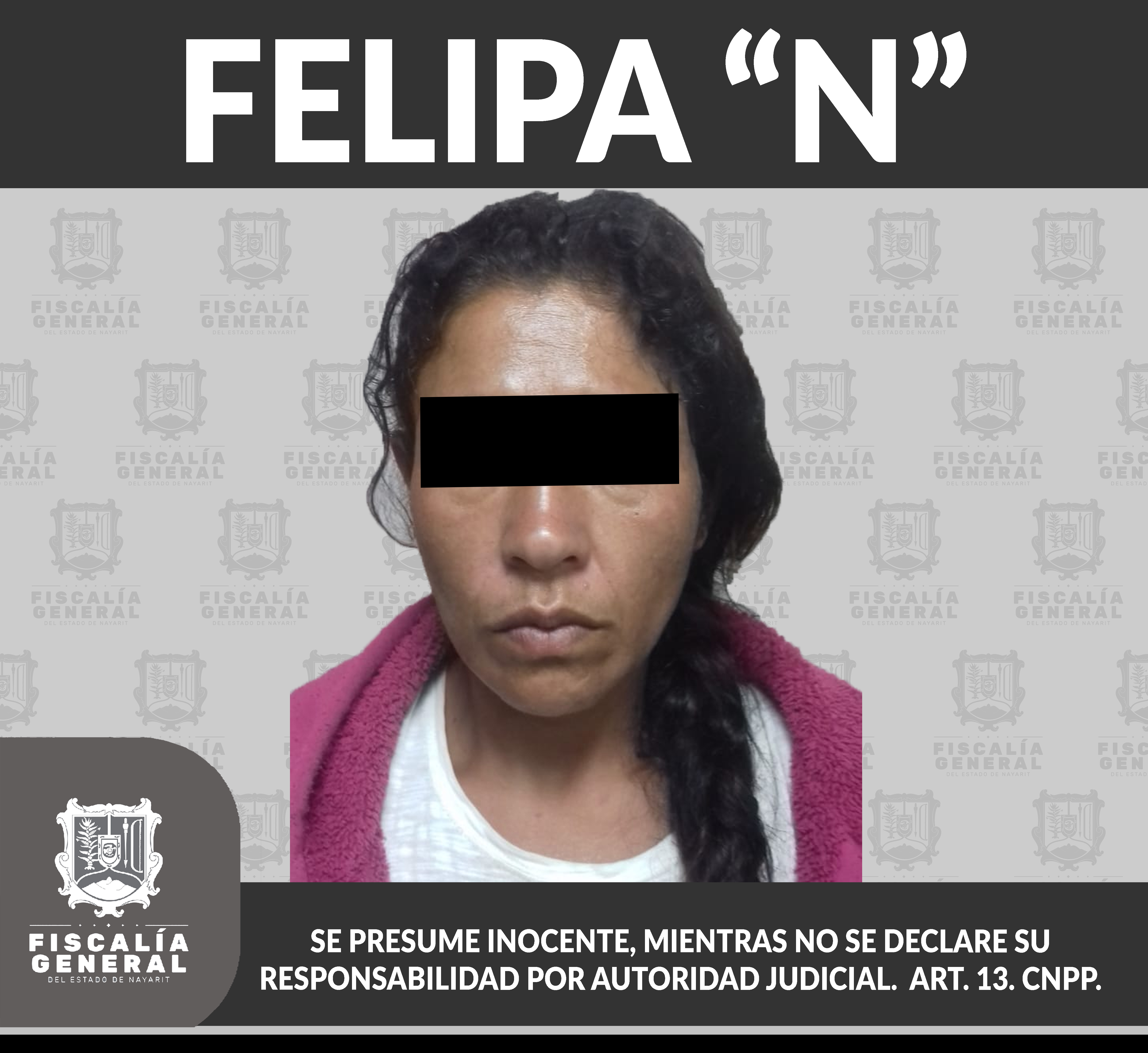 En la ciudad de Tepic fue detenida Felipa “N”, una vez que se obsequiara una orden de aprehensión en su contra, como presunta responsable de hechos que la ley señala como delito de violencia familiar, el cual se cometió en agravio de una persona d...