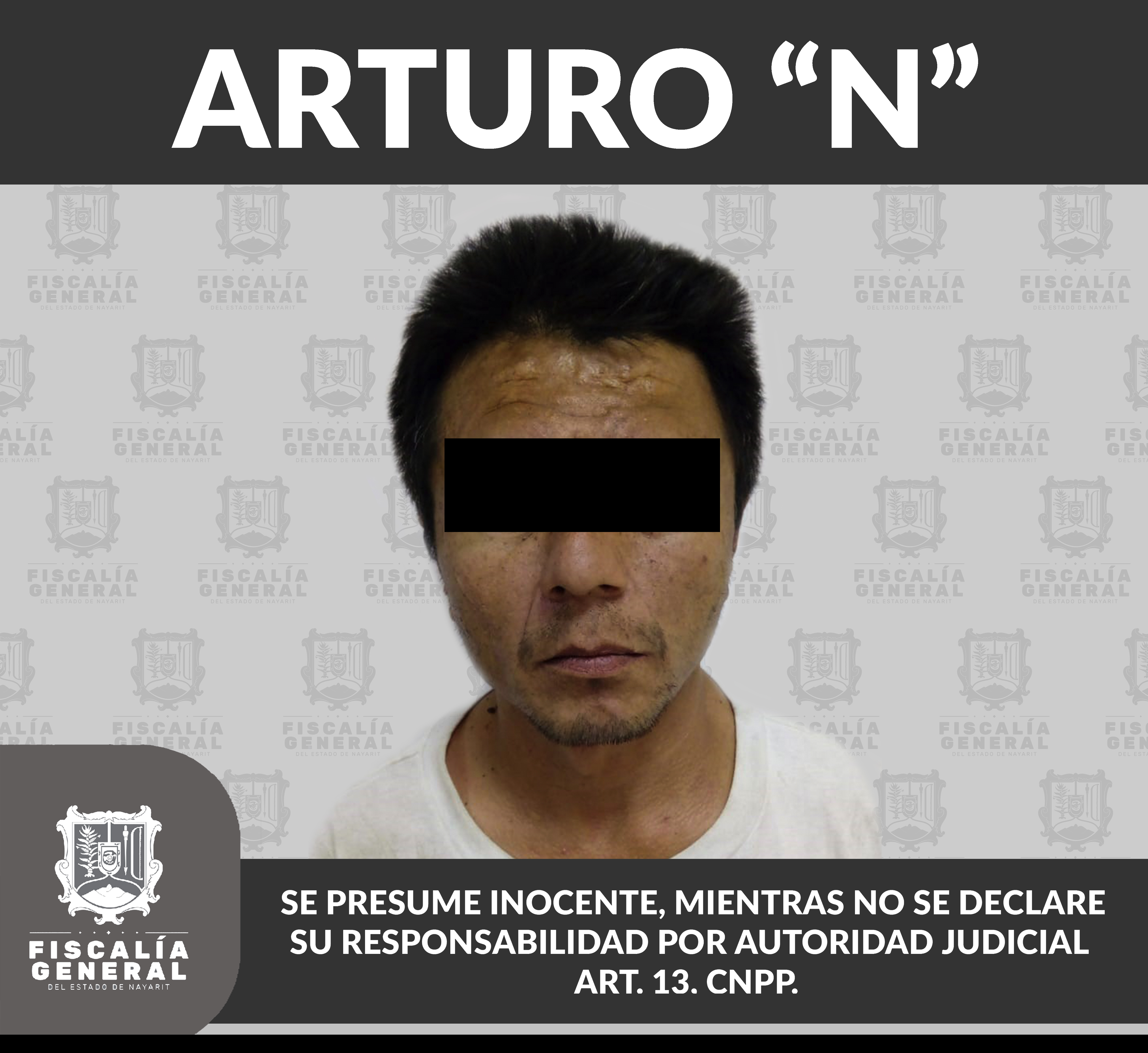 En la ciudad de Tepic fue detenido Arturo “N”, en virtud de haber sido liberada la respectiva orden de aprehensión en su contra, porque presumiblemente es responsable de hechos que la ley señala como delito de violencia familiar. El detenido fue pu...
