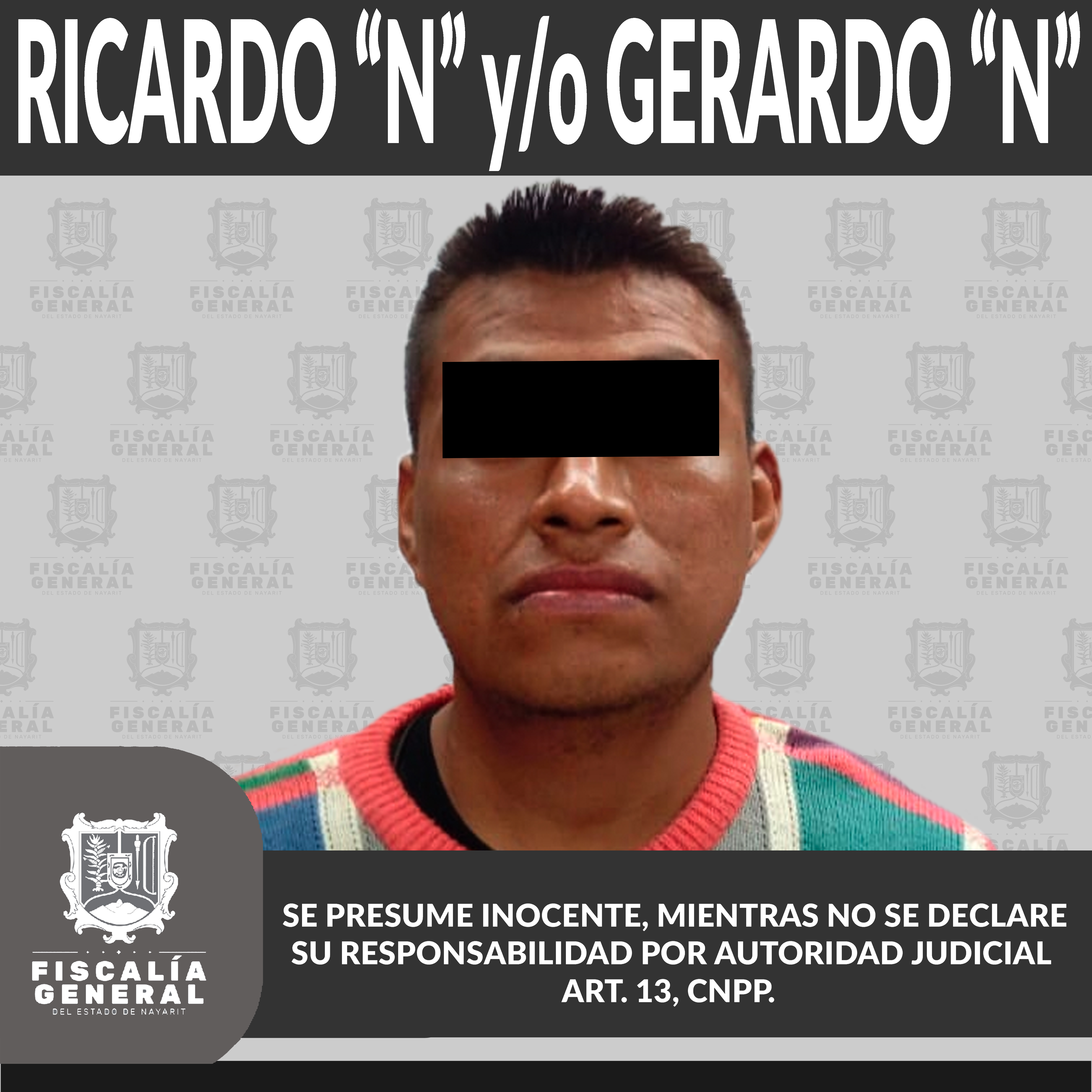 En la ciudad de Tepic fue detenido Ricardo “N” y/o Gerardo “N”, al ser liberada la correspondiente orden de aprehensión en su contra, por su probable participación en el delito de allanamiento de morada, ilícito cometido en agravio de una pers...