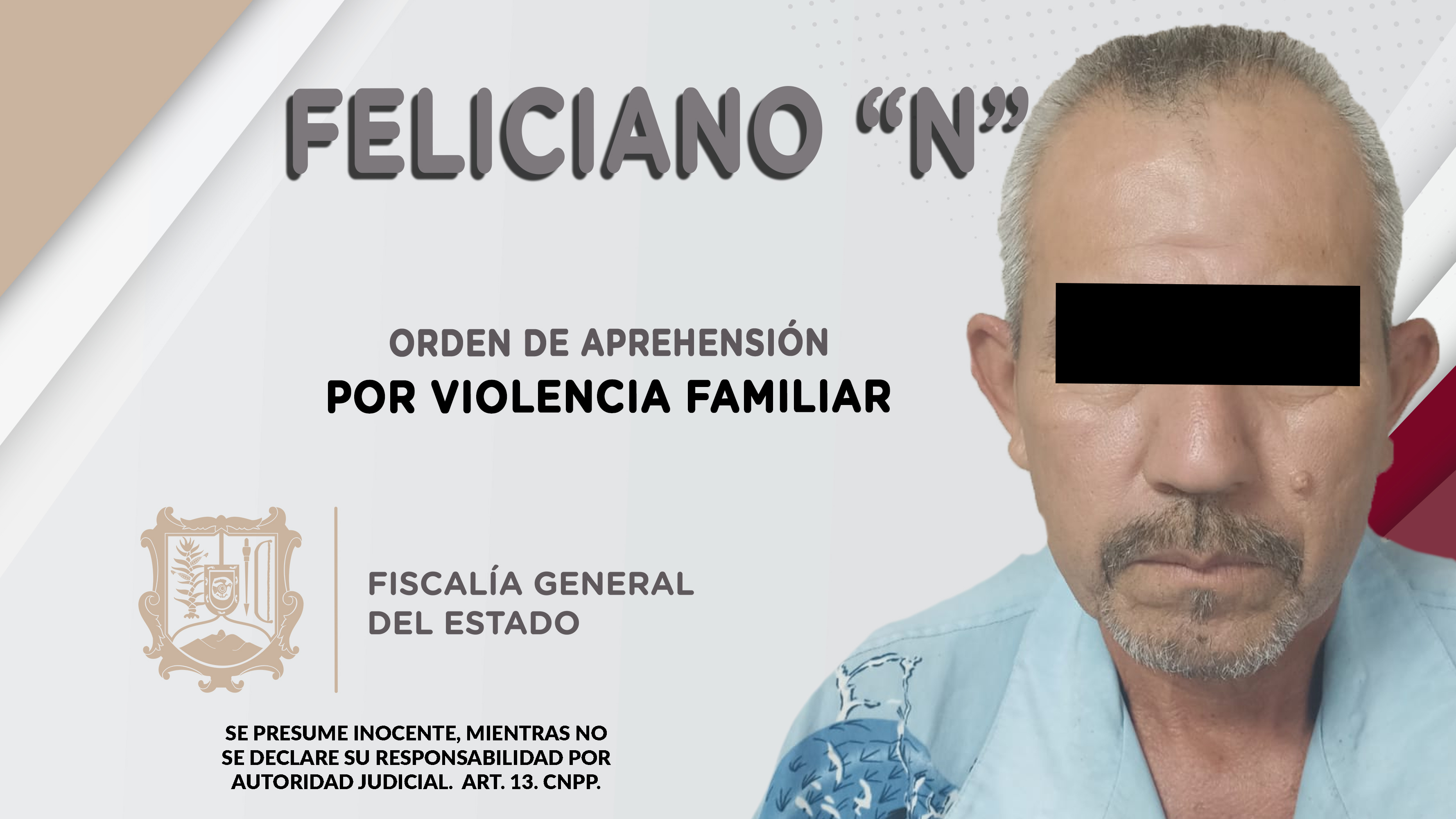 En la capital nayarita, elementos de la Agencia de Investigación Criminal dieron cumplimiento a una orden de reaprehensión contra Feliciano “N”, por su probable responsabilidad penal en hechos que para la ley constituyen el delito de violencia fami...