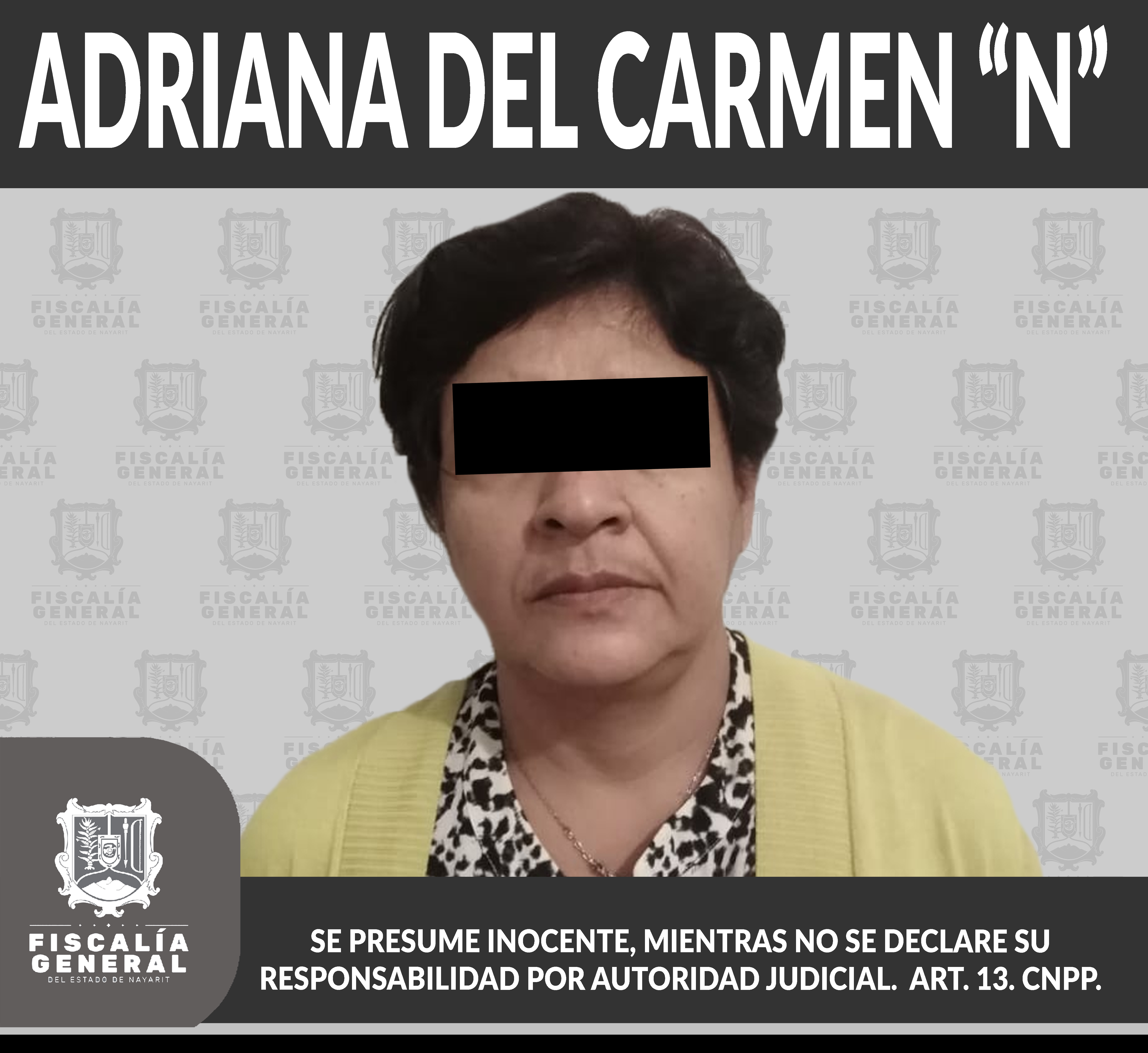 En Puerto Vallarta, Jalisco, fue detenida Adriana del Carmen “N”, como consecuencia de haber sido liberada una orden de aprehensión en su contra, por su probable participación en hechos que según la ley encuadran como delito de daño en las cosas....
