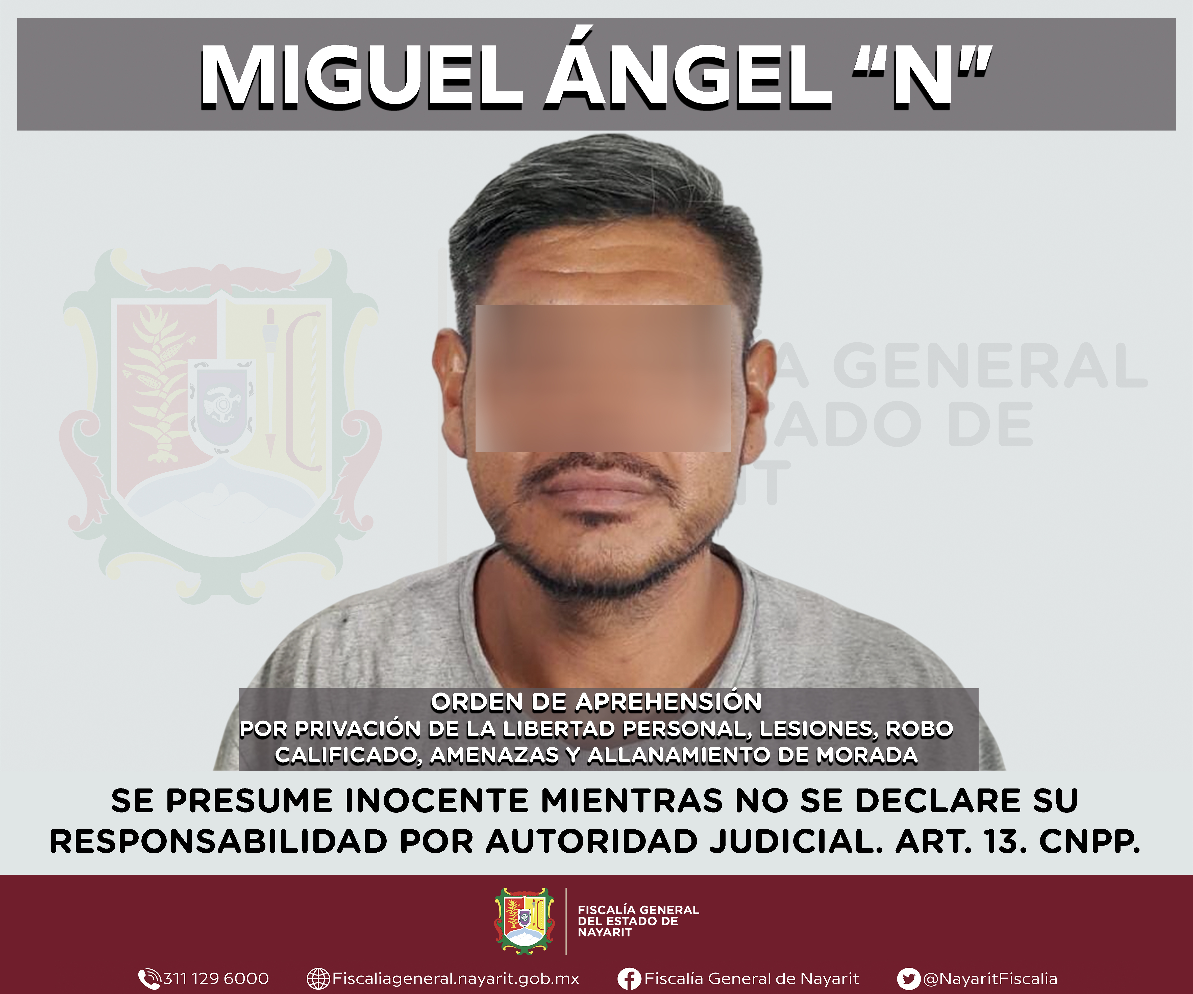 La Fiscalía General de Nayarit a través de la Agencia de Investigación Criminal ejecutó una orden de aprehensión en la capital nayarita contra Oziel Alejandro “N”, por su probable participación en hechos que para la ley configuran el delito de ...