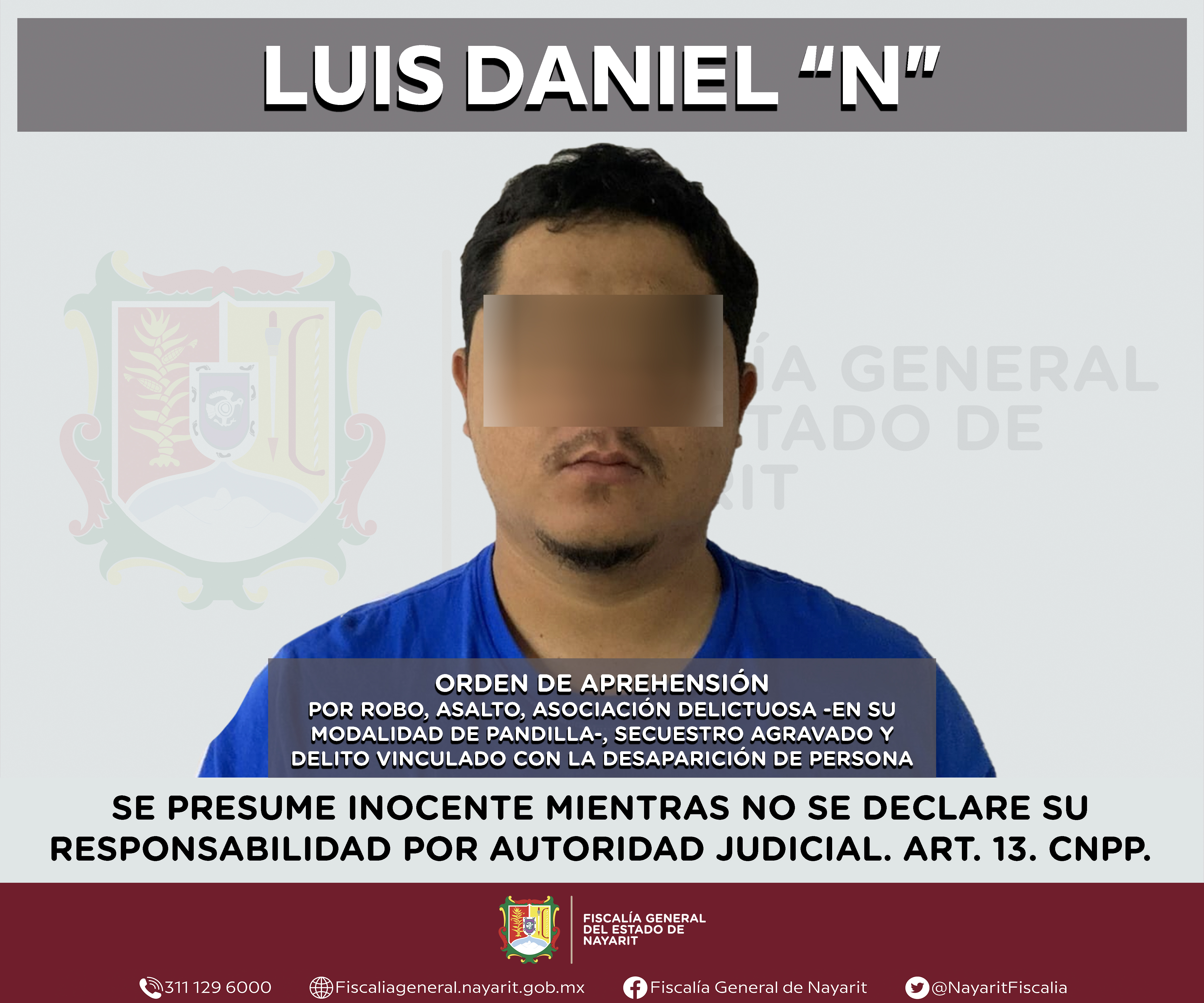 Tepic, Nayarit; 27 de enero de 2025.- La Fiscalía General del estado de Nayarit a través de la Agencia de Investigación Criminal ejecutó una orden de aprehensión contra Luis Daniel “N”, po...