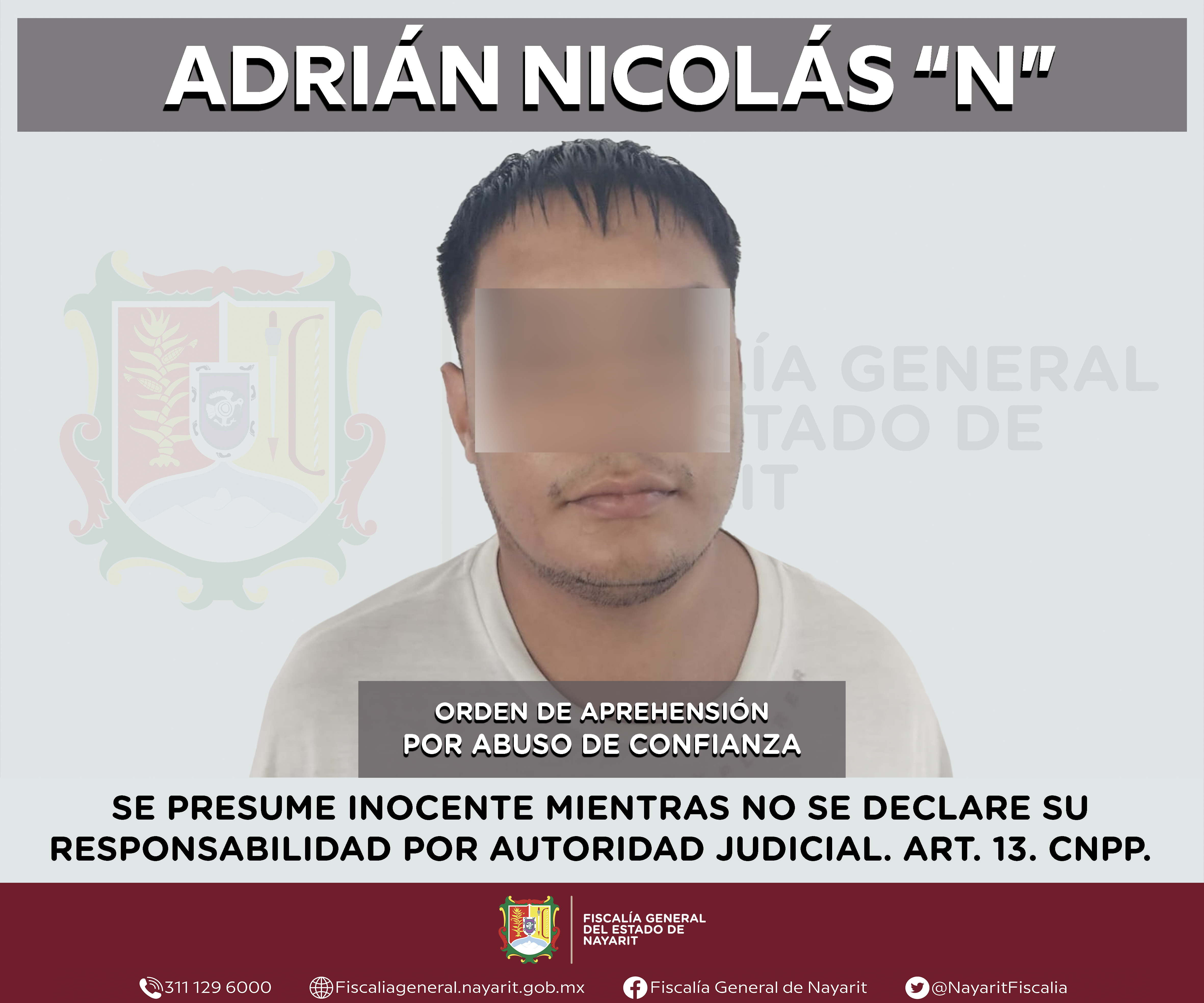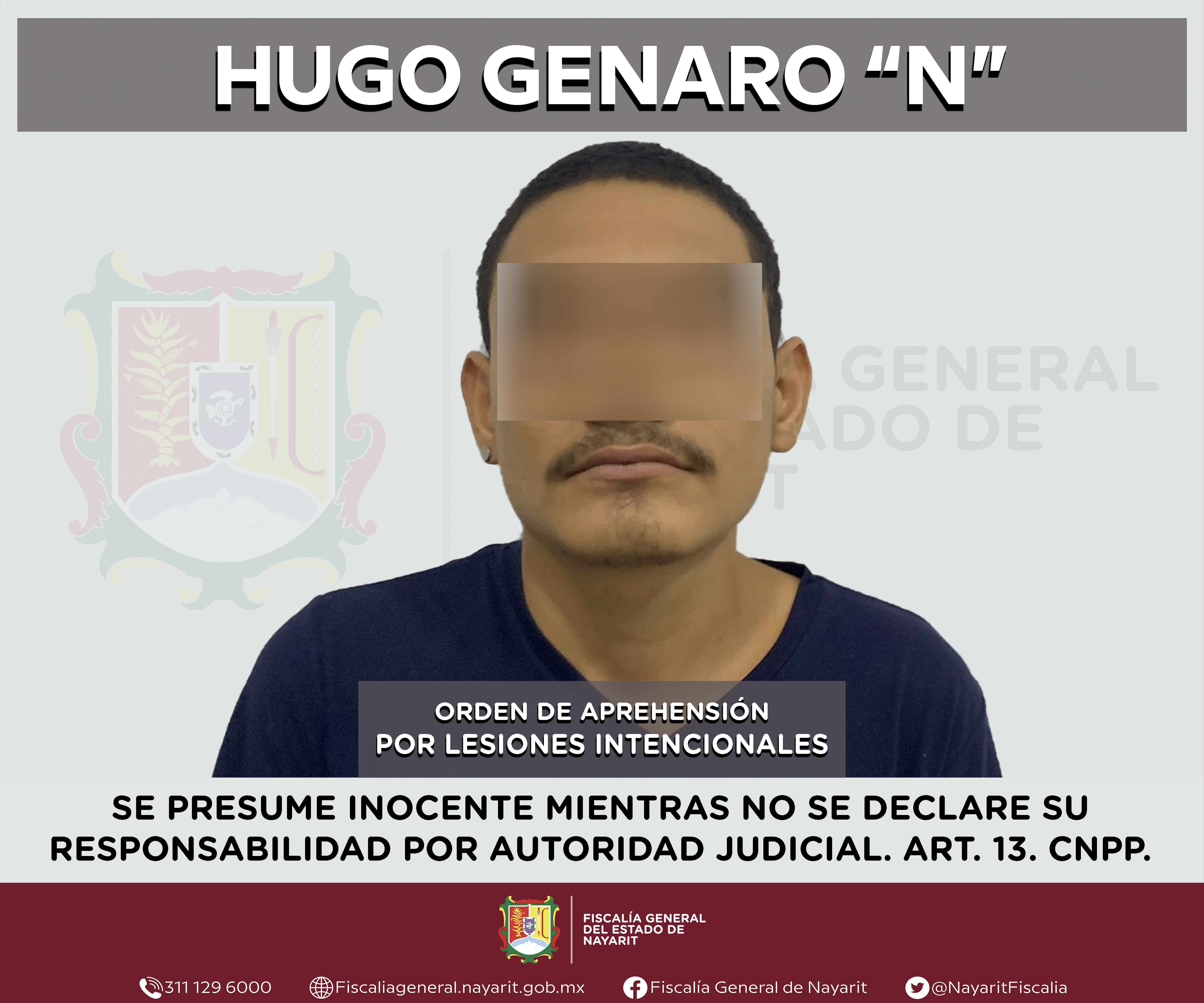 La Fiscalía General de Nayarit a través de la Agencia de Investigación Criminal ejecutó una orden de aprehensión en la localidad La Peñita de Jaltemba, municipio de Compostela contra Hugo Genaro “N”, por su presunta participación en hechos que...