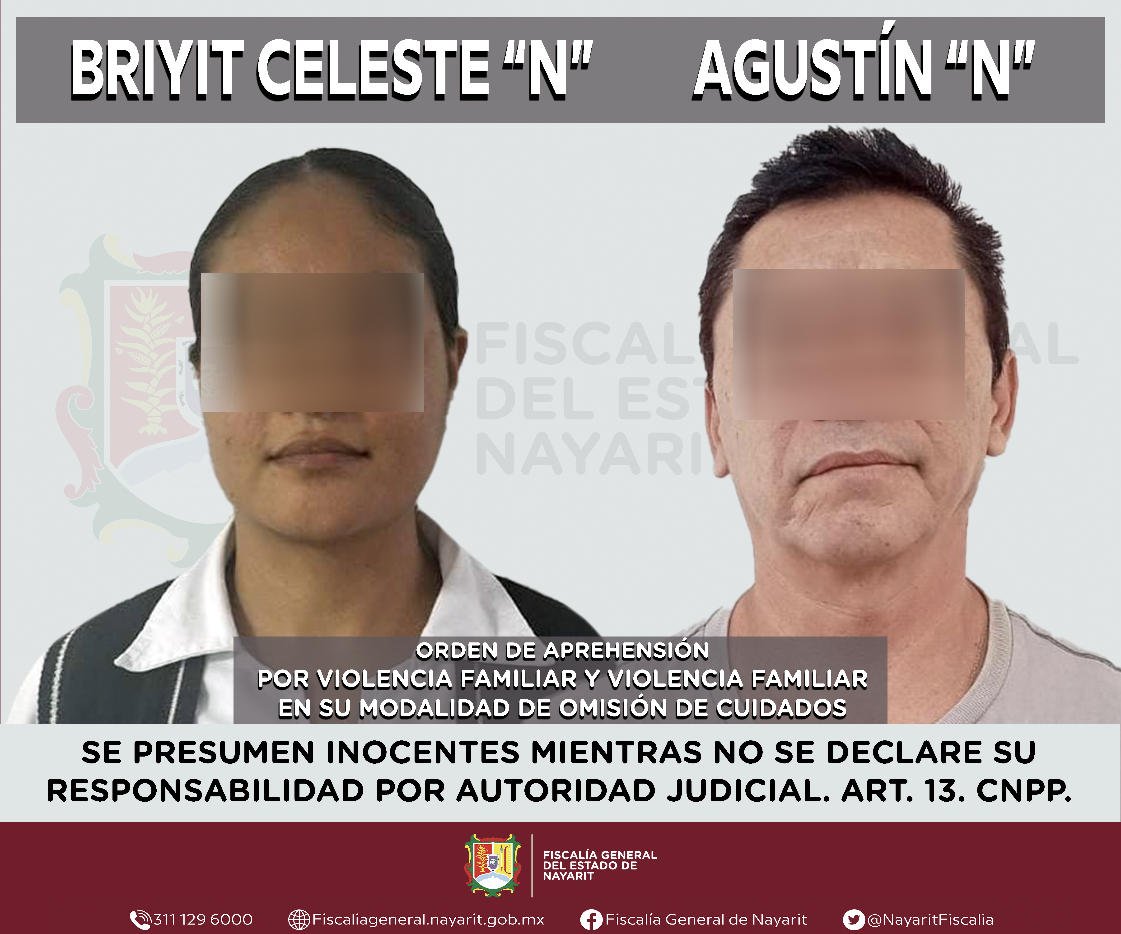 La Fiscalía General de Nayarit a través de la Agencia de Investigación Criminal ejecutó una orden de aprehensión en la ciudad de Tepic contra Briyit Celeste “N” y Agustín “N”, por su probable participación en hechos que para la ley configu...