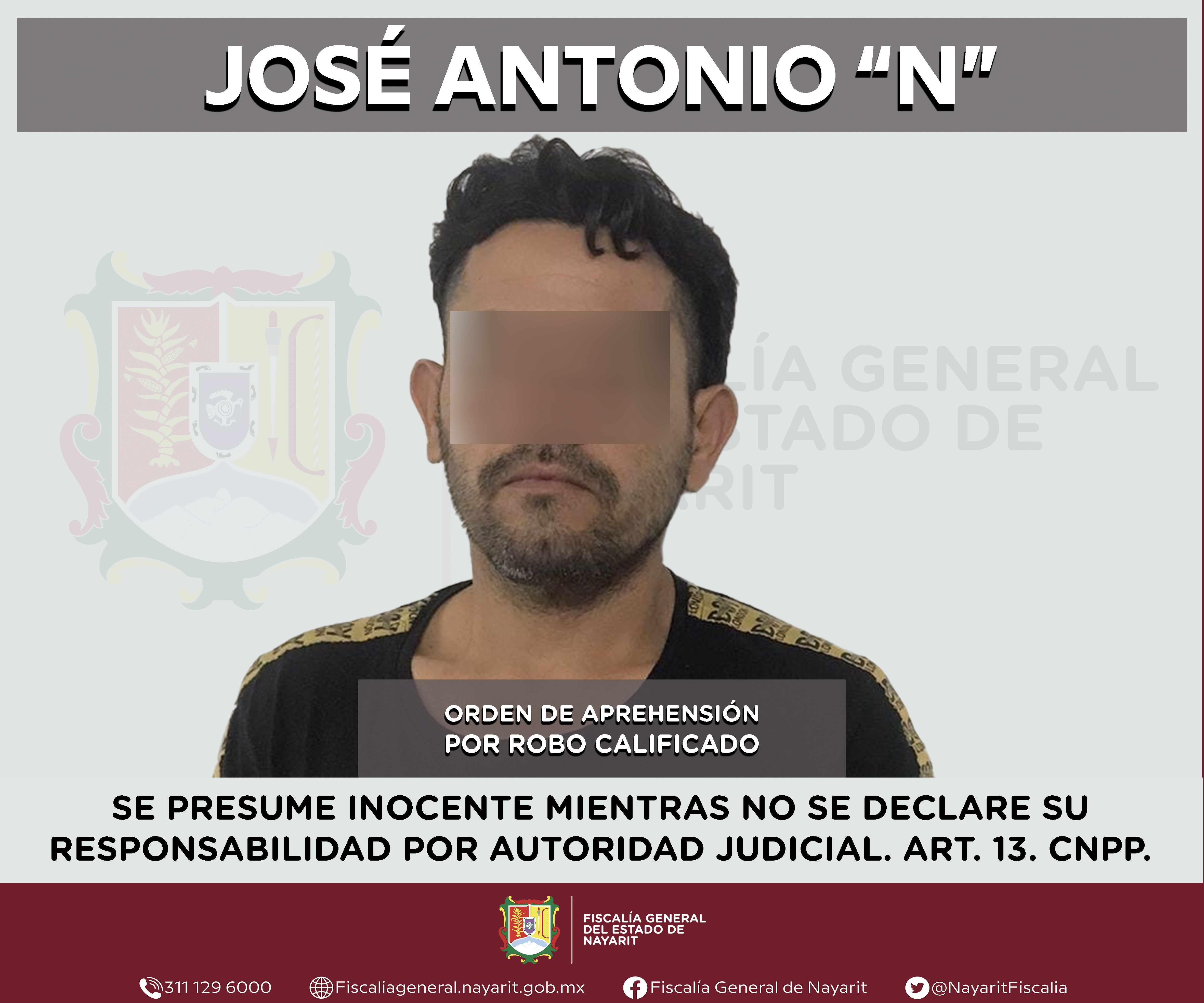 La Fiscalía General del estado de Nayarit a través de la Agencia de Investigación Criminal ejecutó una orden de aprehensión en la capital nayarita contra José Antonio “N”, por su presunta participación en hechos que según valoración de la le...