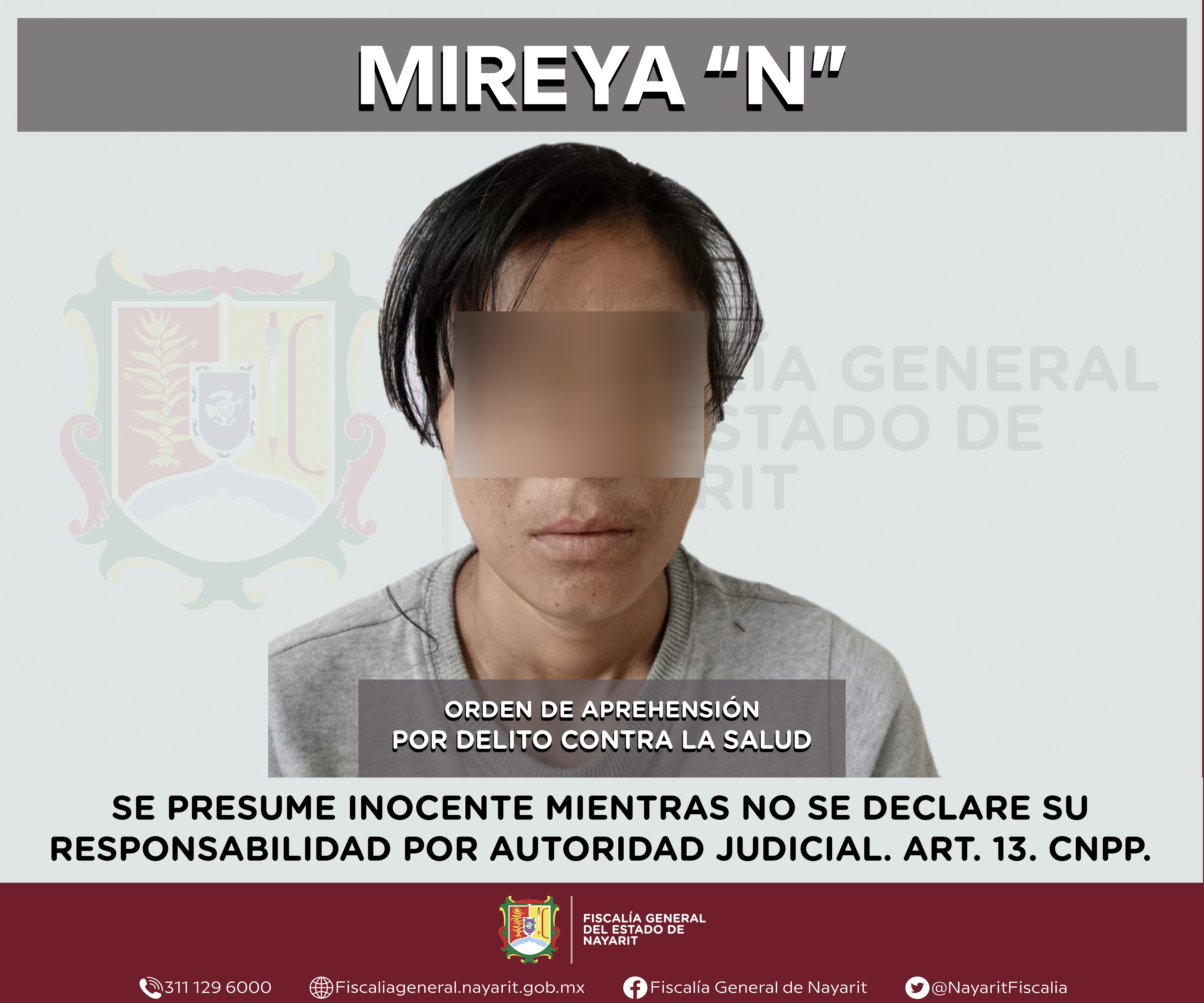 La Fiscalía General del estado de Nayarit a través de la Agencia de Investigación Criminal ejecutó una orden de aprehensión en la capital nayarita contra Mireya “N”, por su presunta participación en hechos que según valoración de la ley confi...