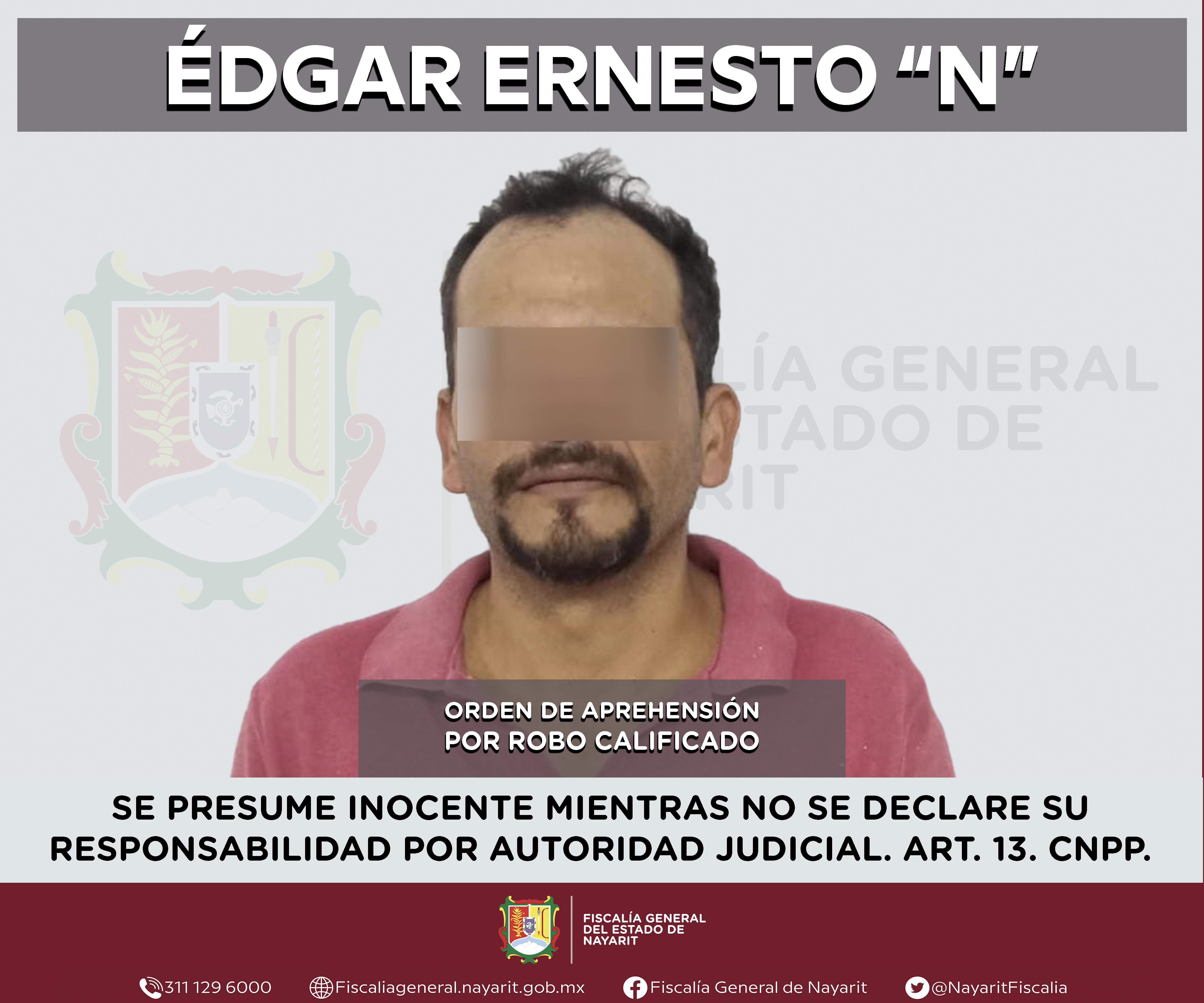 Elementos de la Agencia de Investigación Criminal de Nayarit ejecutaron una orden de aprehensión en el municipio de Santiago Ixcuintla contra Hugo “N”, por su presunta participación en hechos que según apreciación de la ley encuadran el delito d...