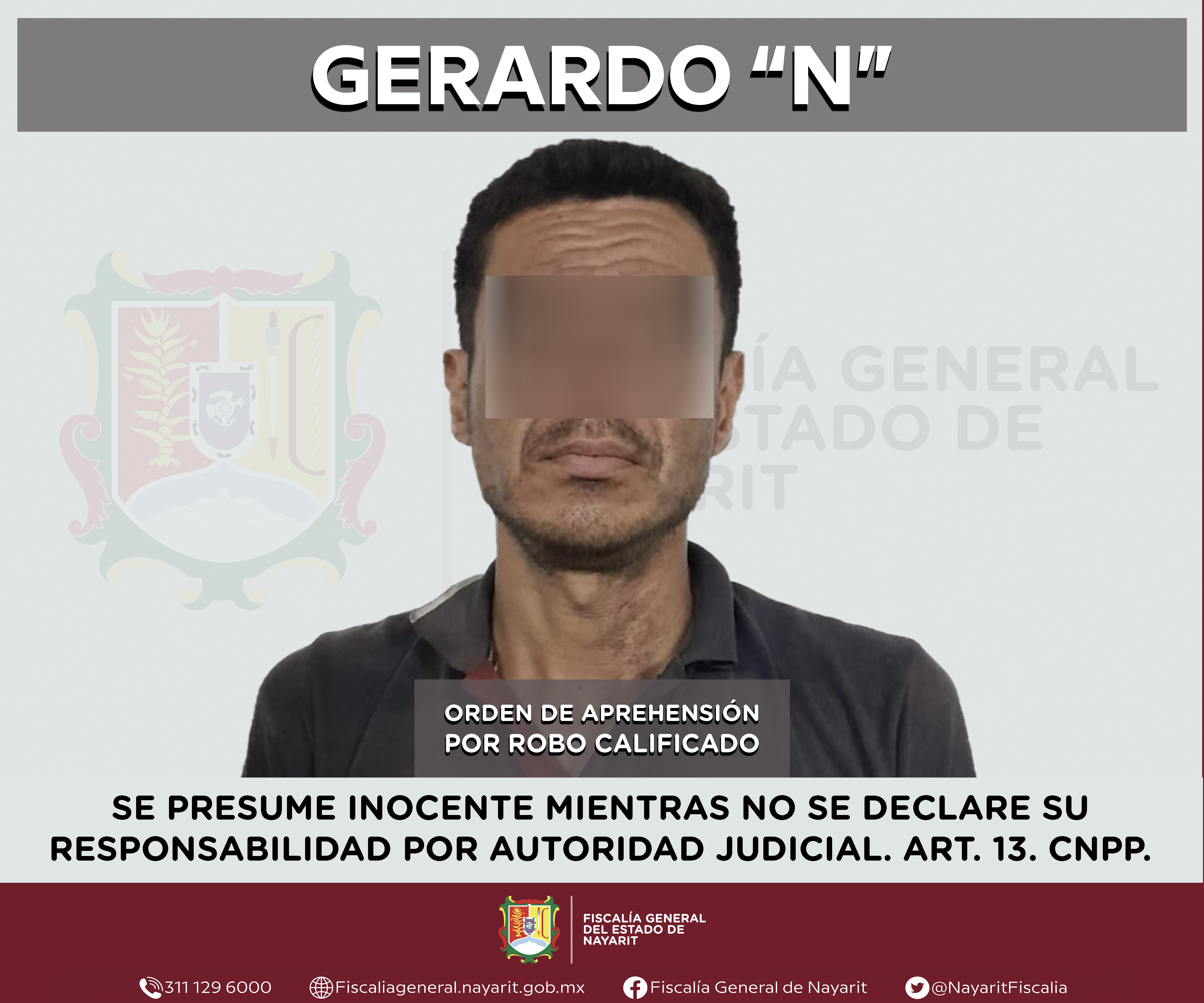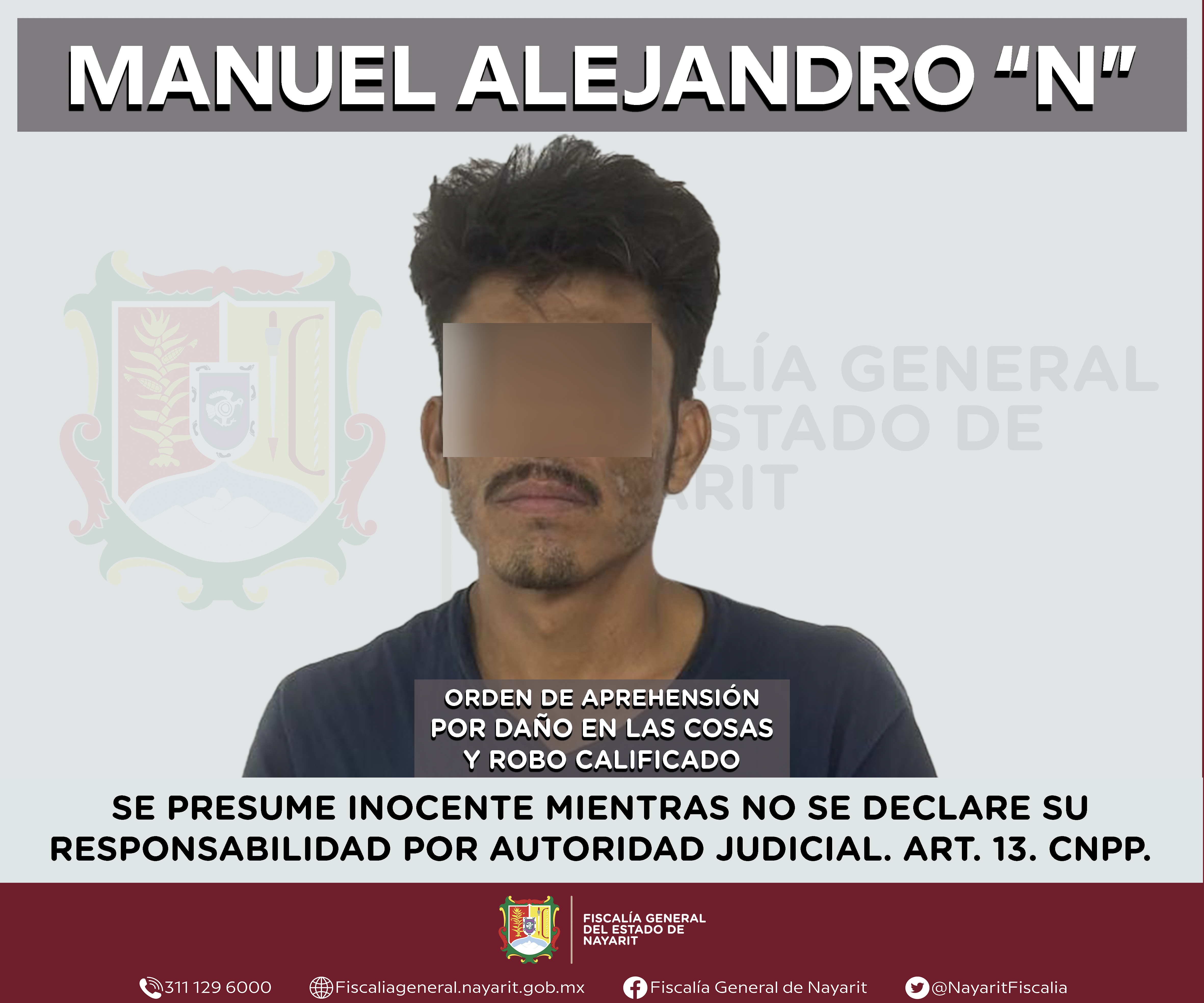 La Fiscalía General del estado de Nayarit a través de la Agencia de Investigación Criminal ejecutó una orden de aprehensión en la capital nayarita contra Alan Alejandro “N”, por su presunta participación en hechos que según valoración de la l...