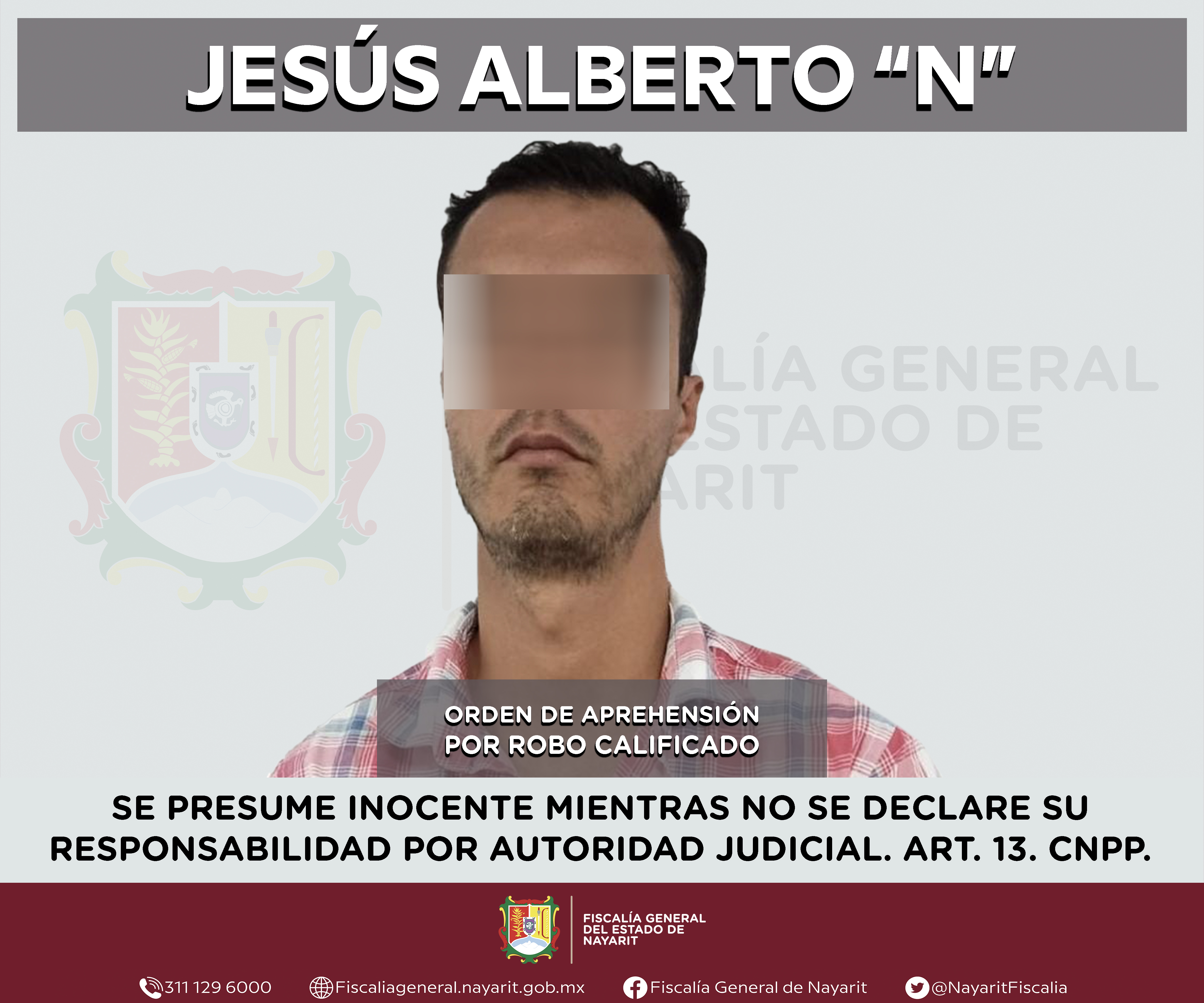 Elementos de la Agencia de Investigación Criminal de Nayarit ejecutaron una orden de aprehensión en la capital nayarita contra Jesús Alberto “N”, por su presunta participación en hechos que bajo apreciación de la ley configuran el delito de robo...