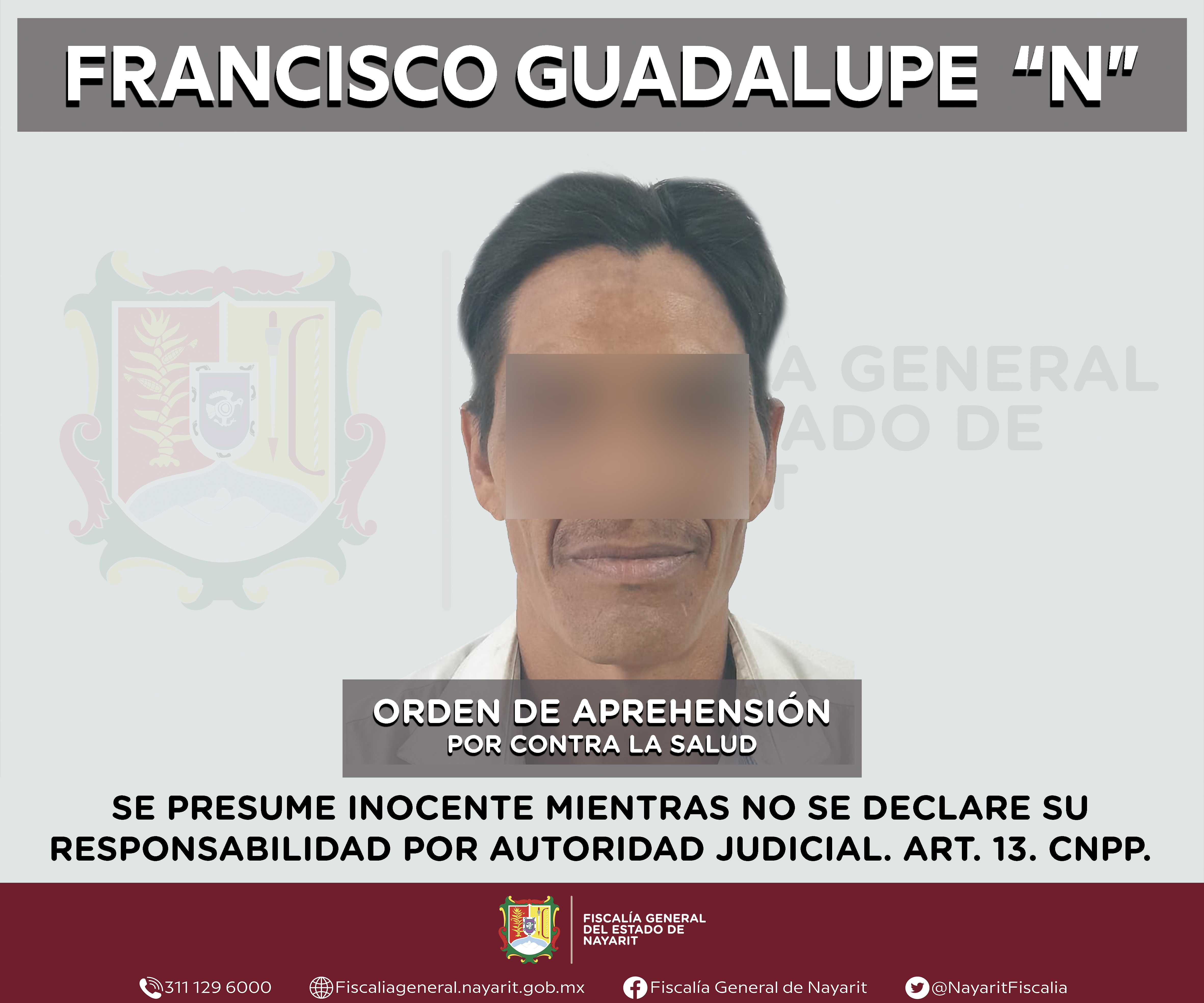 La Fiscalía General del Estado a través de la Agencia de Investigación Criminal dio cumplimiento a una orden de aprehensión en la ciudad de Tepic contra Miguel Ángel “N”, por su presunta participación en hechos que según apreciación de la ley...