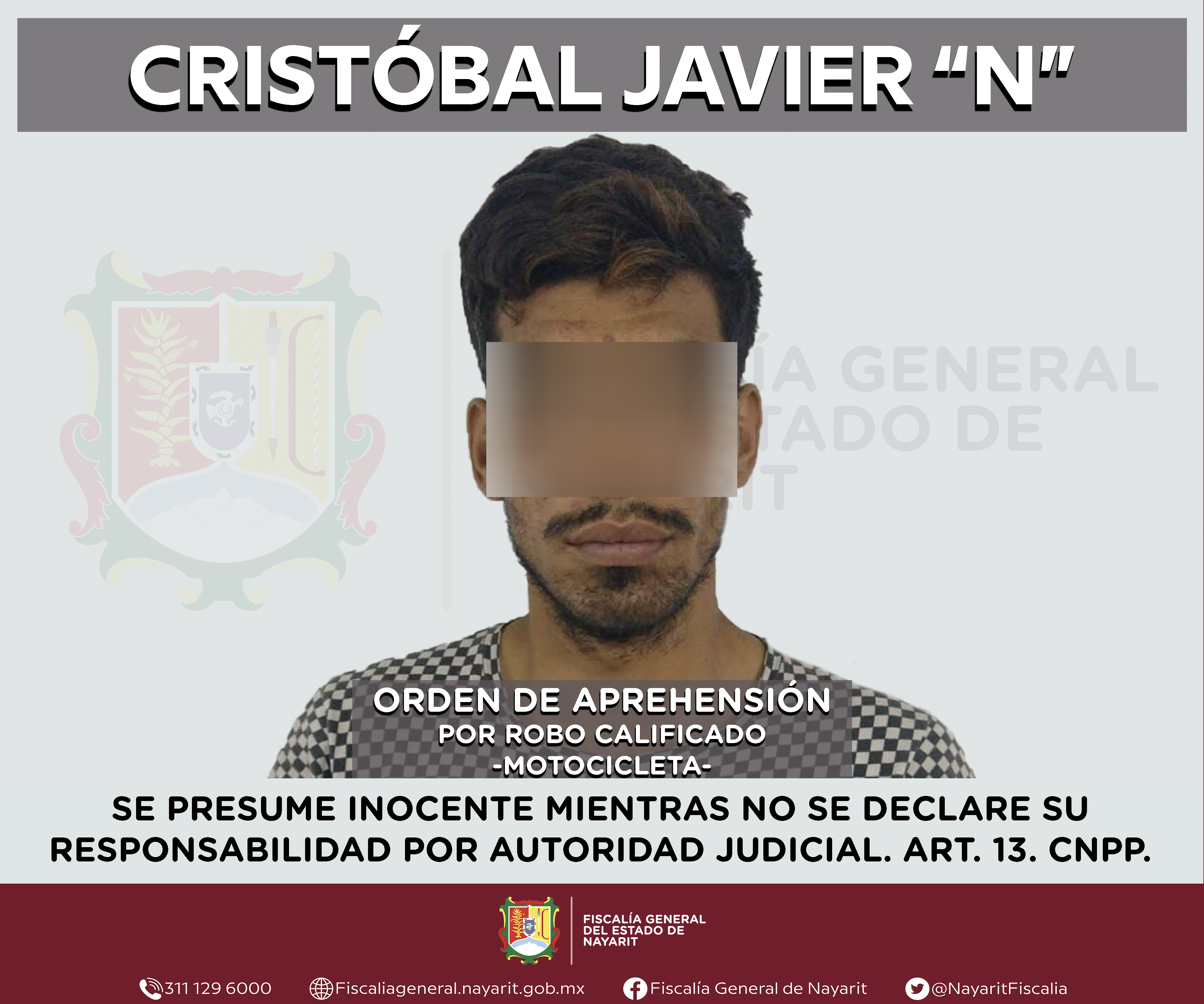 Elementos de la Agencia de Investigación Criminal de Nayarit ejecutaron una orden de aprehensión en el municipio de Bahía de Banderas contra Christian Francisco “N”, por su presunta participación en hechos que bajo apreciación de la ley configur...
