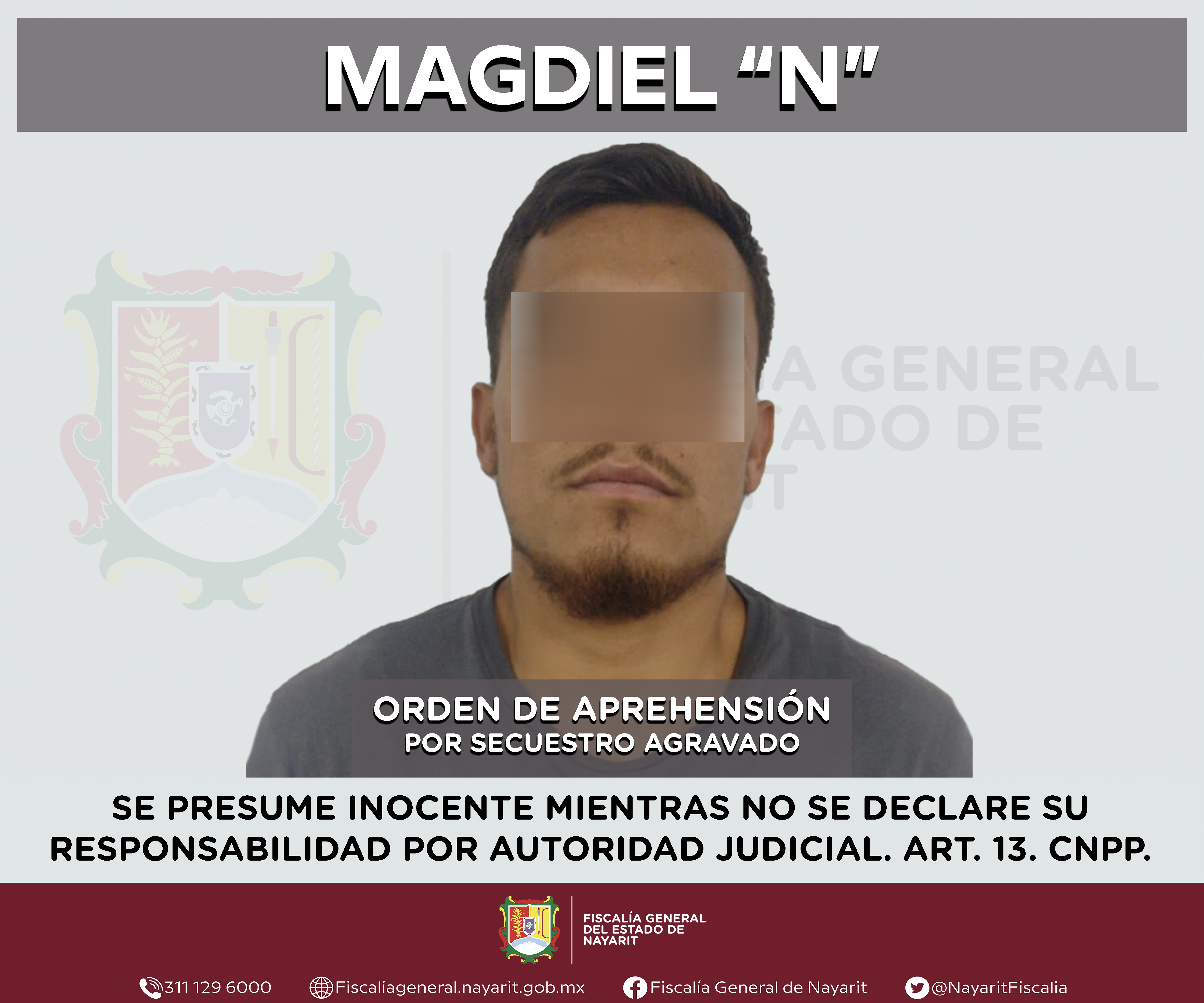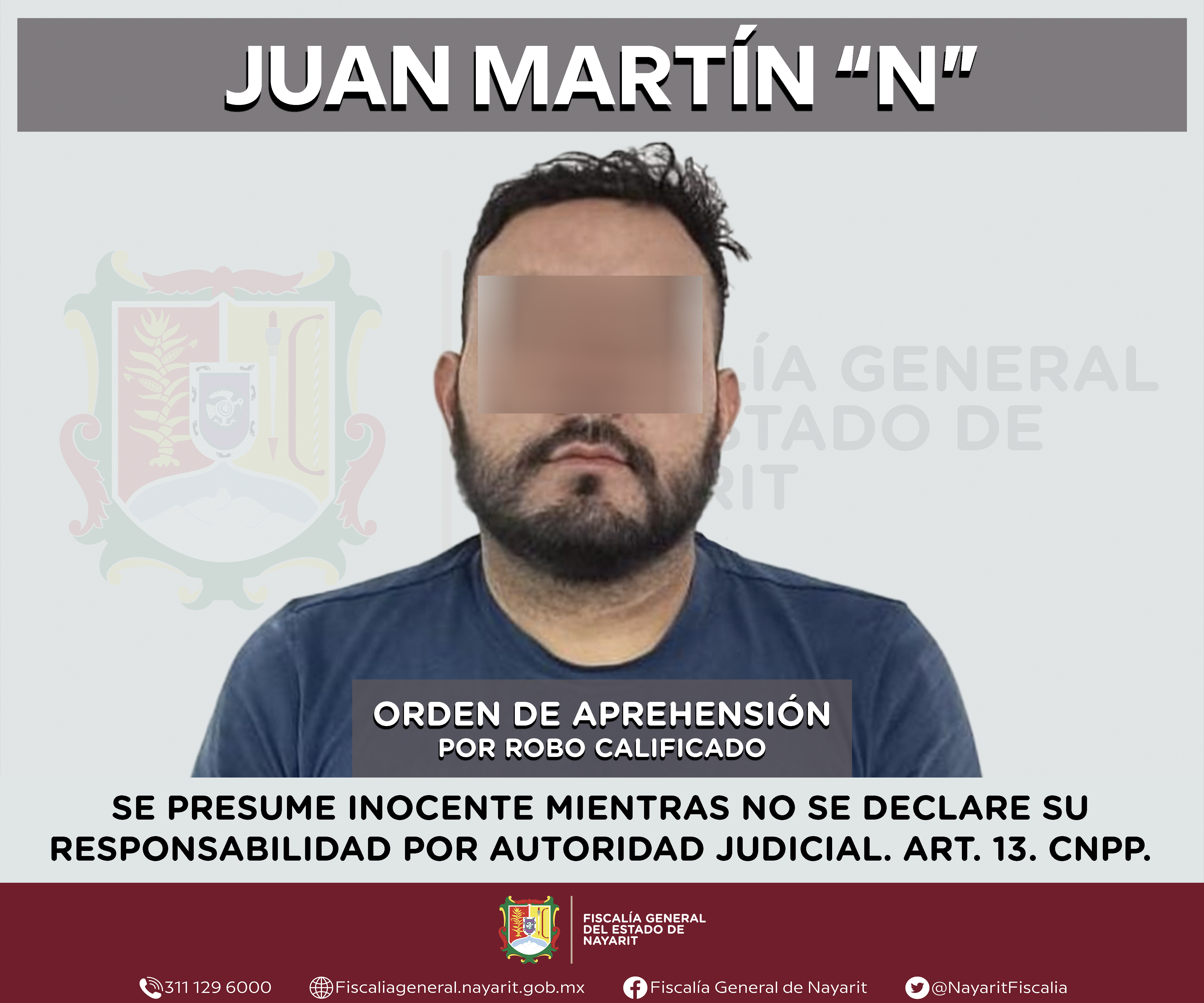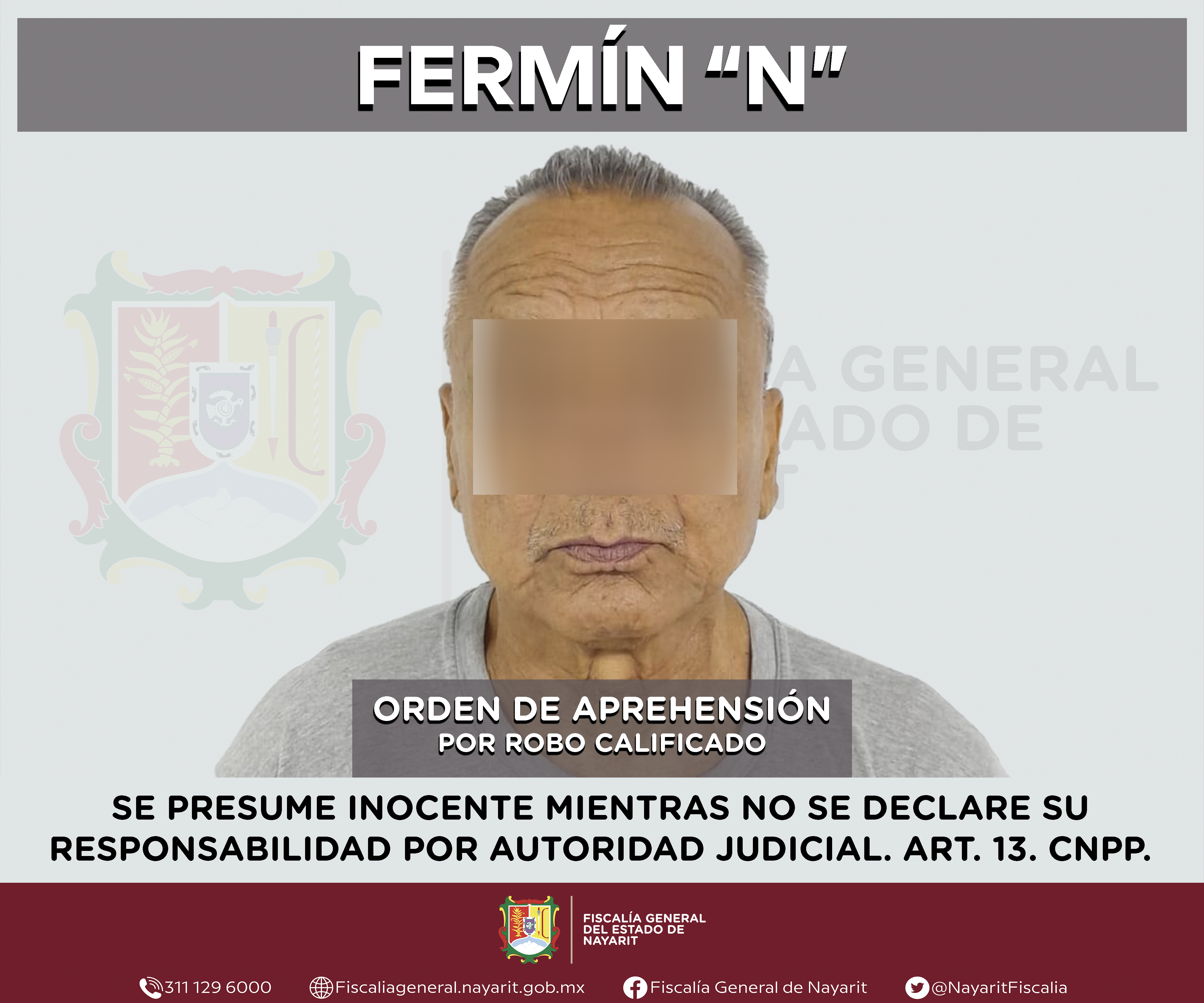 La Fiscalía General del estado de Nayarit a través de la Agencia de Investigación Criminal ejecutó una orden de aprehensión en la ciudad de Tepic contra Fermín “N”, por su presunta participación en hechos que según valoración de la ley encua...