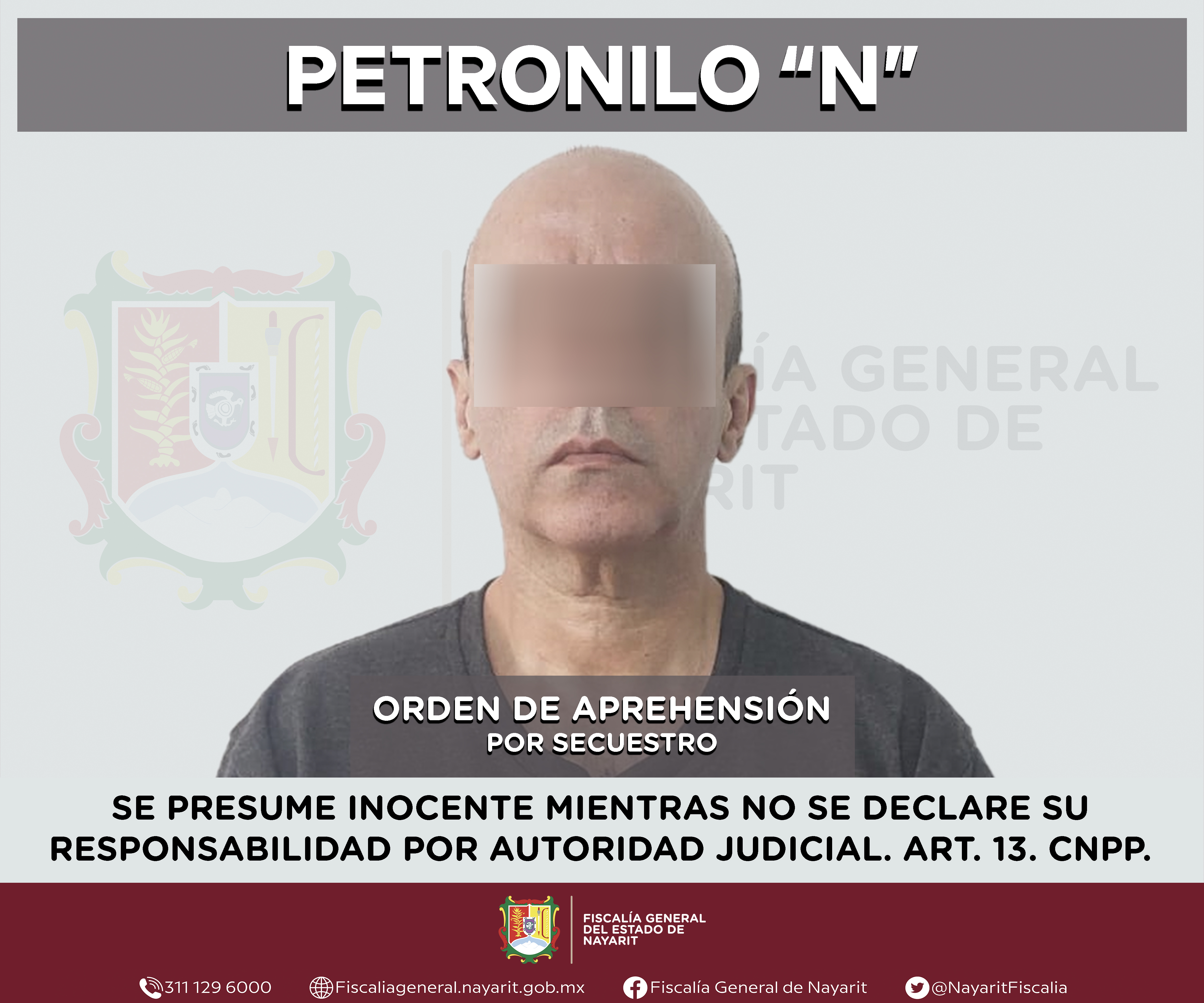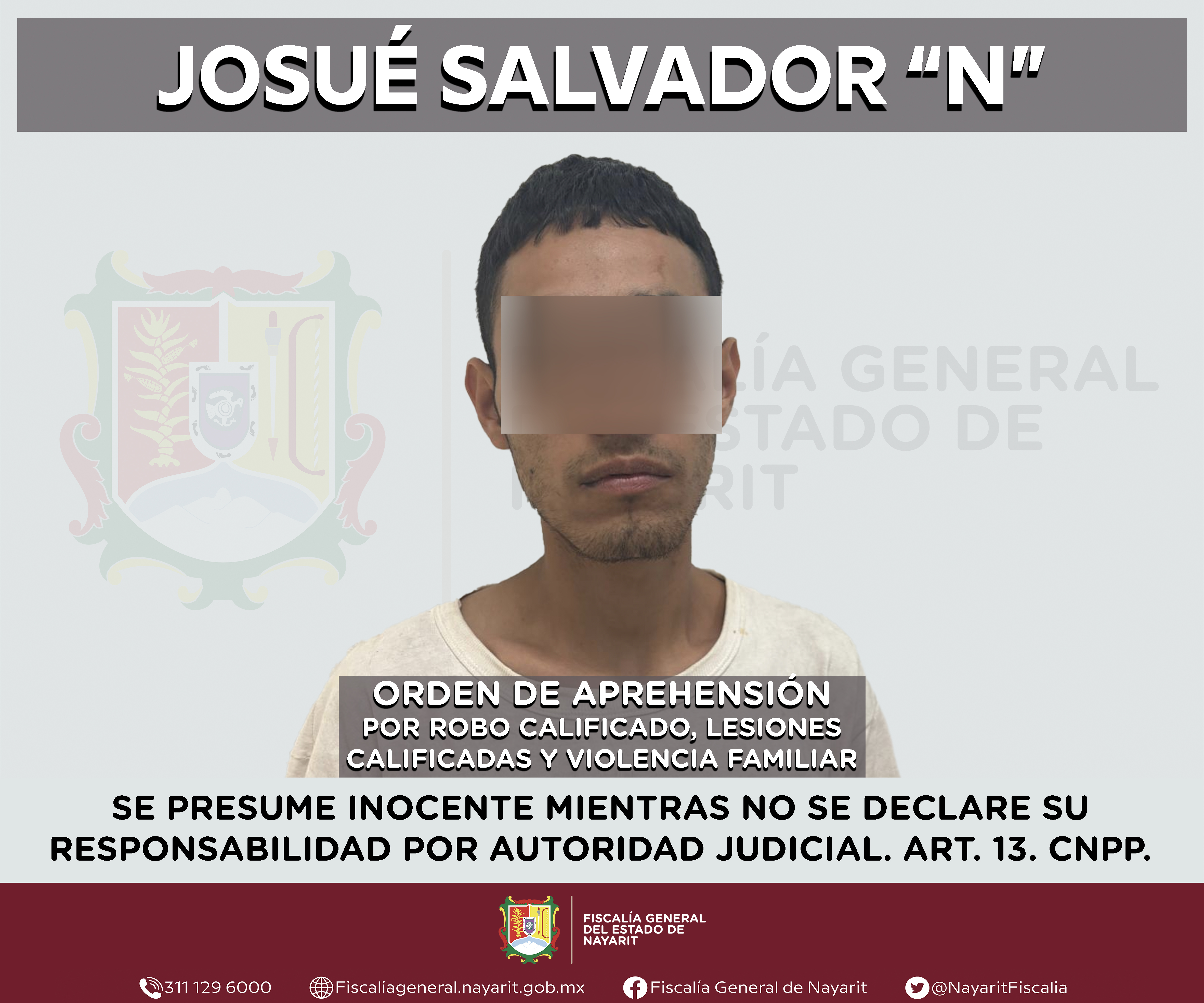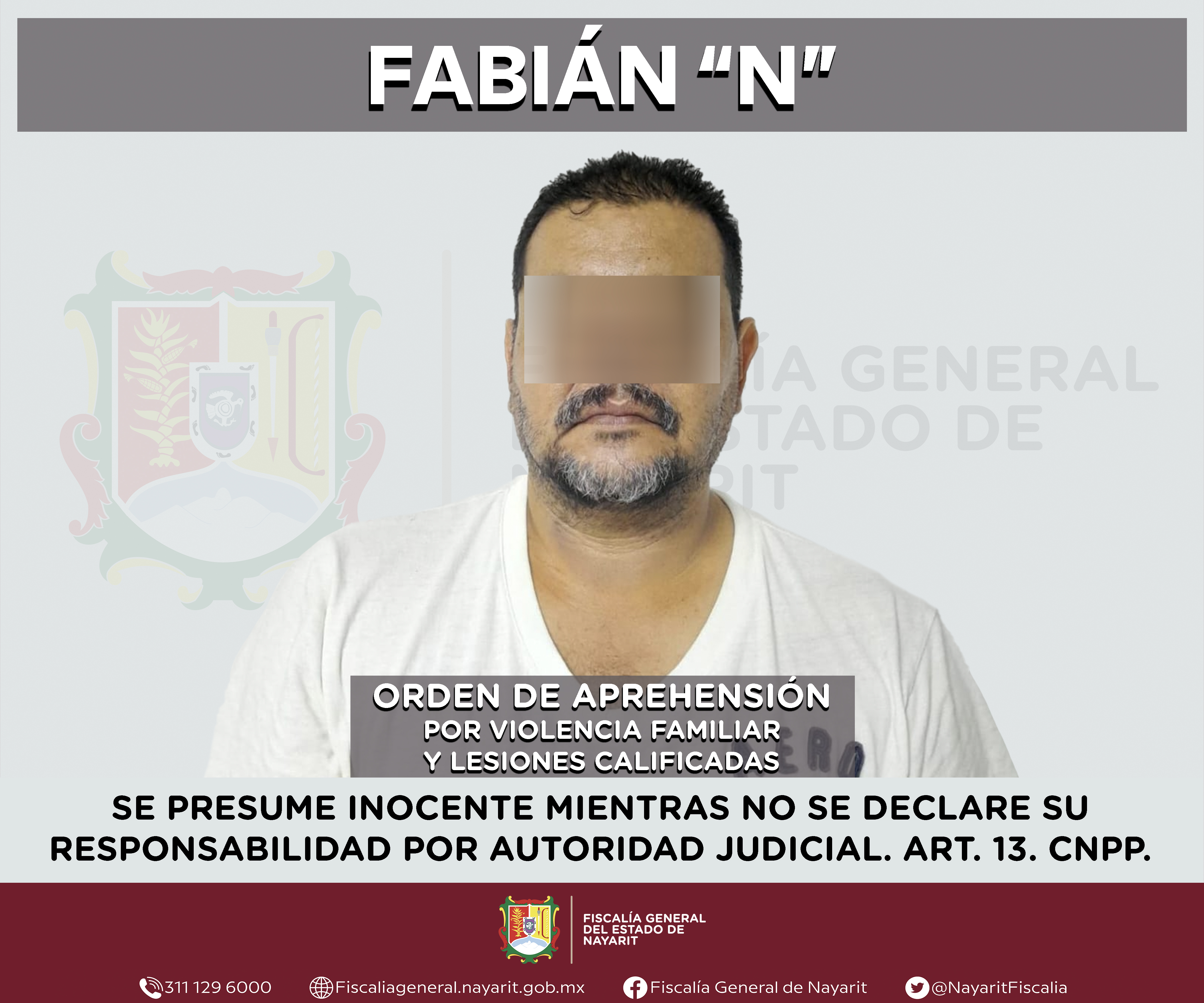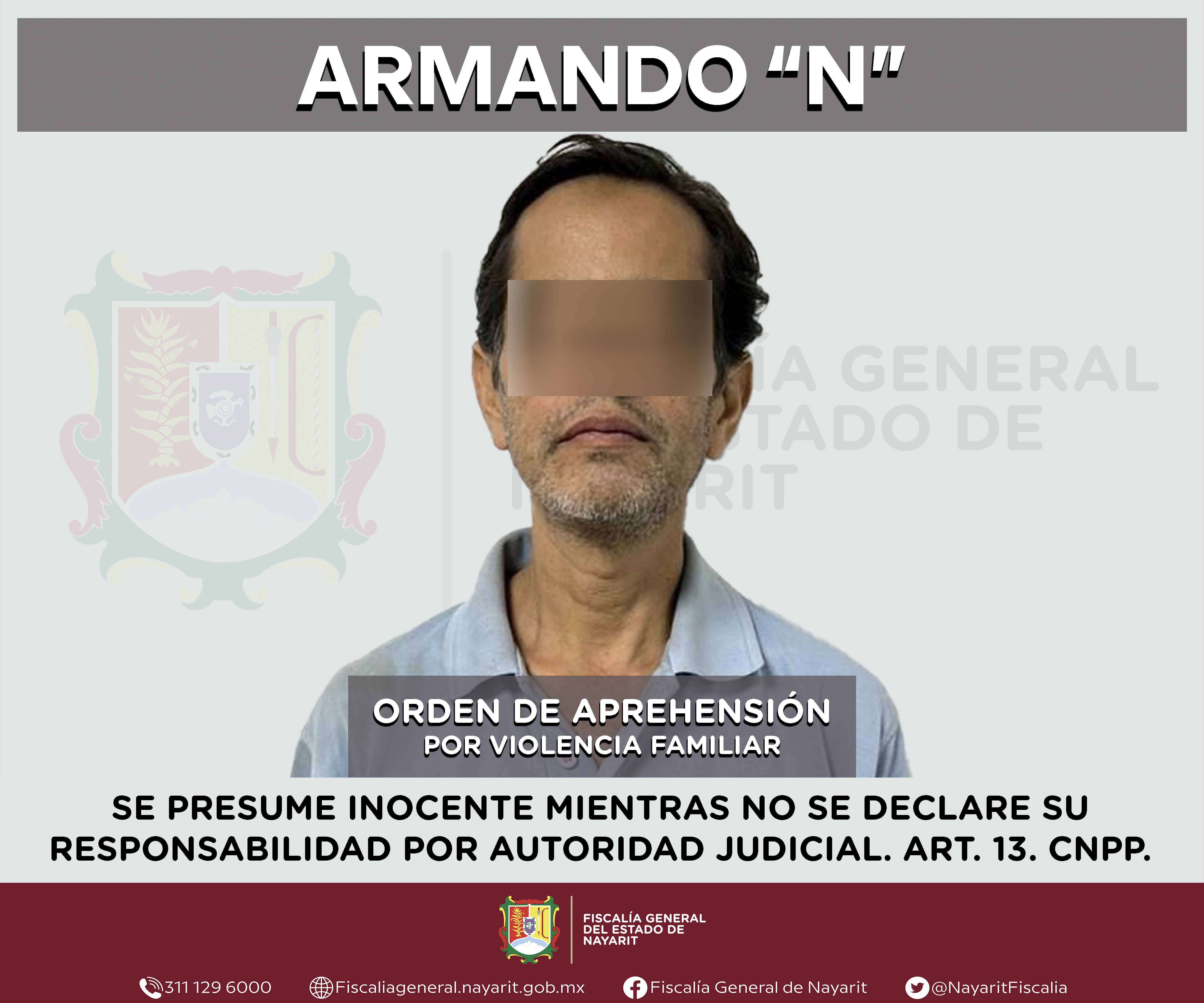 La Fiscalía General del estado de Nayarit a través de la Agencia de Investigación Criminal ejecutó una orden de aprehensión contra Armando “N”, por su presunta participación en hechos que según valoración de la ley encuadran el delito de viol...