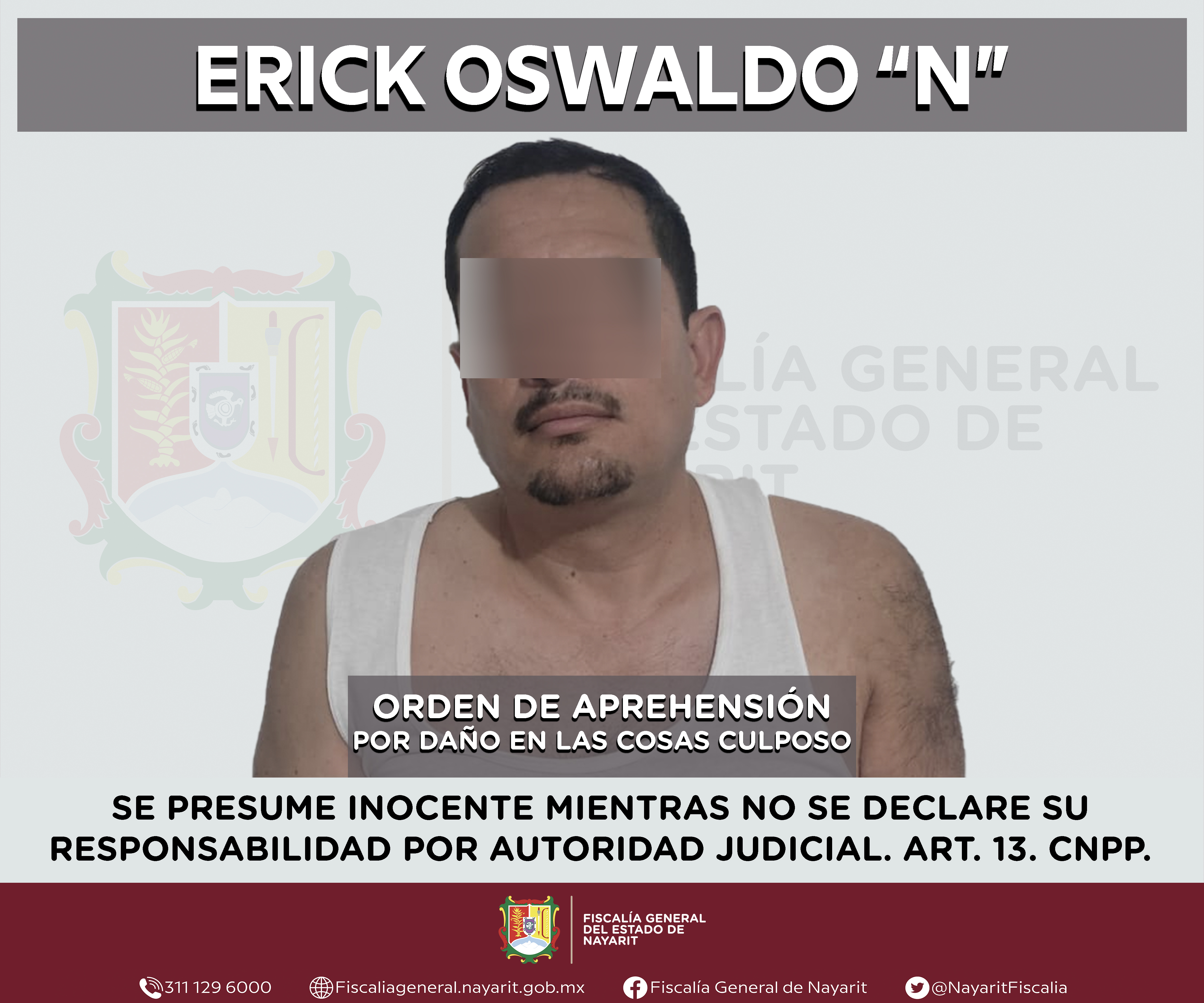 Boletín 0706/2024 | APREHENDIDO EN SANTIAGO IXCUINTLA POR DAÑO EN LAS COSAS CULPOSO