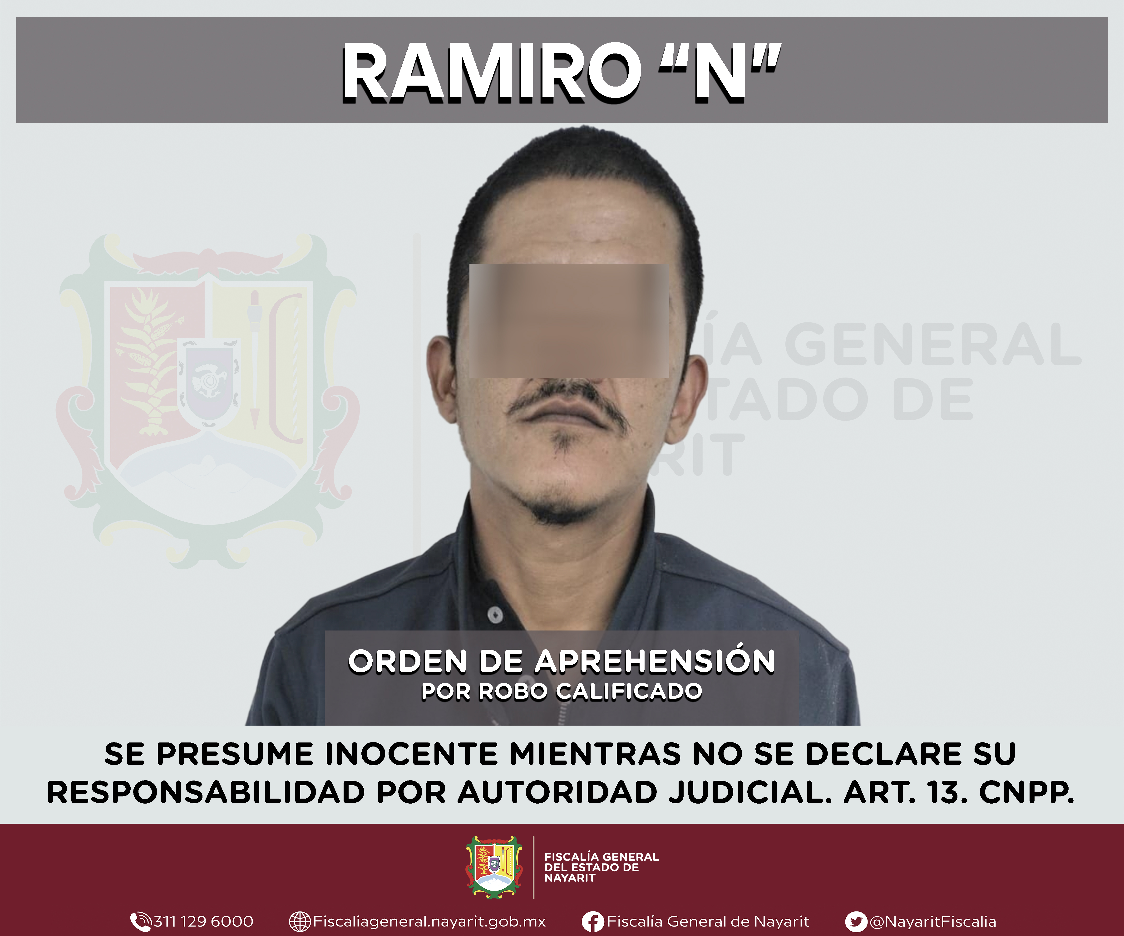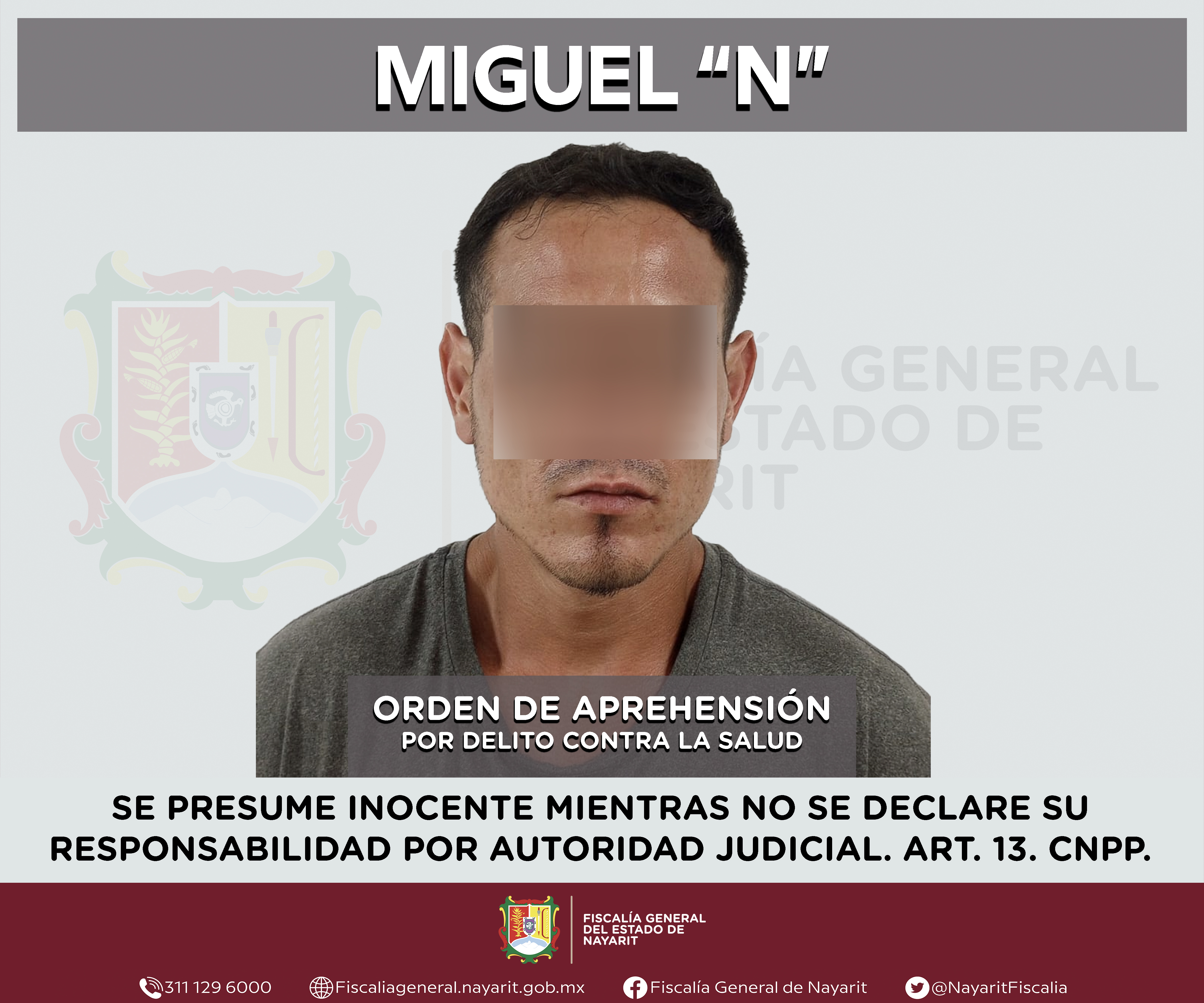 La Fiscalía General del estado de Nayarit a través de la Agencia de Investigación Criminal ejecutó una orden de aprehensión en la capital nayarita contra Miguel “N”, por su presunta participación en hechos que según valoración de la ley encua...