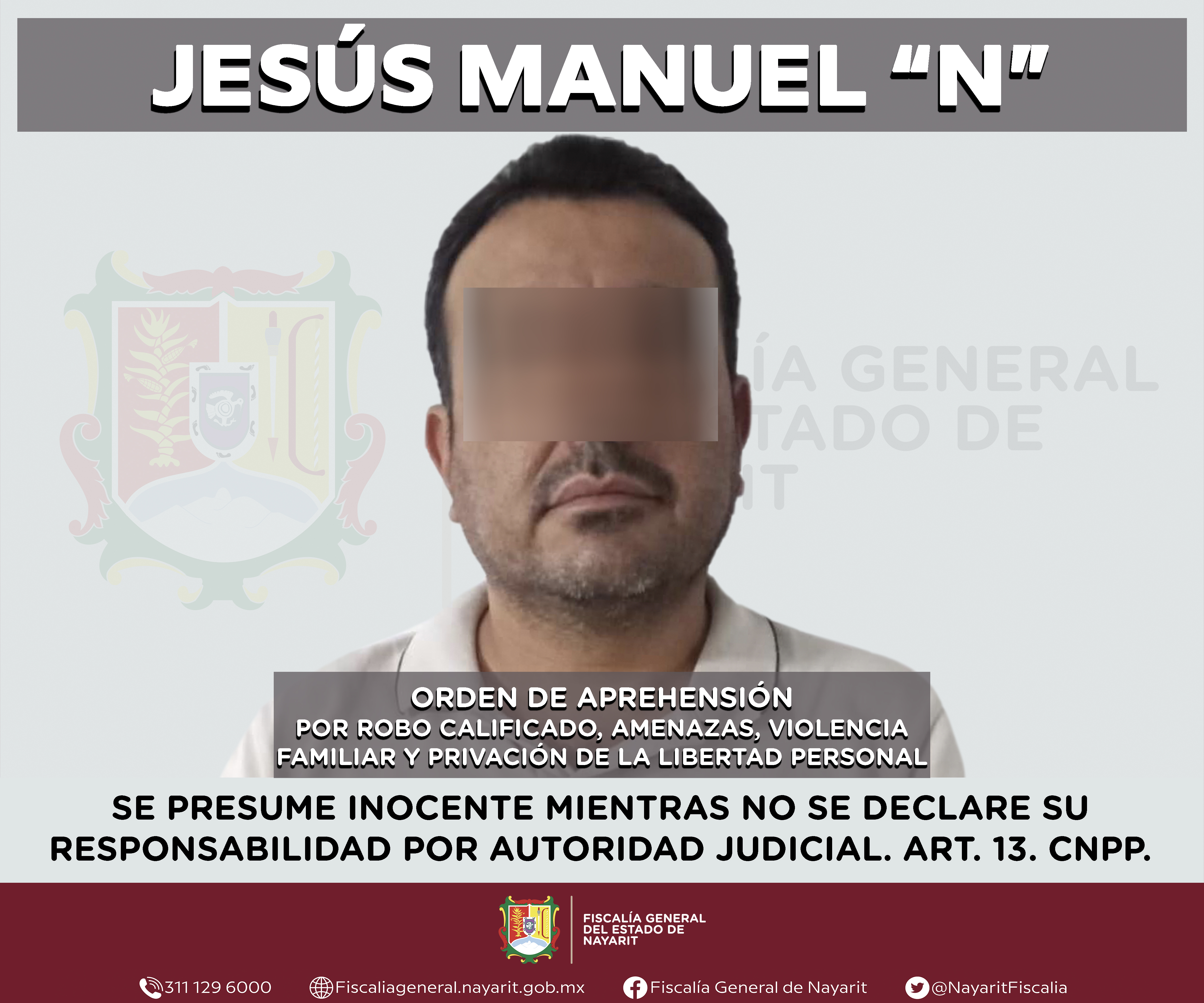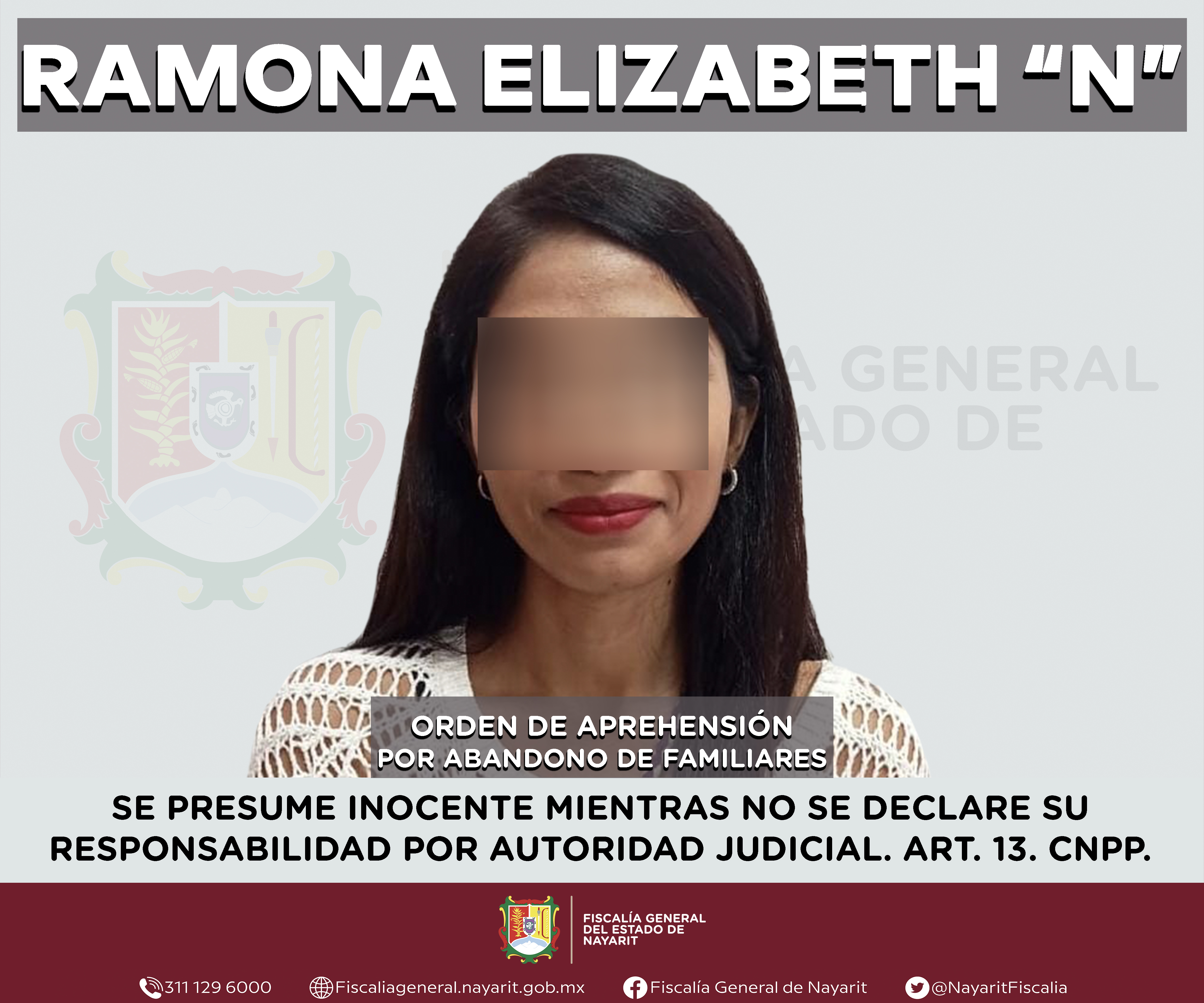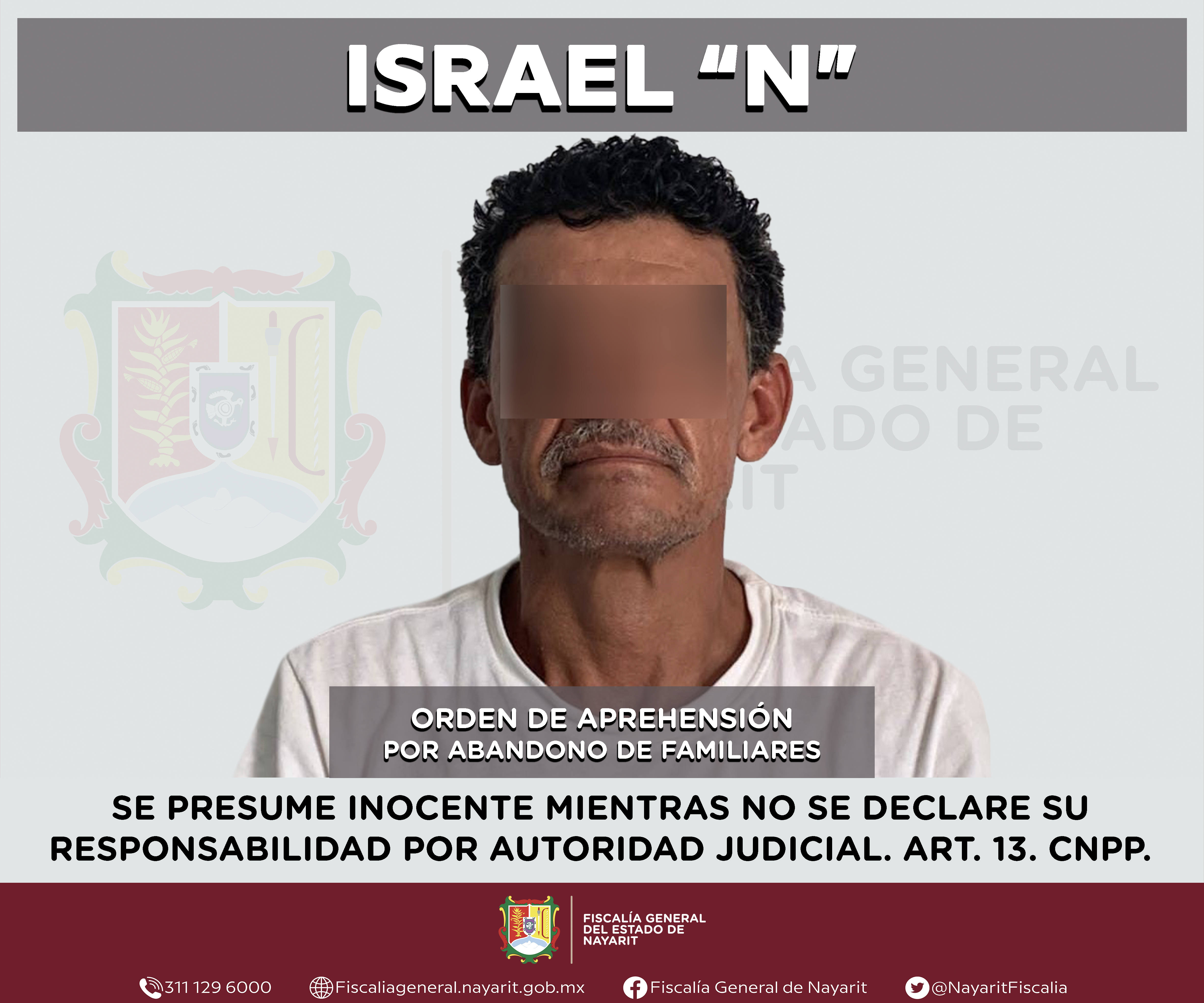 La Fiscalía General de Nayarit a través de la Agencia de Investigación Criminal ejecutó una orden de aprehensión en la ciudad de Tepic contra Israel “N”, por su probable participación en hechos que para la ley configuran el delito de abandono d...