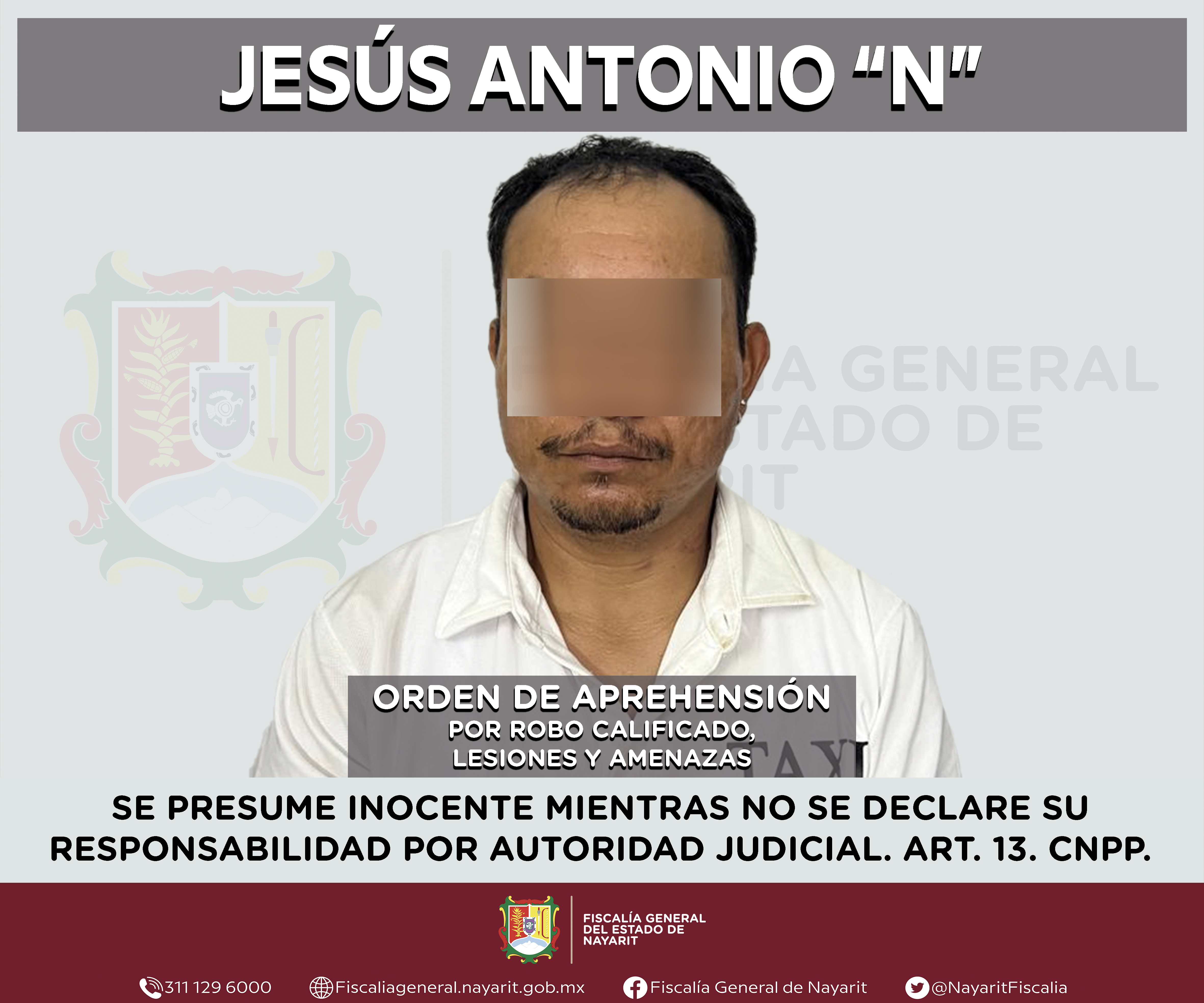 Elementos de la Agencia de Investigación Criminal de Nayarit ejecutaron una orden de aprehensión en la localidad Estación Yago, municipio de Santiago Ixcuintla contra Bruno Andrés “N”, por su presunta participación en hechos que según apreciaci...