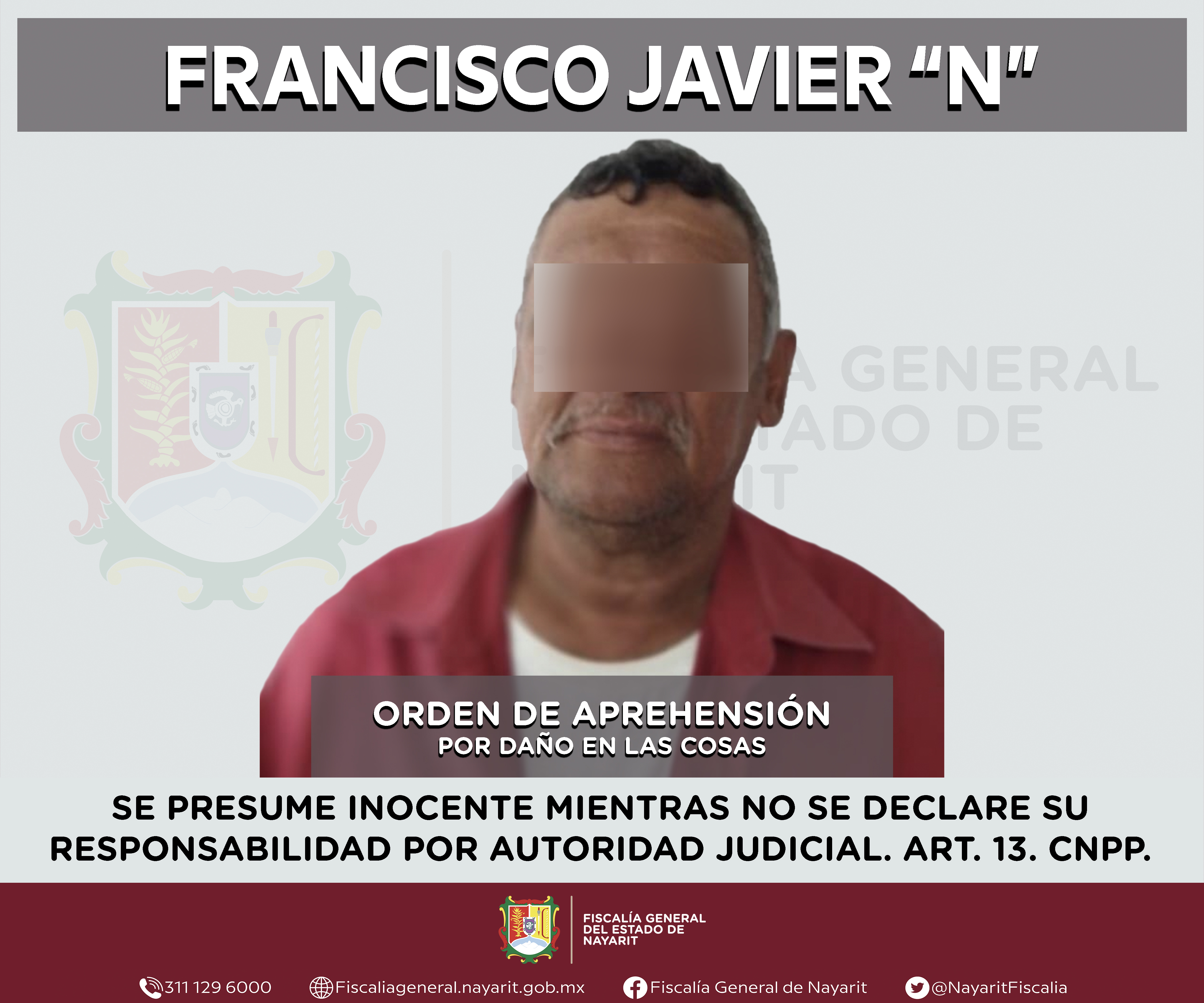 La Fiscalía General del estado de Nayarit a través de la Agencia de Investigación Criminal ejecutó una orden de aprehensión en la localidad Las Varas, municipio de Compostela contra Francisco Javier “N”, por su presunta participación en hechos ...