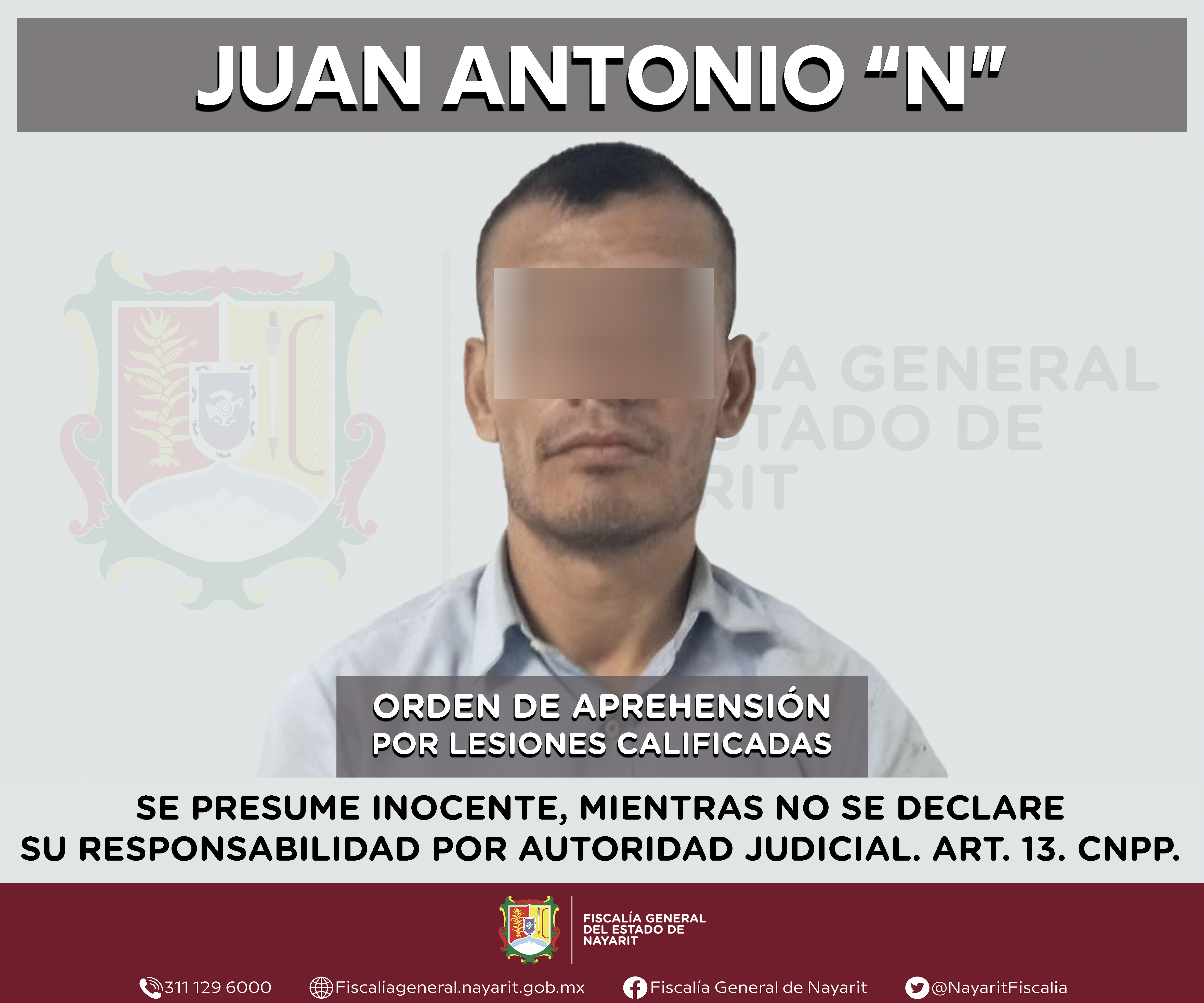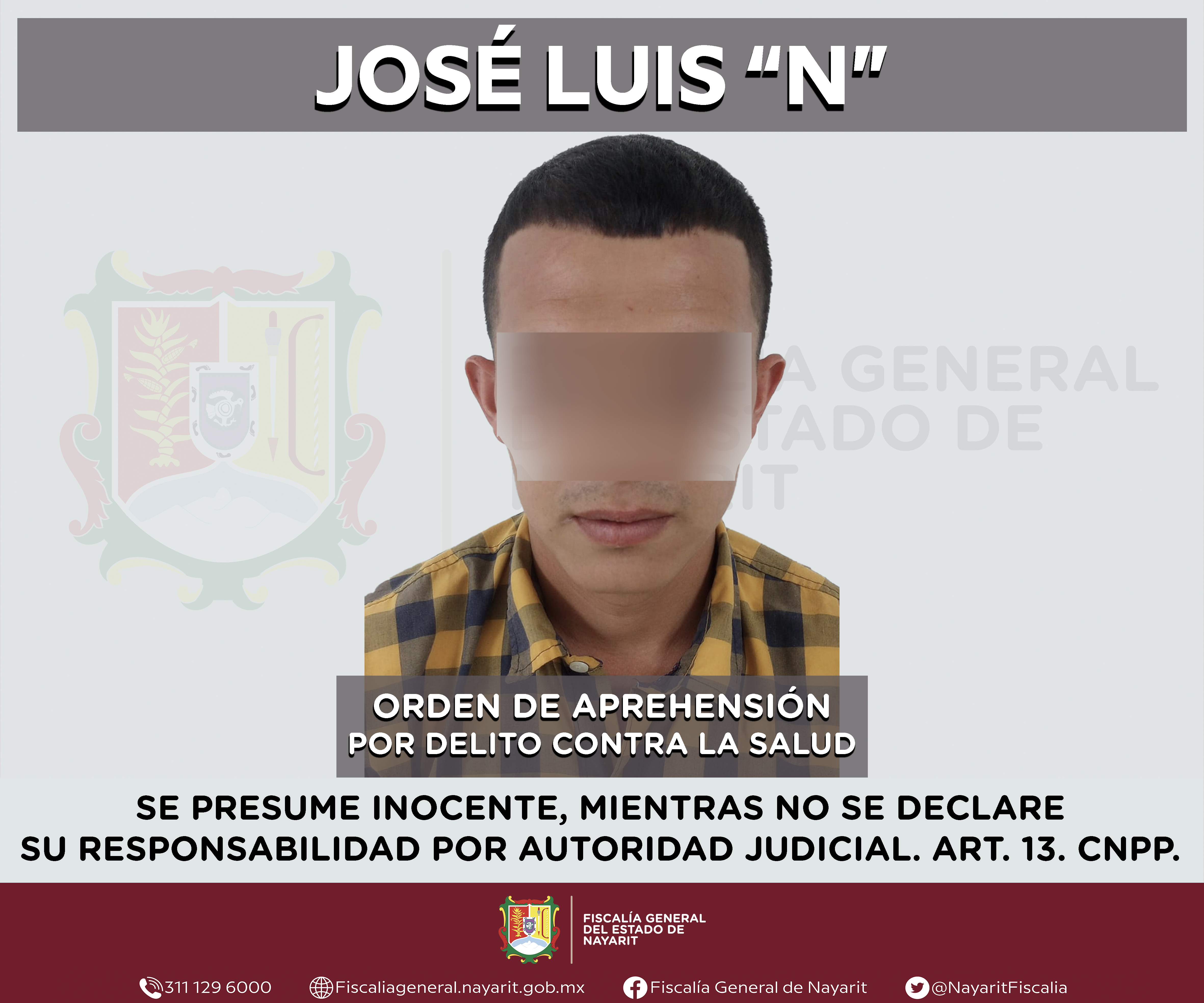 La Fiscalía General del estado de Nayarit a través de la Agencia de Investigación Criminal ejecutó una orden de aprehensión en el municipio de San Blas contra Luis Alberto “N”, por su presunta participación en hechos que según valoración de l...