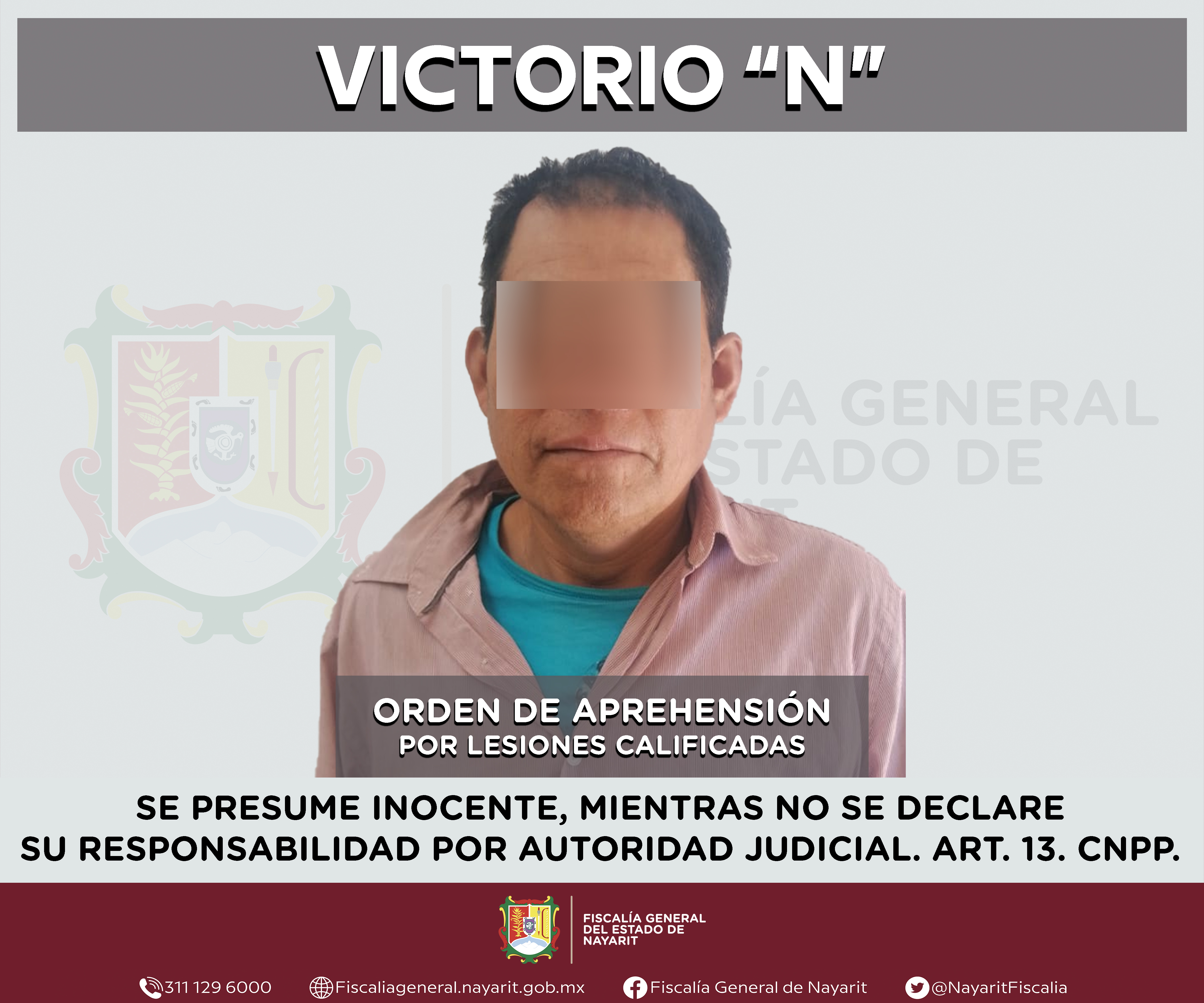La Fiscalía General del estado de Nayarit a través de la Agencia de Investigación Criminal ejecutó una orden de aprehensión en el municipio de Bahía de Banderas contra Juan Carlos “N”, por su presunta participación en hechos que según aprecia...