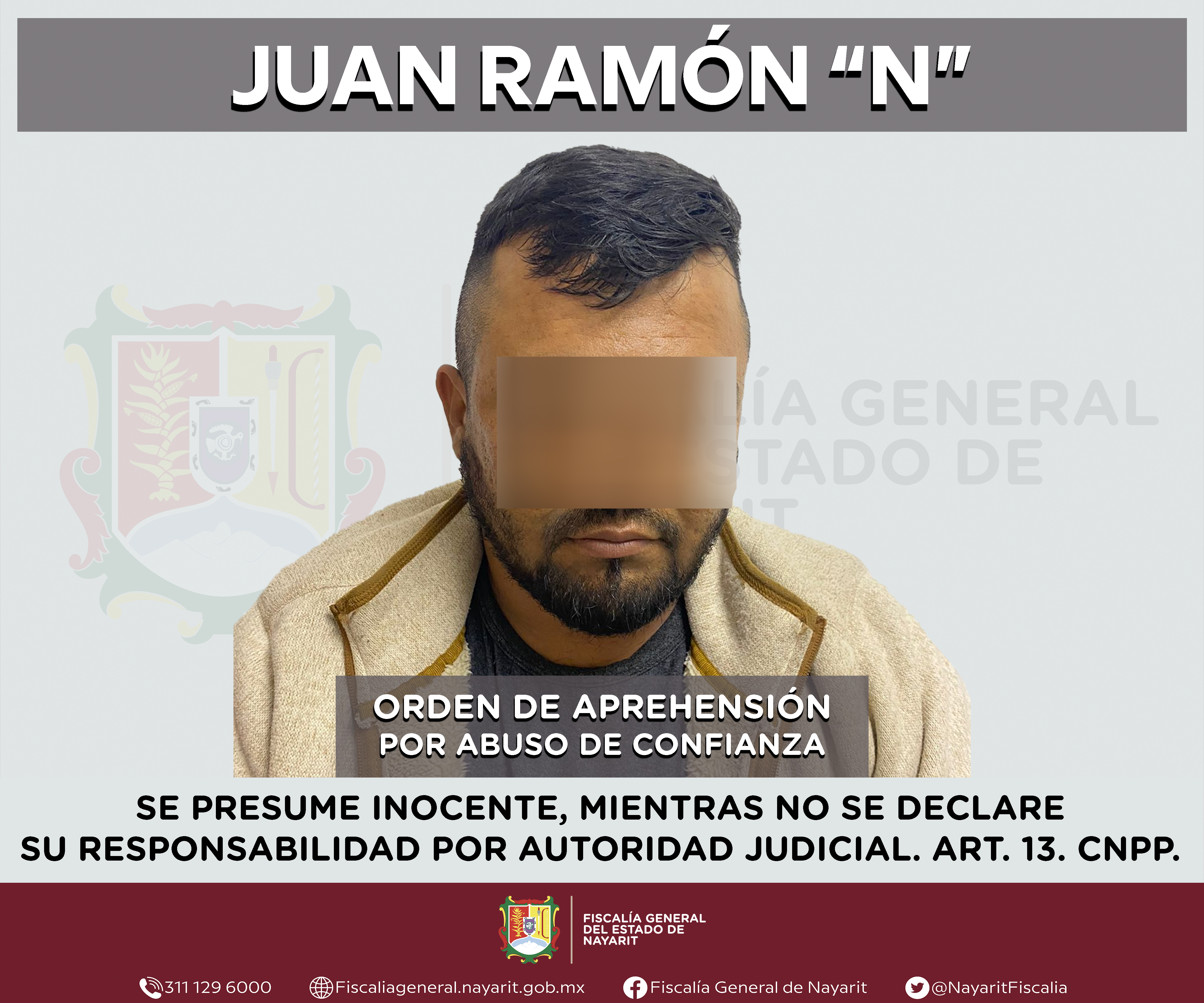 Boletín 0322/2024 | CAPTURADO EN SANTIAGO IXCUINTLA POR ABUSO DE CONFIANZA