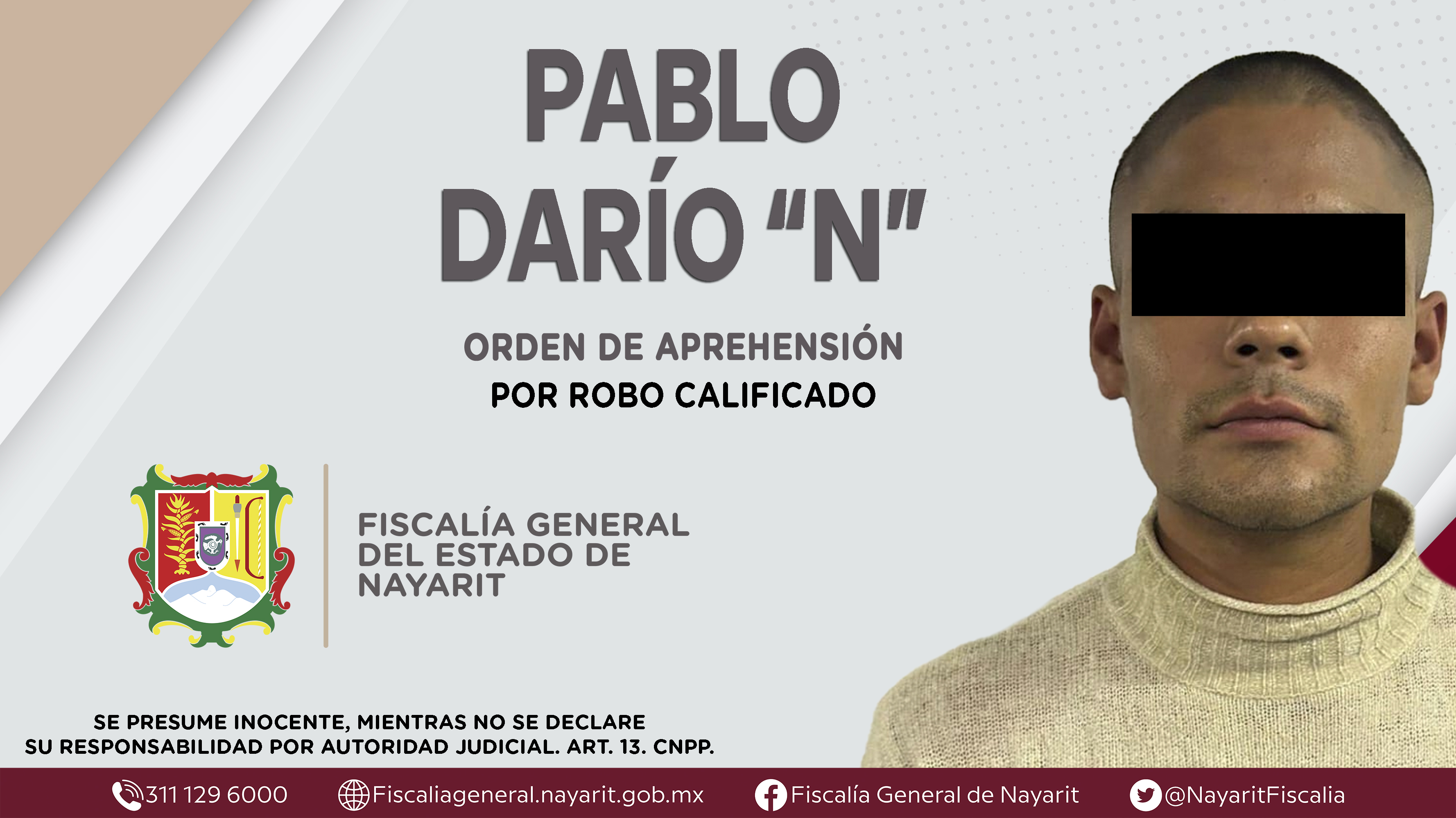 Boletín 0262/2024 | CAPTURADO EN TEPIC POR VIOLACIÓN EQUIPARADA AGRAVADA
