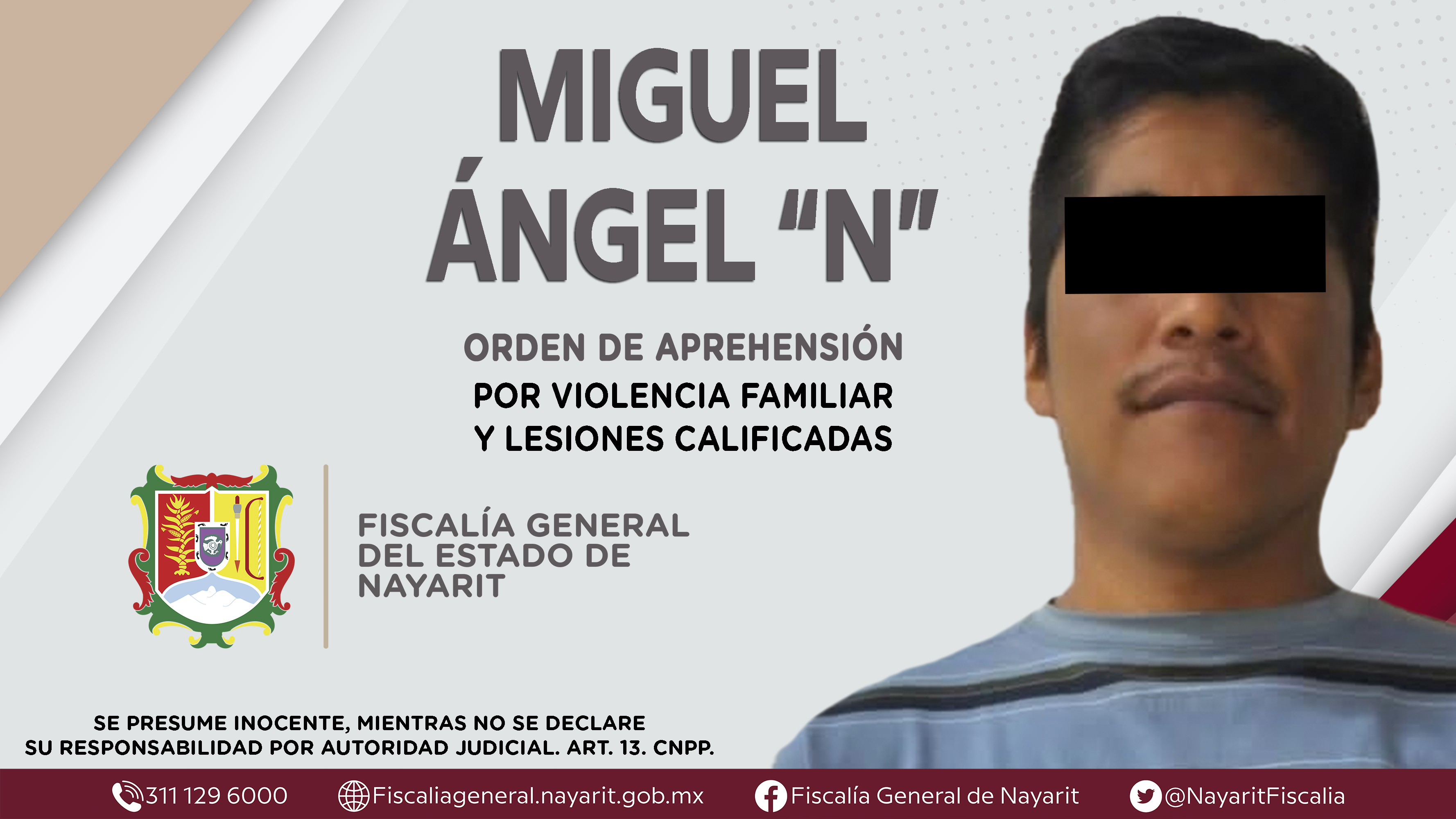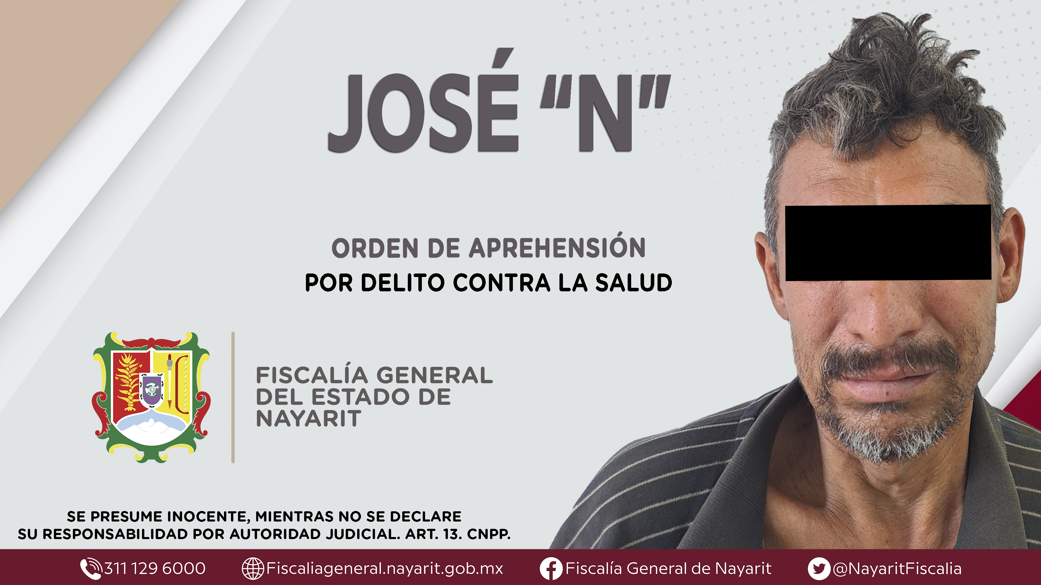 La Fiscalía General del Estado a través de la Agencia de Investigación Criminal cumplimentó una orden de aprehensión en la capital nayarita contra José “N”, por su presunta participación en hechos que bajo apreciación de la ley configuran el ...