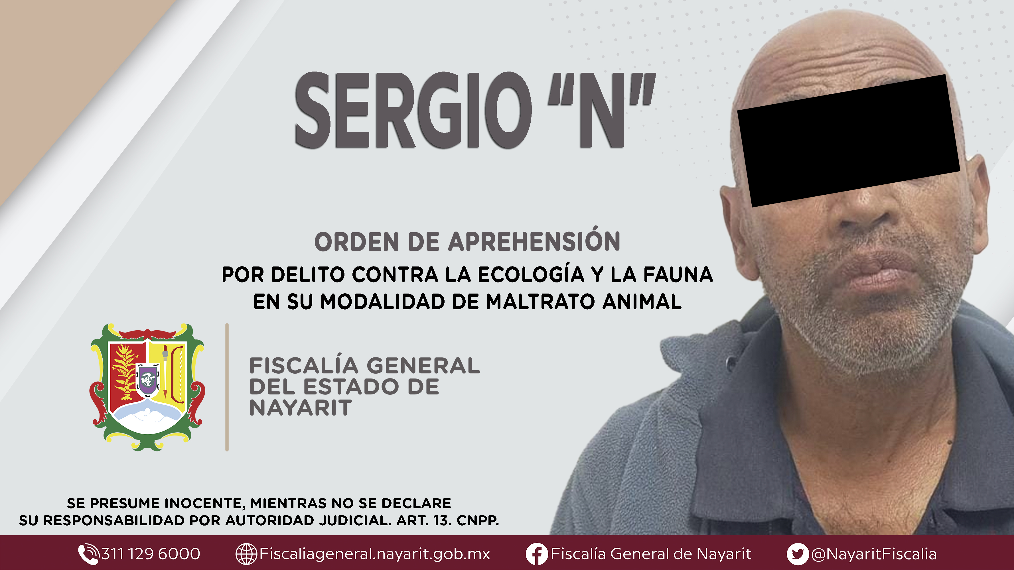 La Fiscalía General del Estado a través de la Agencia de Investigación Criminal cumplimentó una orden de aprehensión en el municipio de Huajicori contra Francisco “N”, por su presunta participación en hechos que bajo apreciación de la ley conf...