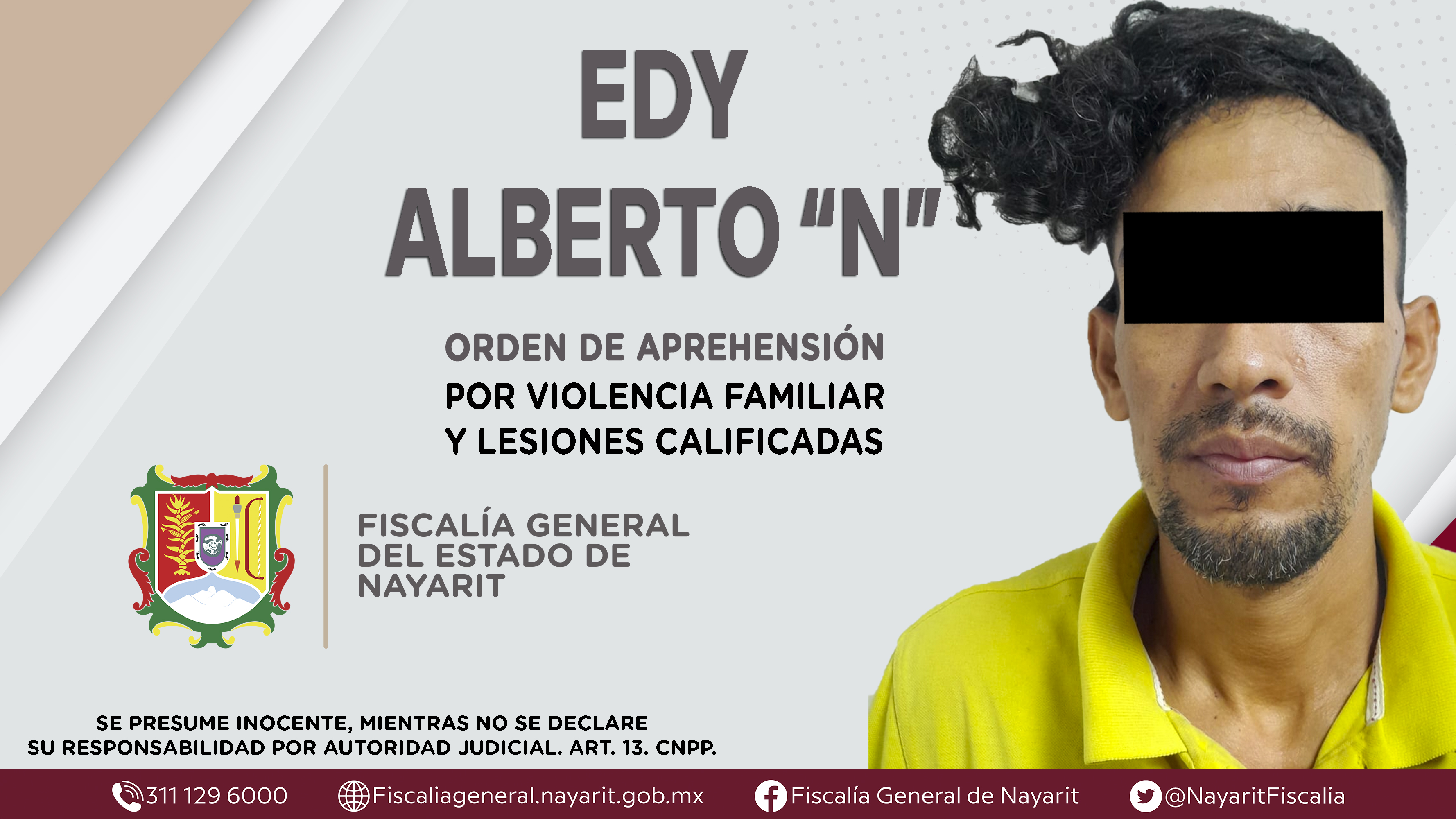 Elementos de la Agencia de Investigación Criminal de Nayarit ejecutaron una orden de aprehensión contra Edy Alberto “N”, por su presunta participación en hechos que según apreciación de la ley encuadran los delitos de violencia familiar y lesion...