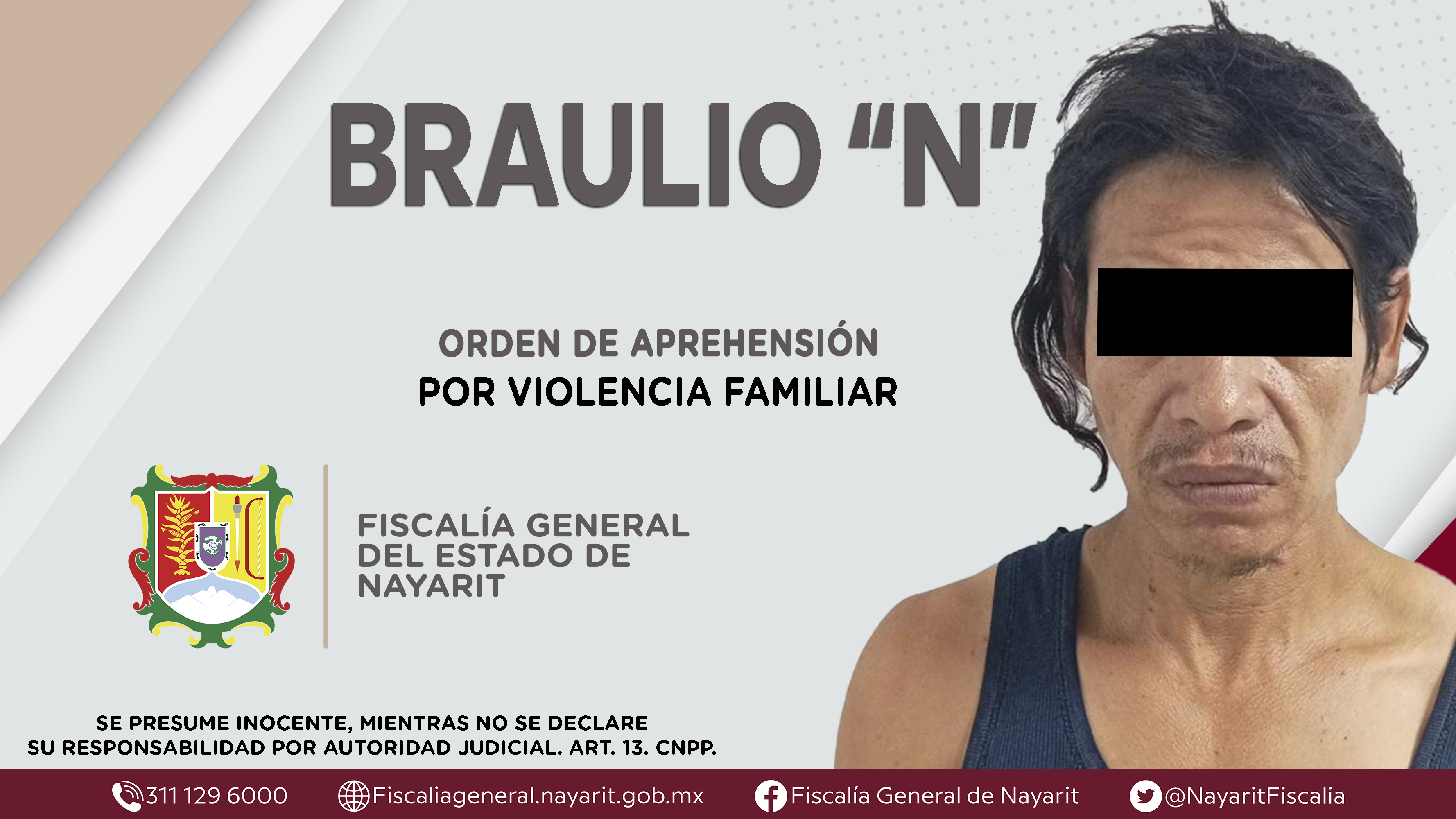 La Fiscalía General del Estado a través de la Agencia de Investigación Criminal dio cumplimiento a una orden de aprehensión en la ciudad de Tepic contra Braulio “N”, por su presunta participación en hechos que según apreciación de la ley encua...