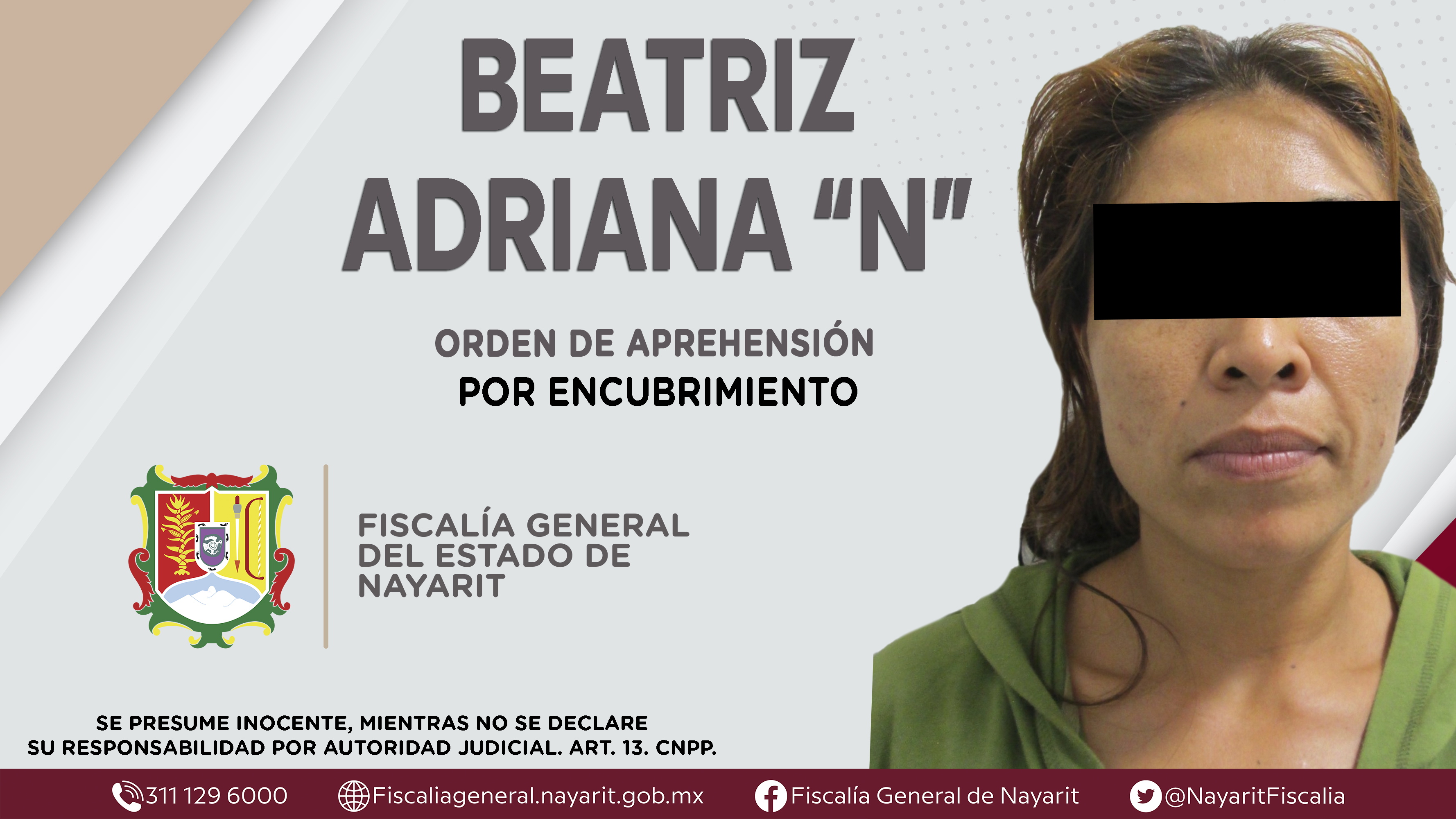 La Fiscalía General del Estado a través de la Agencia de Investigación Criminal dio cumplimiento a una orden de aprehensión en la capital nayarita contra Leticia “N”, por su presunta participación en hechos que según apreciación de la ley conf...