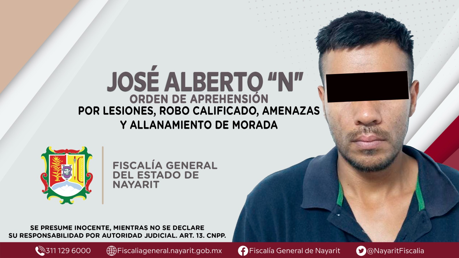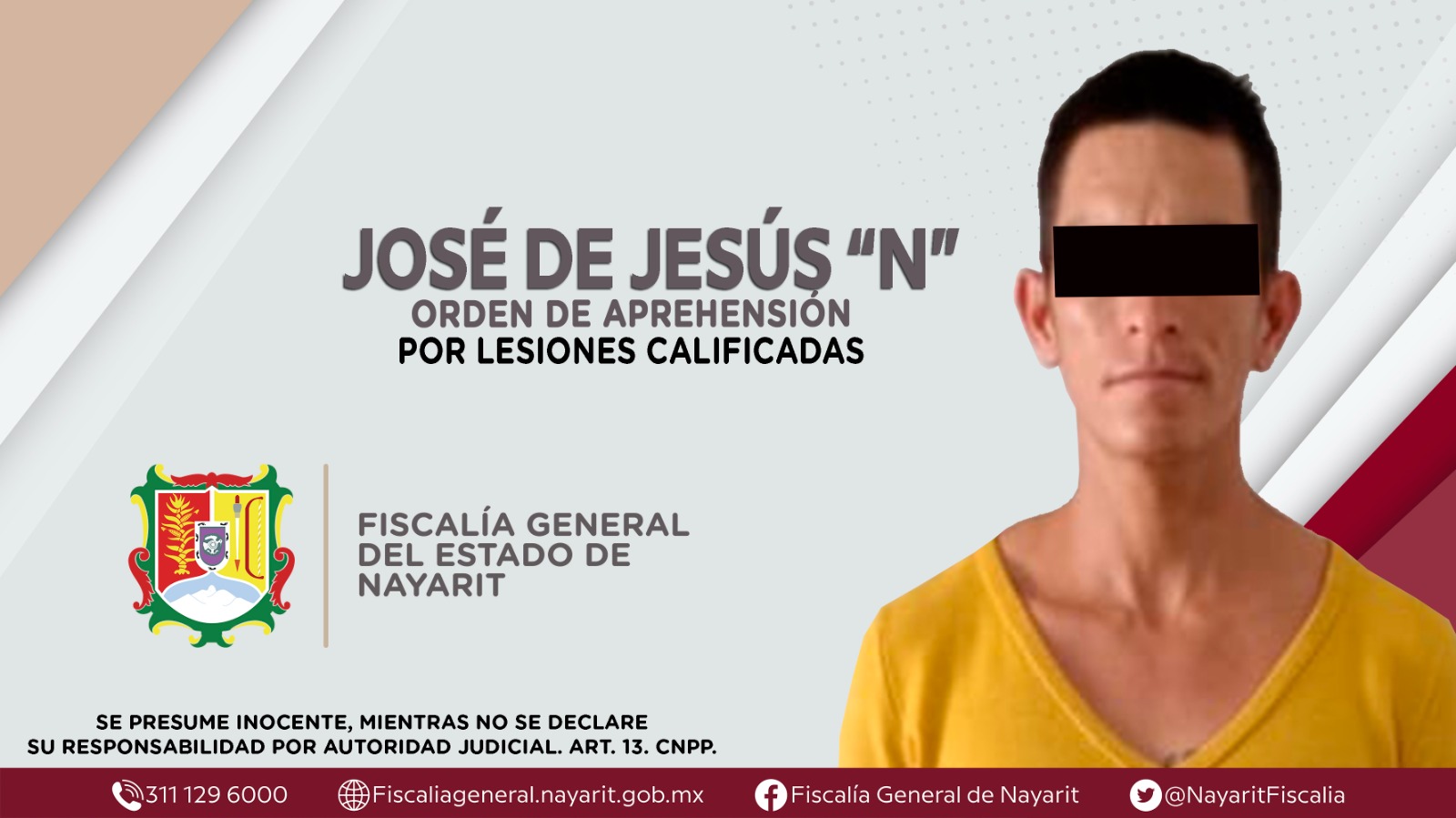 Elementos de la Agencia de Investigación Criminal de Nayarit ejecutaron una orden de aprehensión contra José de Jesus “N”, por su presunta participación en hechos que según apreciación de la ley encuadran el delito de lesiones calificadas, come...