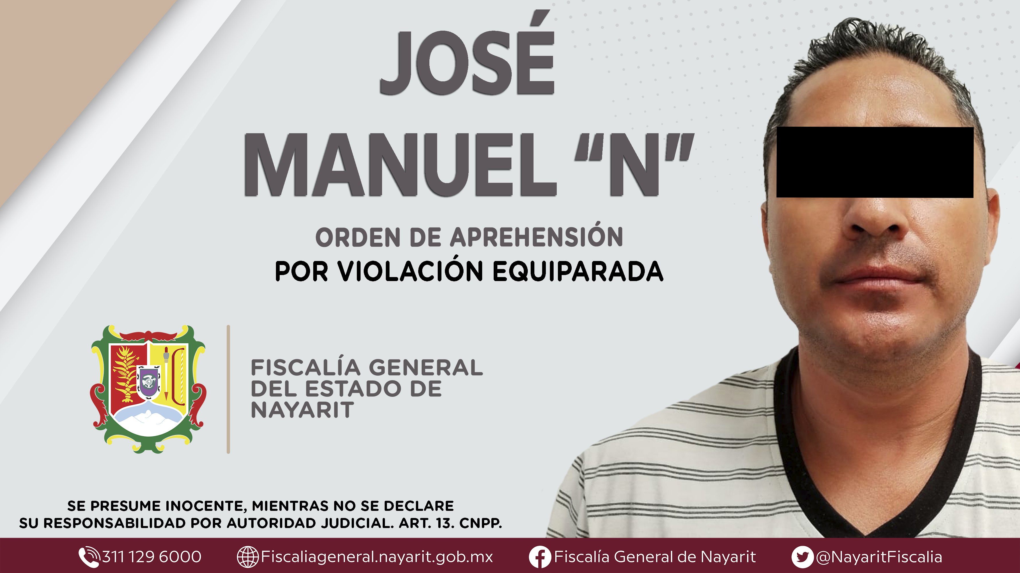 La Fiscalía General del Estado a través de la Agencia de Investigación Criminal dio cumplimiento a una orden de aprehensión en el municipio de Bahía de Banderas contra Rogelio “N”, por su presunta participación en hechos que según valoración ...