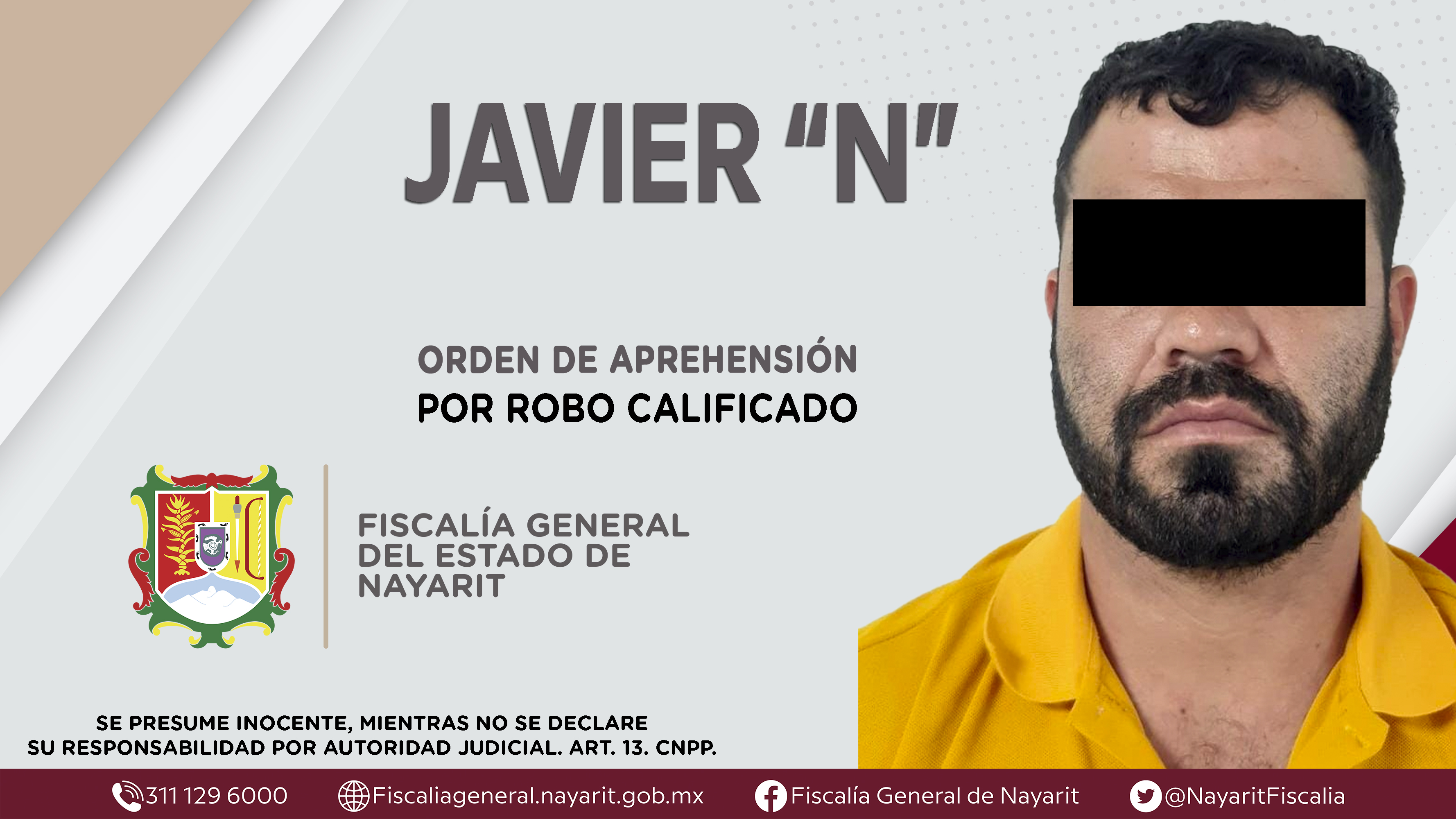 La Fiscalía General del Estado a través de la Agencia de Investigación Criminal dio cumplimiento a una orden de aprehensión en el poblado Estación Yago, municipio de Santiago Ixcuintla contra Humberto “N”, por su presunta participación en hecho...
