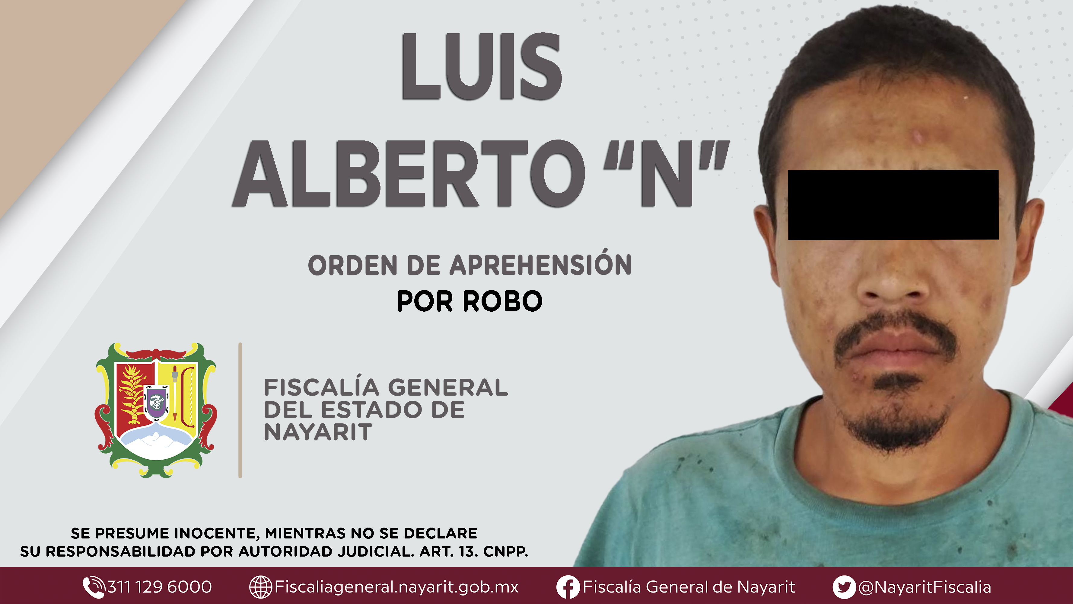 Boletín 0759/2023 | CAPTURADO EN SANTIAGO IXCUINTLA POR ABANDONO DE FAMILIARES