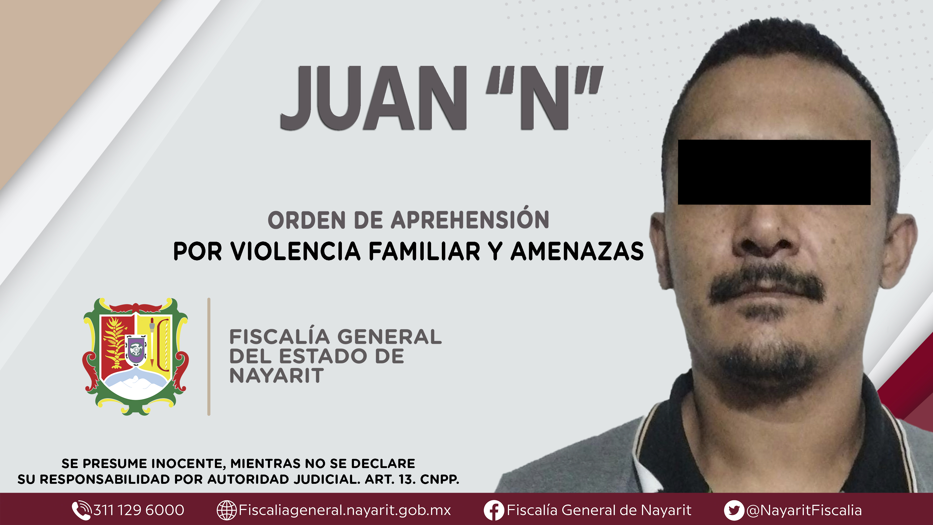 La Fiscalía General del Estado a través de la Agencia de Investigación Criminal dio cumplimiento a una orden de aprehensión en la ciudad de Tepic contra Juan Carlos “N”, por su presunta participación en hechos que según apreciación de la ley e...